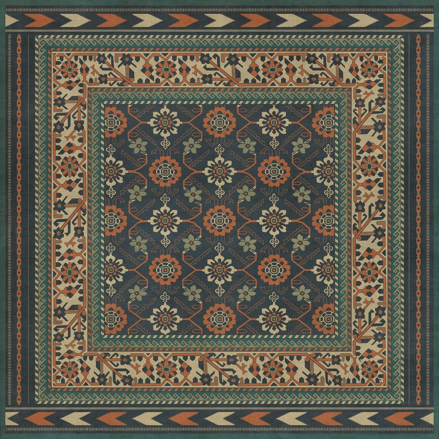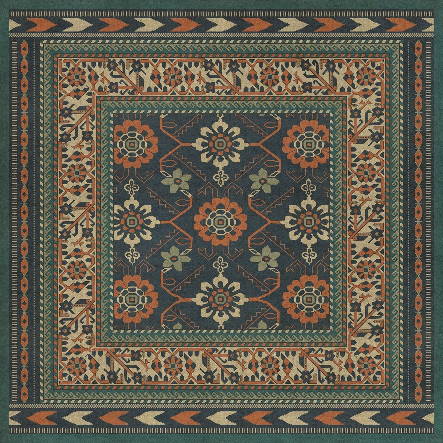 Vinyl Floorcloth Mat (Williamsburg - Star Ushak - Earths Charms)