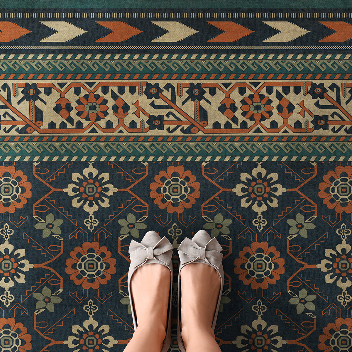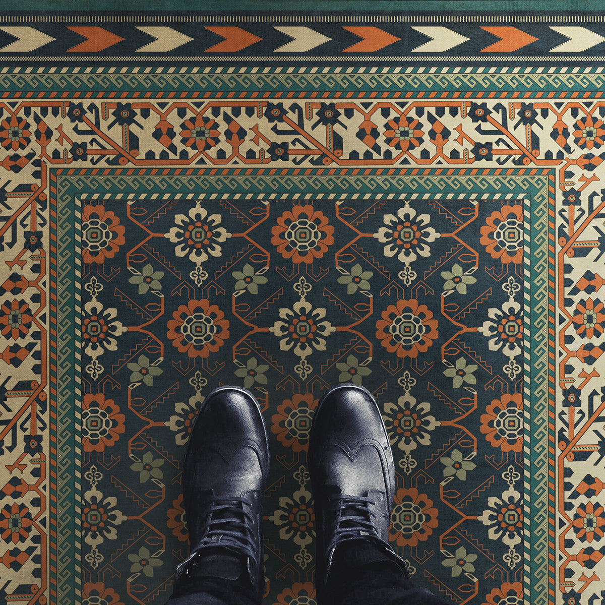 Vinyl Floorcloth Mat (Williamsburg - Star Ushak - Ray Of The Night)