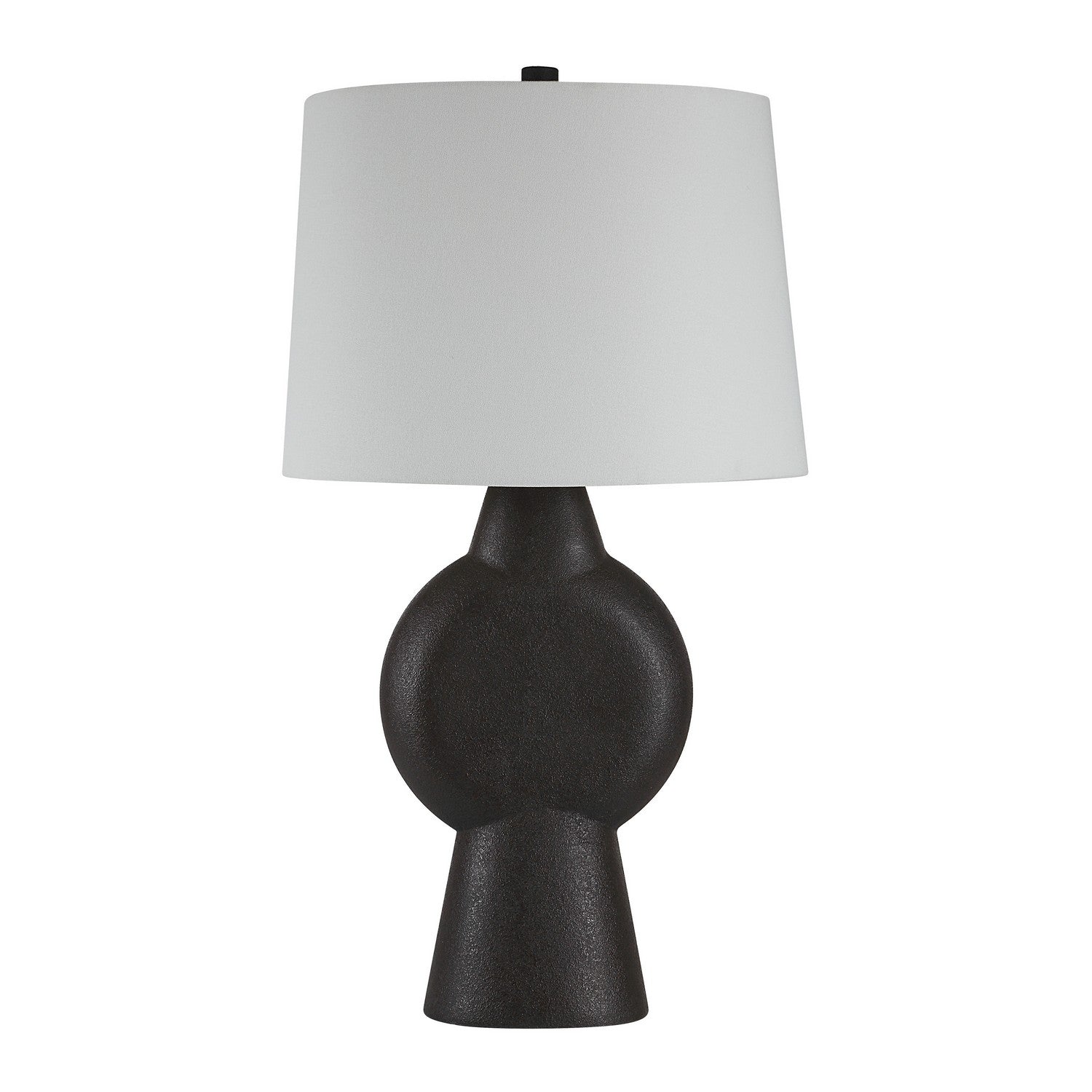 Undeniably chic style is served with this stylish modern table lamp in the mix. Crafted with a sculpture-like silhouette, a stone black hand-painted finish and a clean-lined white shade, it's poised to hold an artistic presence in minimalist and transitional spaces, alike. Add it to your project as a testament to your design savvy.