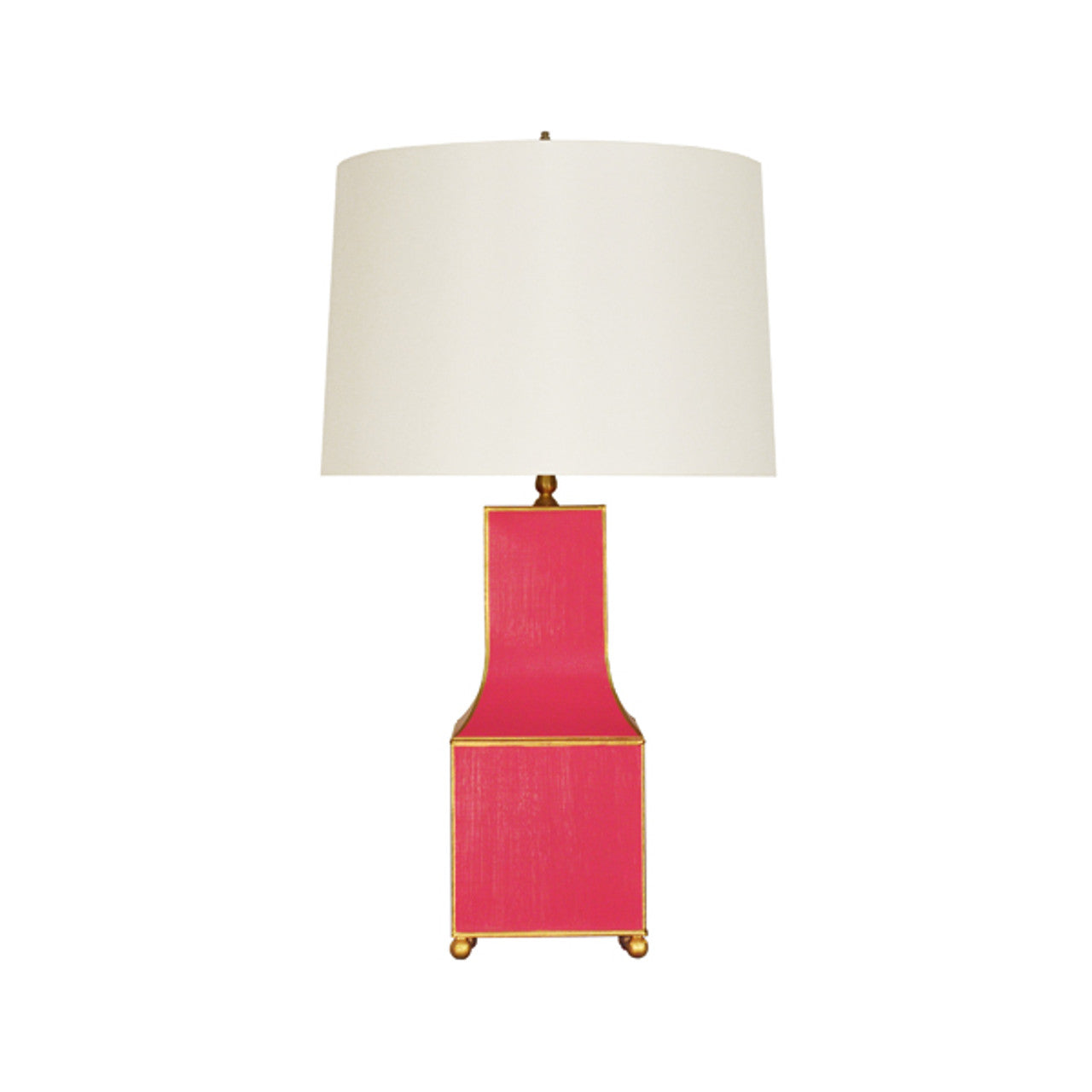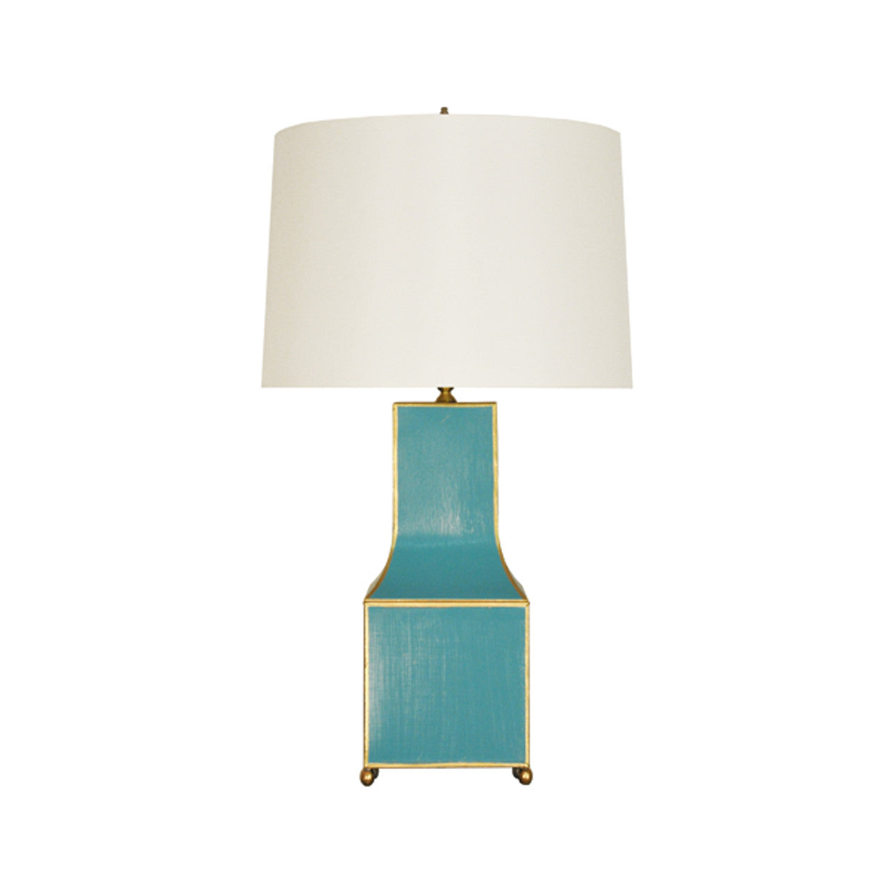 This incomparable table lamp is a modern take on a timeless classic. The inspired Pagoda-style base with hand-painted tole in black leopard is accented with gleaming gold edges and appears to float atop a four leg base. Topped with a crisp cream silk shade, Renata will certainly brighten any room. *Customize in any color from the Benjamin Moore paint deck.