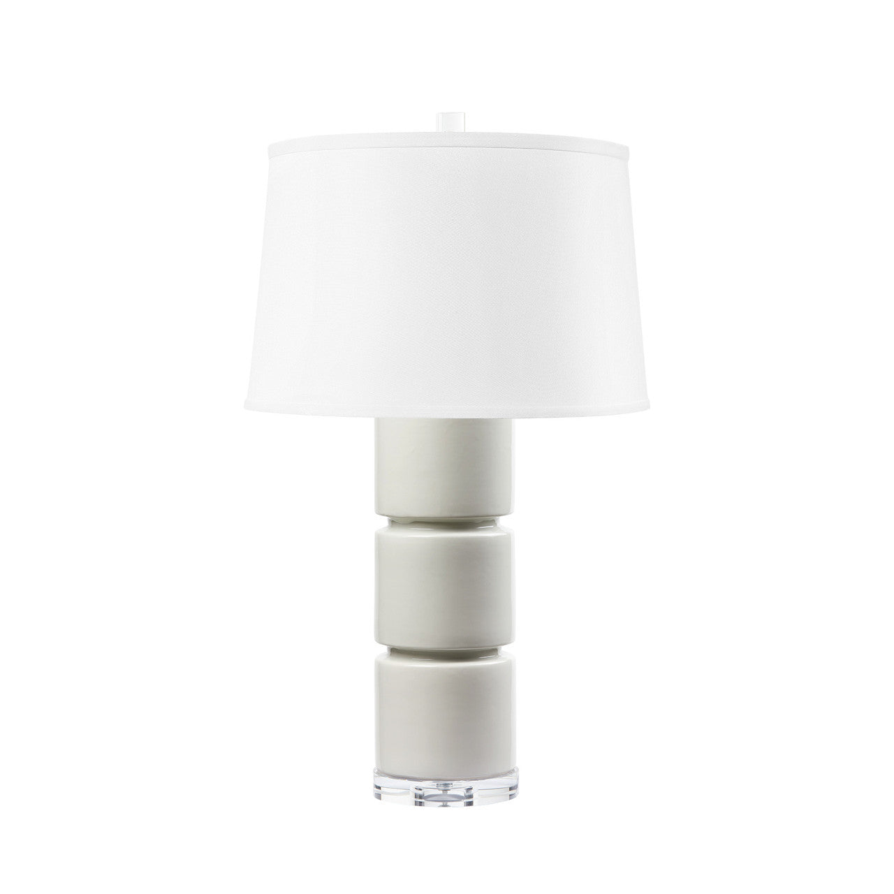 The Charles Lamp brings a cool, modern twist to a classic column design. Its ceramic body is divided into three distinct sections, creating a dynamic and contemporary silhouette. Finished with an opaque glaze, the lamp exudes a sleek and polished aesthetic. It rests on a clear acrylic base and is topped with a matching acrylic finial, adding a touch of modern sophistication. The Charles Lamp brings a cool, modern twist to a classic column design. Its ceramic body is divided into three distinct sections, creating a dynamic and contemporary silhouette. Finished with an opaque matte glaze, the lamp exudes a sleek and polished aesthetic. It rests on a clear acrylic base and is topped with a matching acrylic finial, adding a touch of modern sophistication.