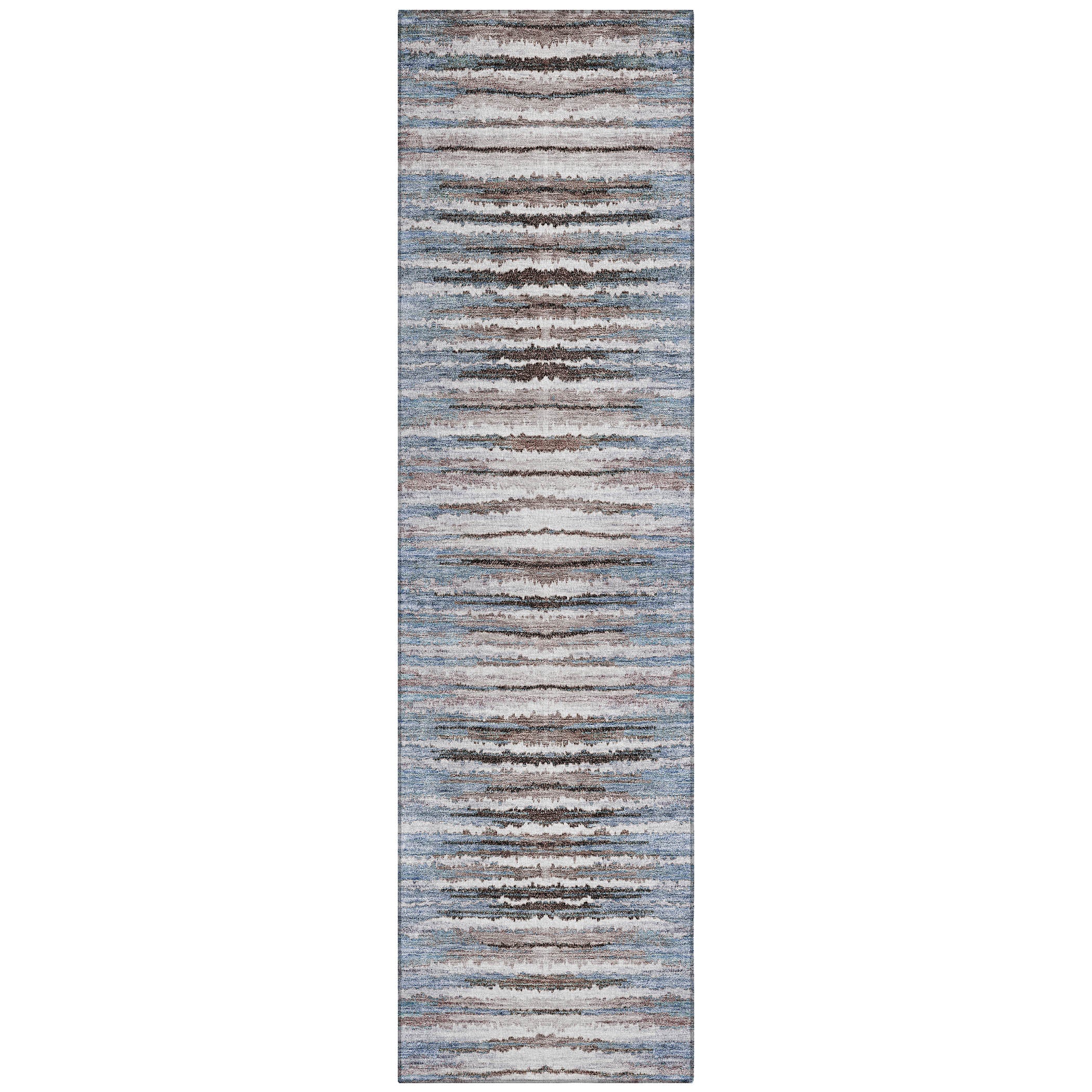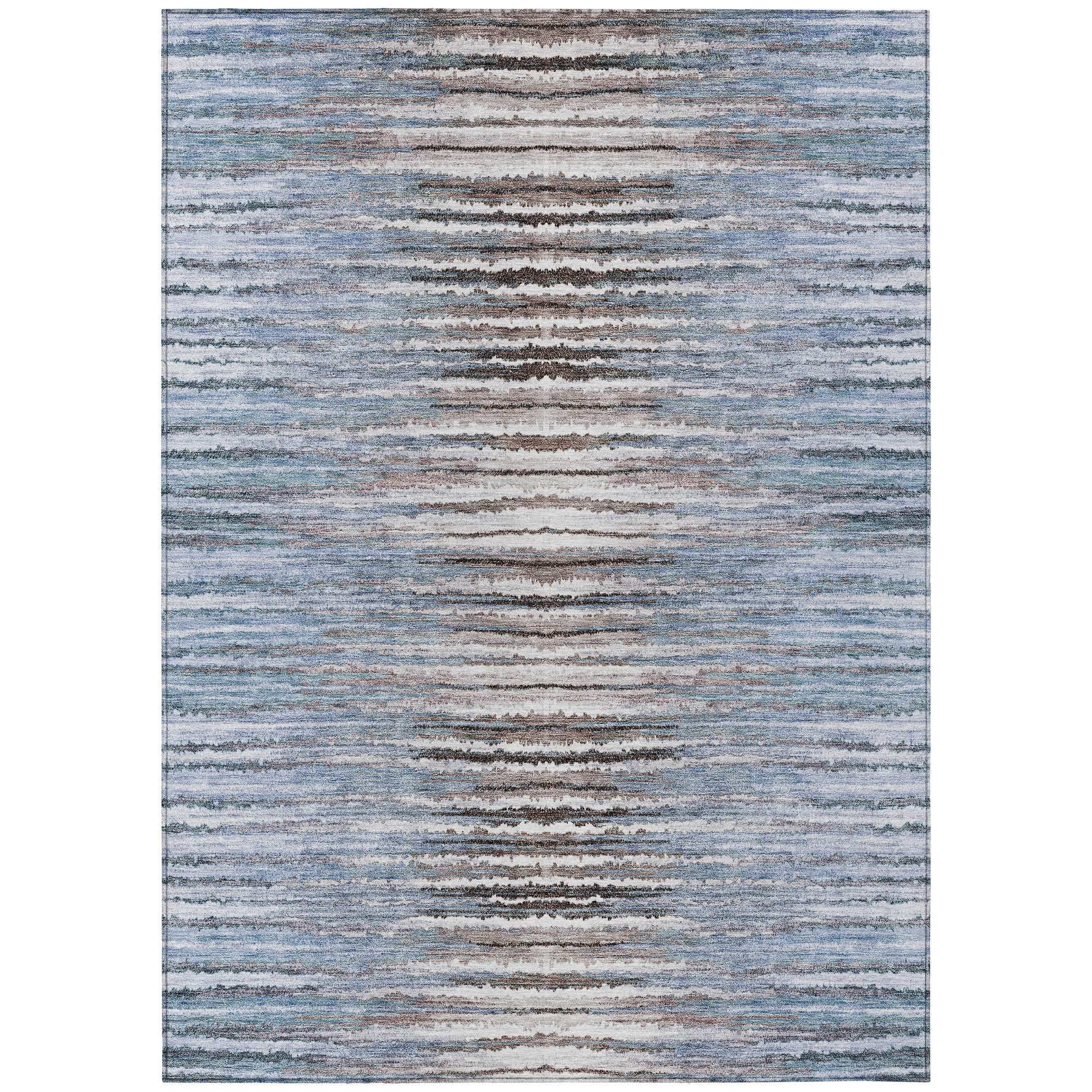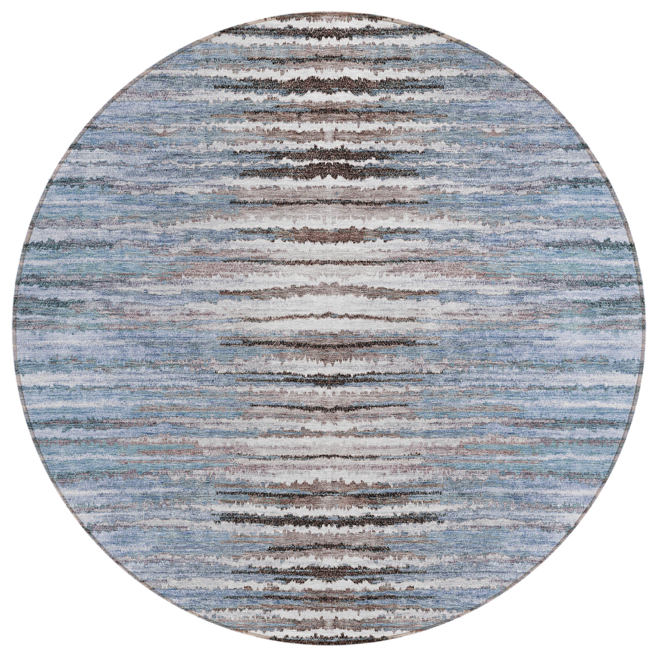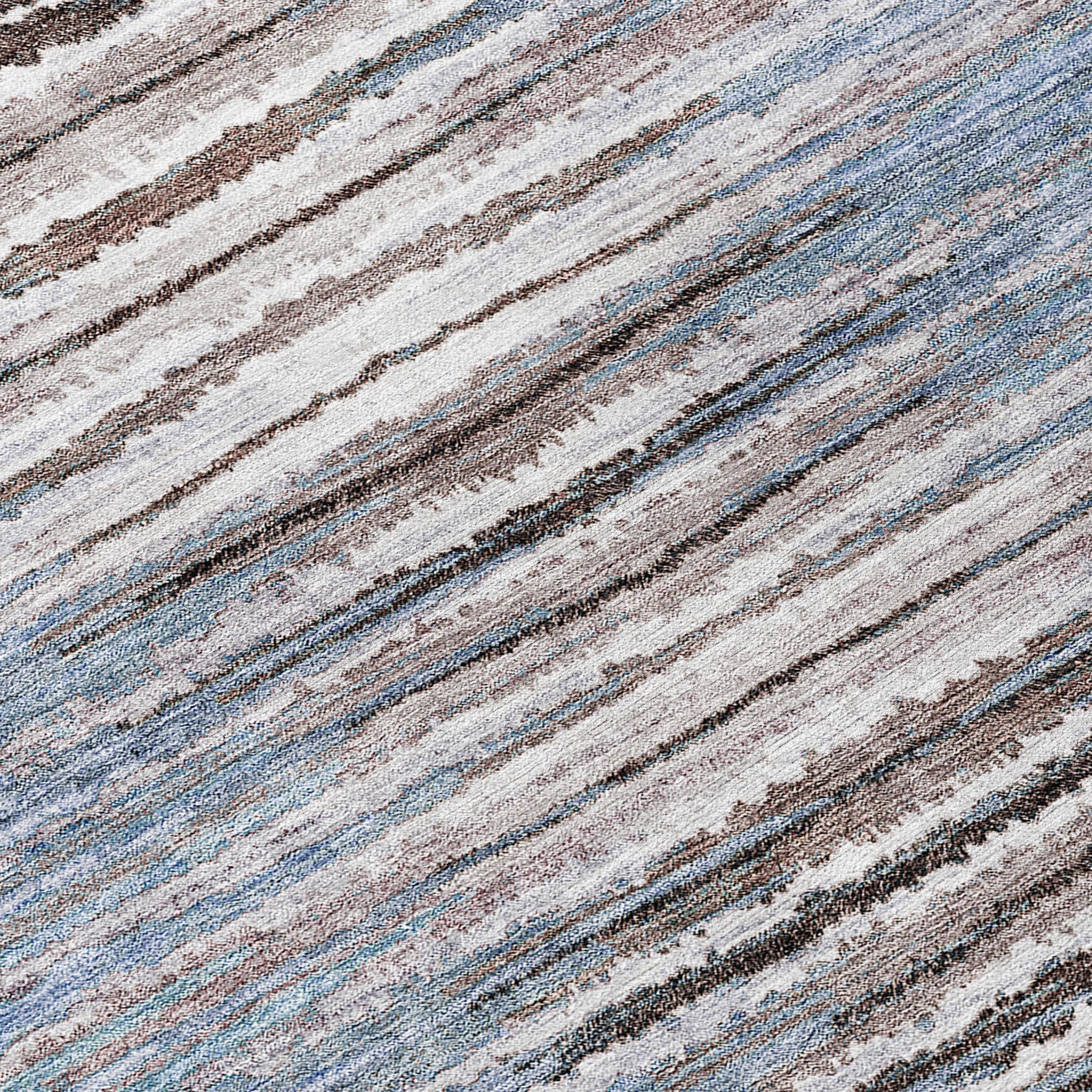 Chantille ACN604 Sky area rug, a stunning piece that brings traditional design to life in your home. The distinctive broken horizontal stripes form a captivating jagged pattern, adding a touch of elegance to any room. This UV-stabilized rug is versatile enough for both indoor and outdoor use, ensuring it stays vibrant under the sun's rays.