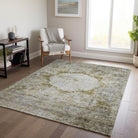 Chantille ACN675 Taupe area rug, a stunning piece that captures the essence of traditional oriental artistry. The rug features a beautiful center medallion surrounded by intricate motifs, adding a touch of elegance to any space.