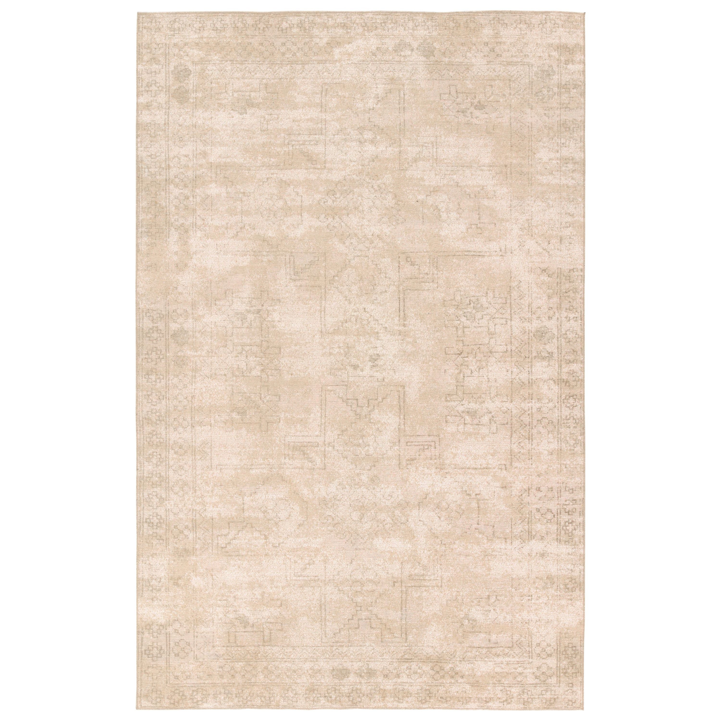 The innovative Edage rug collection showcases distressed, vintage designs, digitally printed onto a jute and polyester base. This process provides effortless texture and natural appeal through the jute weave, while maintaining an elevated feel through updated traditional patterns. The Tegona design showcases a dual center medallion pattern with geometric detailing in hues of tan and cream. This rug best suits medium to low traffic spaces of the home such as formal dining areas, bedrooms, formal dining areas, and sitting rooms.