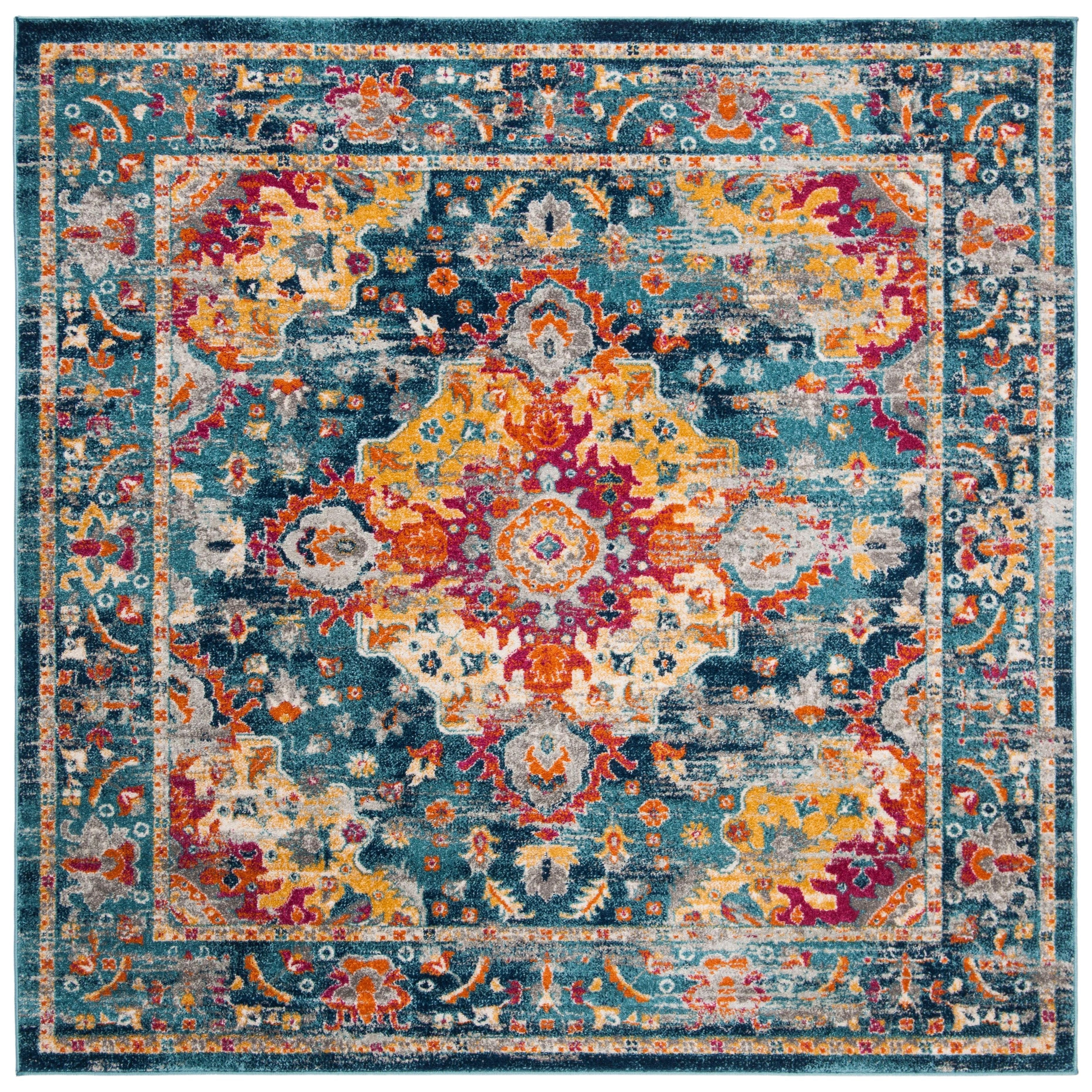 Madison MAD154L Teal Fuchsia Rug, a charming addition to any home decor. This rug from the Madison Collection seamlessly blends classic designs with a modern twist, creating a vibrant and playful look. Featuring traditional motifs in vibrant hues and an antique patina finish, this rug adds a touch of timeless elegance to any room.