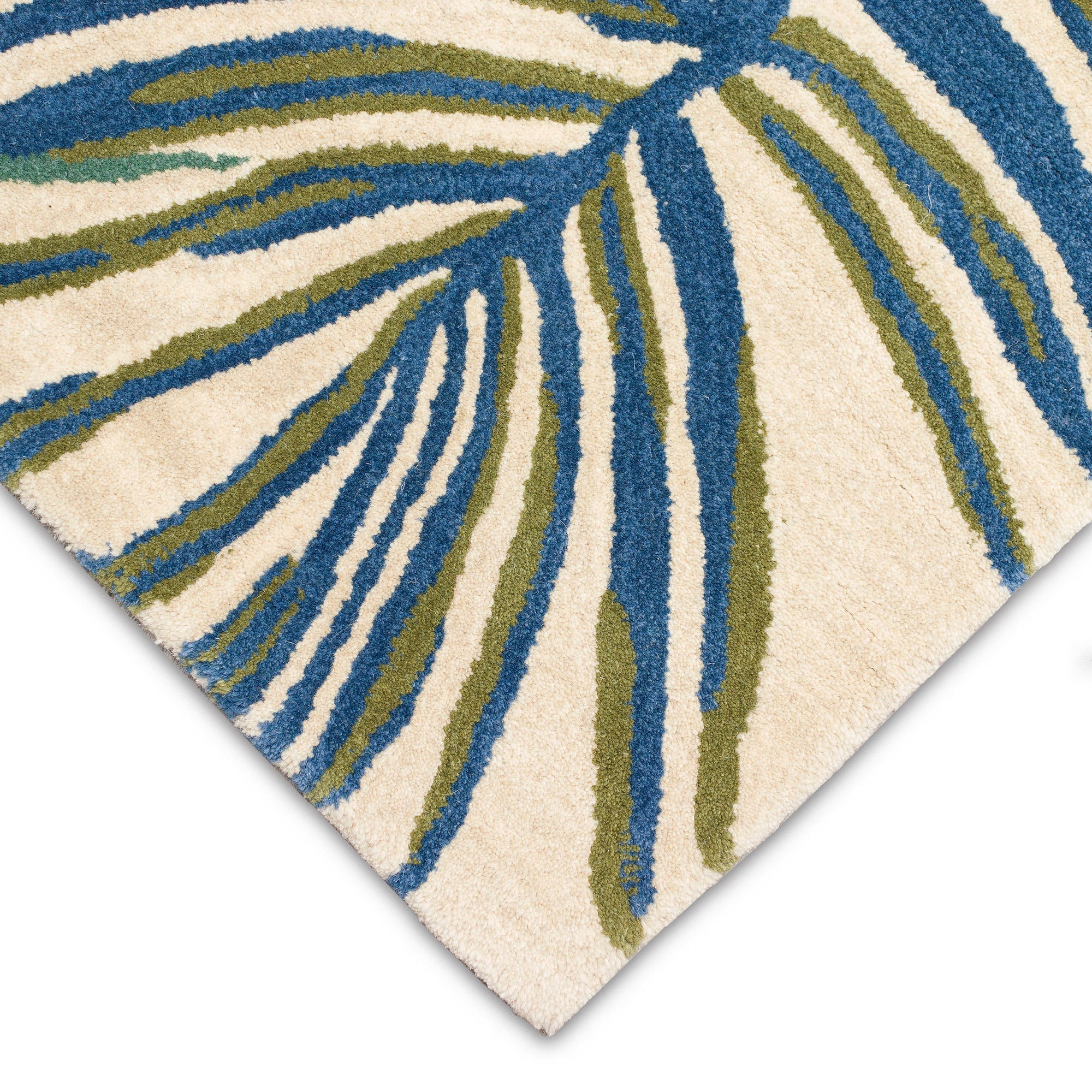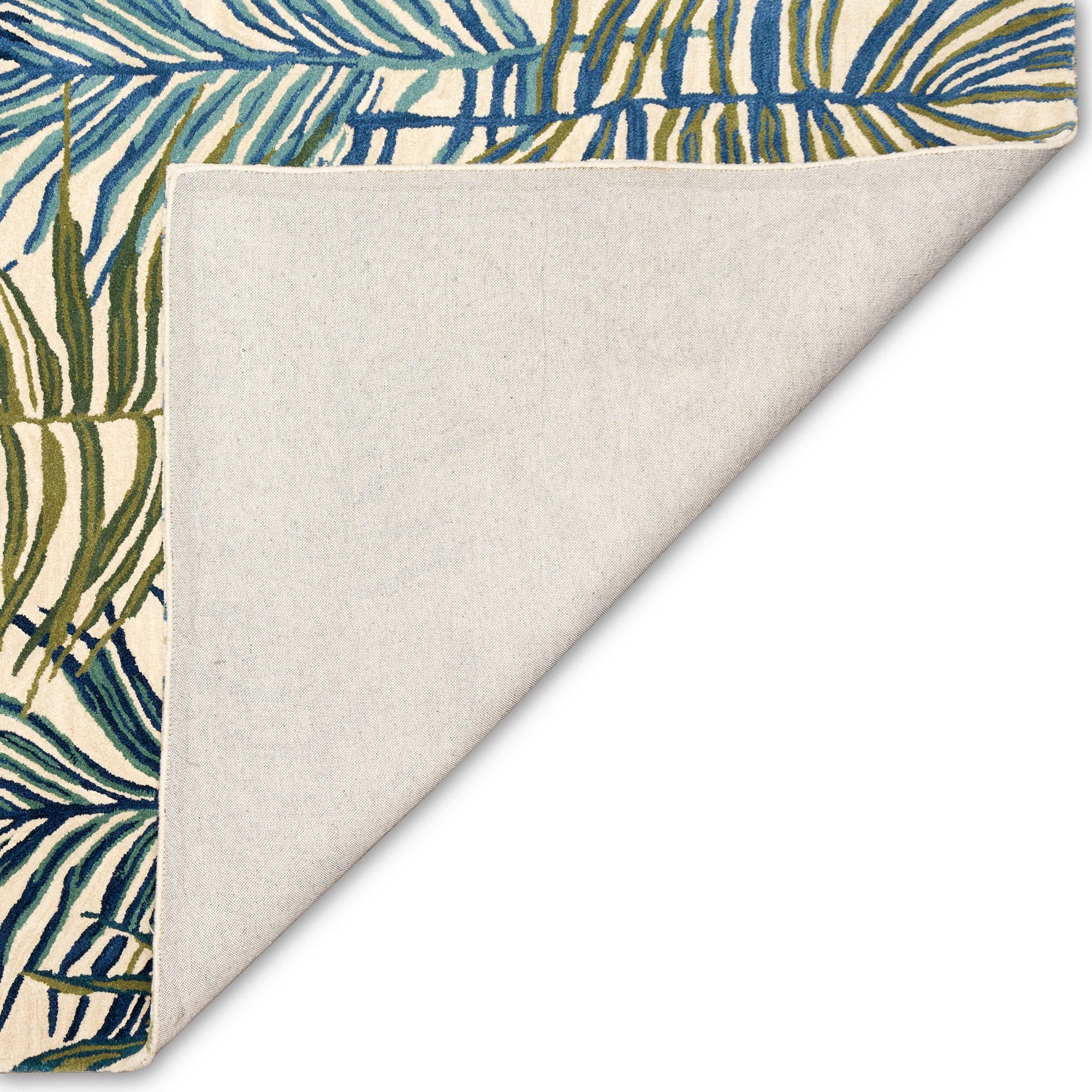 Tivoli La Palma Ivory area rug, a stunning addition to your home decor. Featuring vibrant palm designs in shades of blue, green, gold, and aqua on a cream background, this rug is sure to make a statement in any room. Crafted with care in India from 100% wool, the Tivoli Collection offers intricate tonal designs with a high-quality finish.