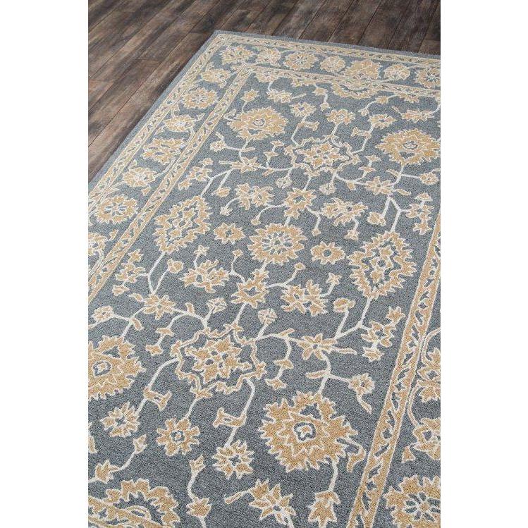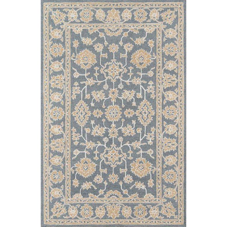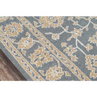 Valencia Val 2 Grey area rug, a vintage-inspired piece that brings the essence of a European retreat to your home. Delicate lace detailing in softly faded neutrals adds a touch of elegance to any room. The ornate medallions and floral motifs create a captivating focal point, complemented by a soothing color palette of dove grey, sky blue, and beige.