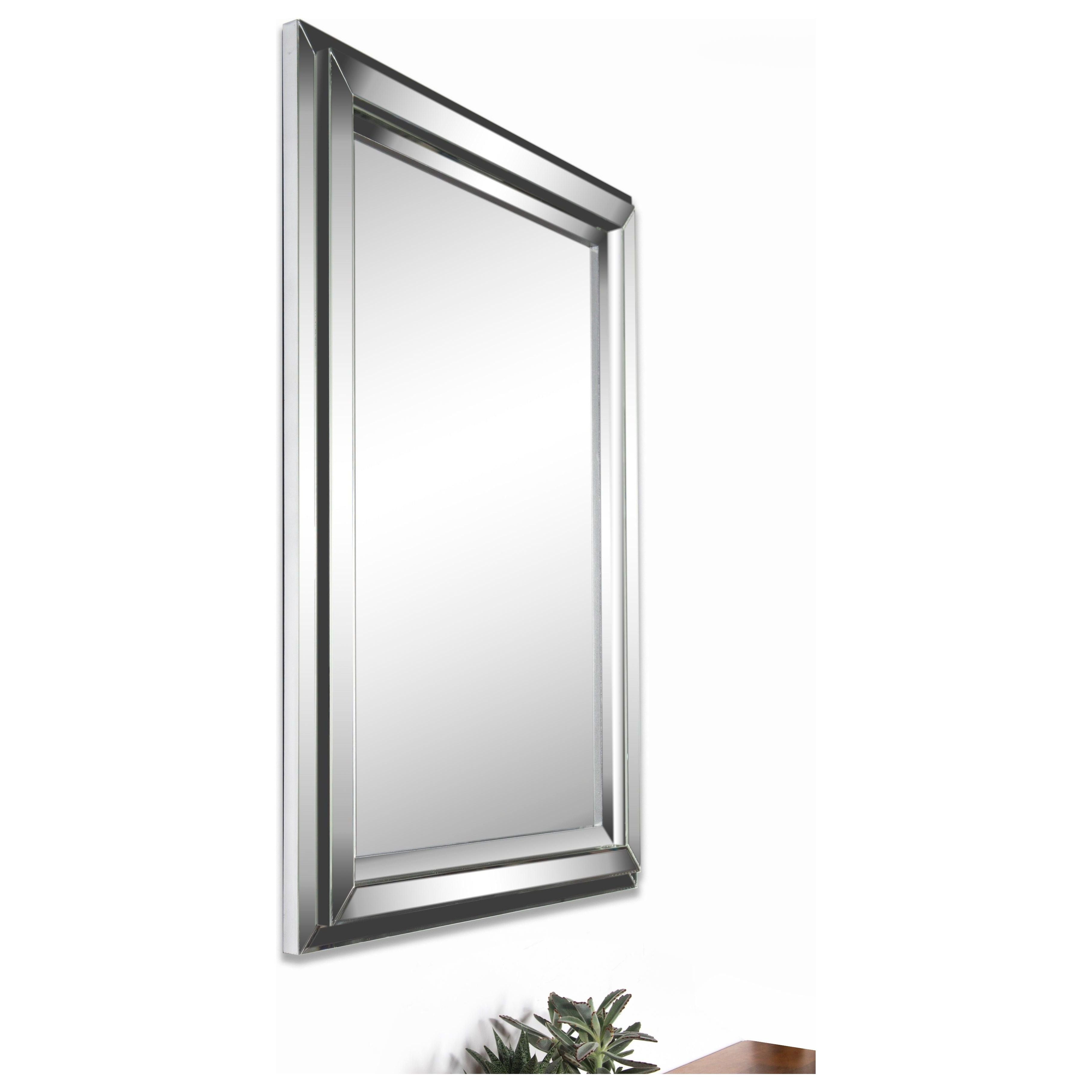 Bryse Mirror, a modern and stylish addition to any space. The unique design of this mirror includes a dimensional beveled-mirror "step" frame that adds depth and visual interest. The central mirror is also beveled, enhancing its overall elegance.