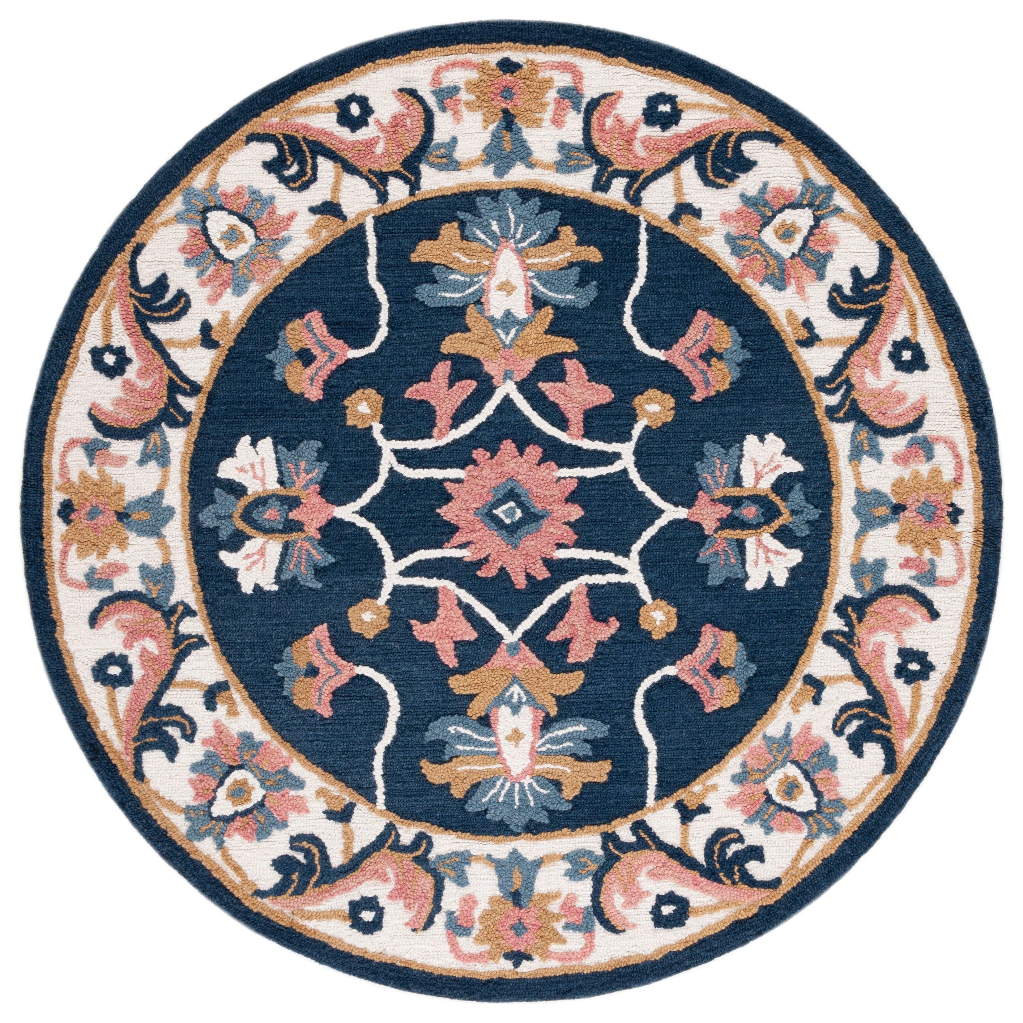 Blossom BLM176M rug from the Blossom Collection, a vibrant and modern take on classic hooked rugs. Crafted with large hand woven loops, these rugs offer a unique texture that revitalizes country casual interiors. Constructed from 100% premium wool, Blossom area rugs seamlessly blend traditional English chintz and block print motifs with contemporary home decor styles. With an approximate thickness of 0.5 inches, this rug adds both comfort and style to any space.