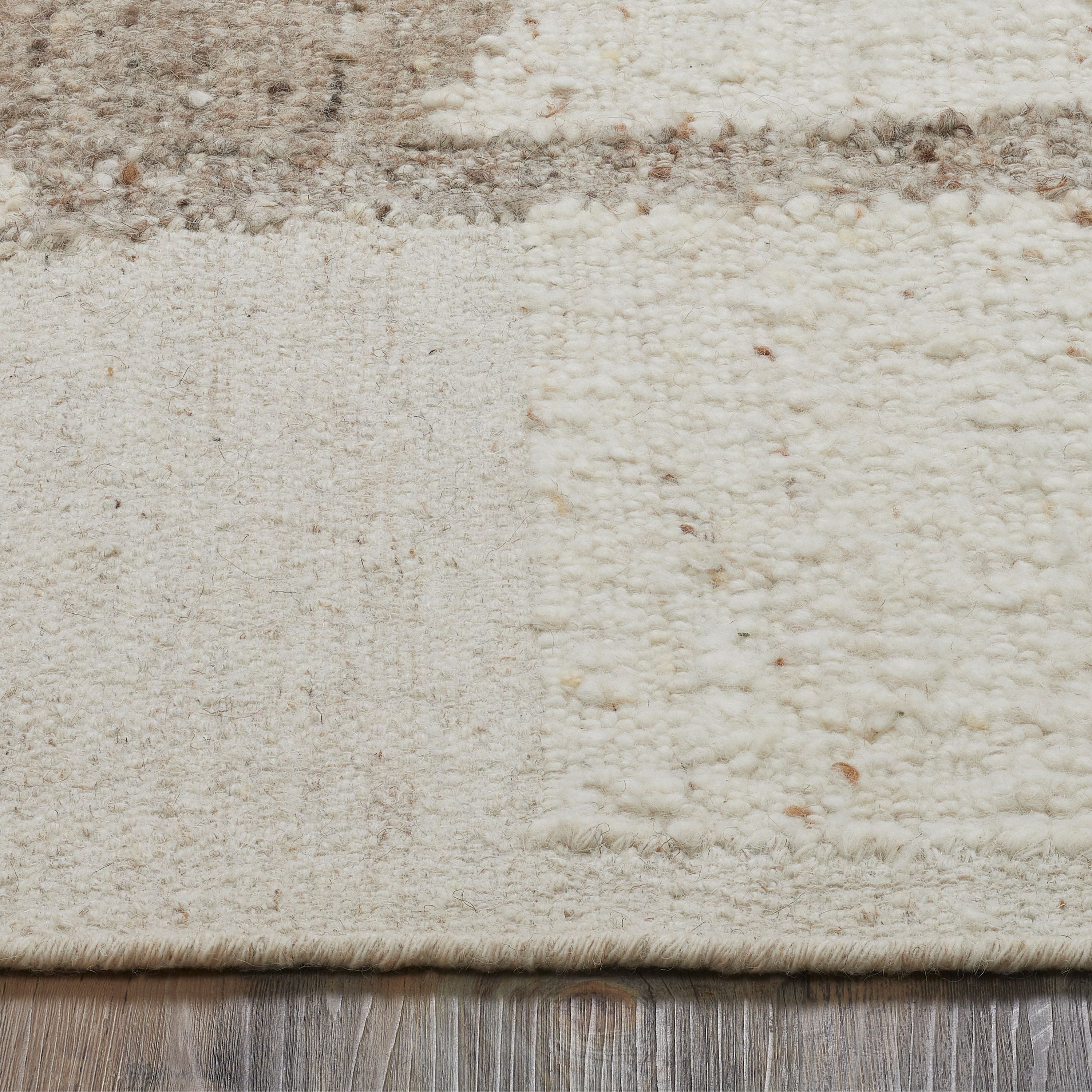 Make an artistic statement in any contemporary space with the abstract appeal of this handwoven area rug. Composed of a 70% wool, 15% jute and 10% cotton blend that delivers a soft underfoot feel, this ivory and stone carpet is a luxurious choice for your interior design project. Choose from four available sizes to complete the look of any room.