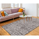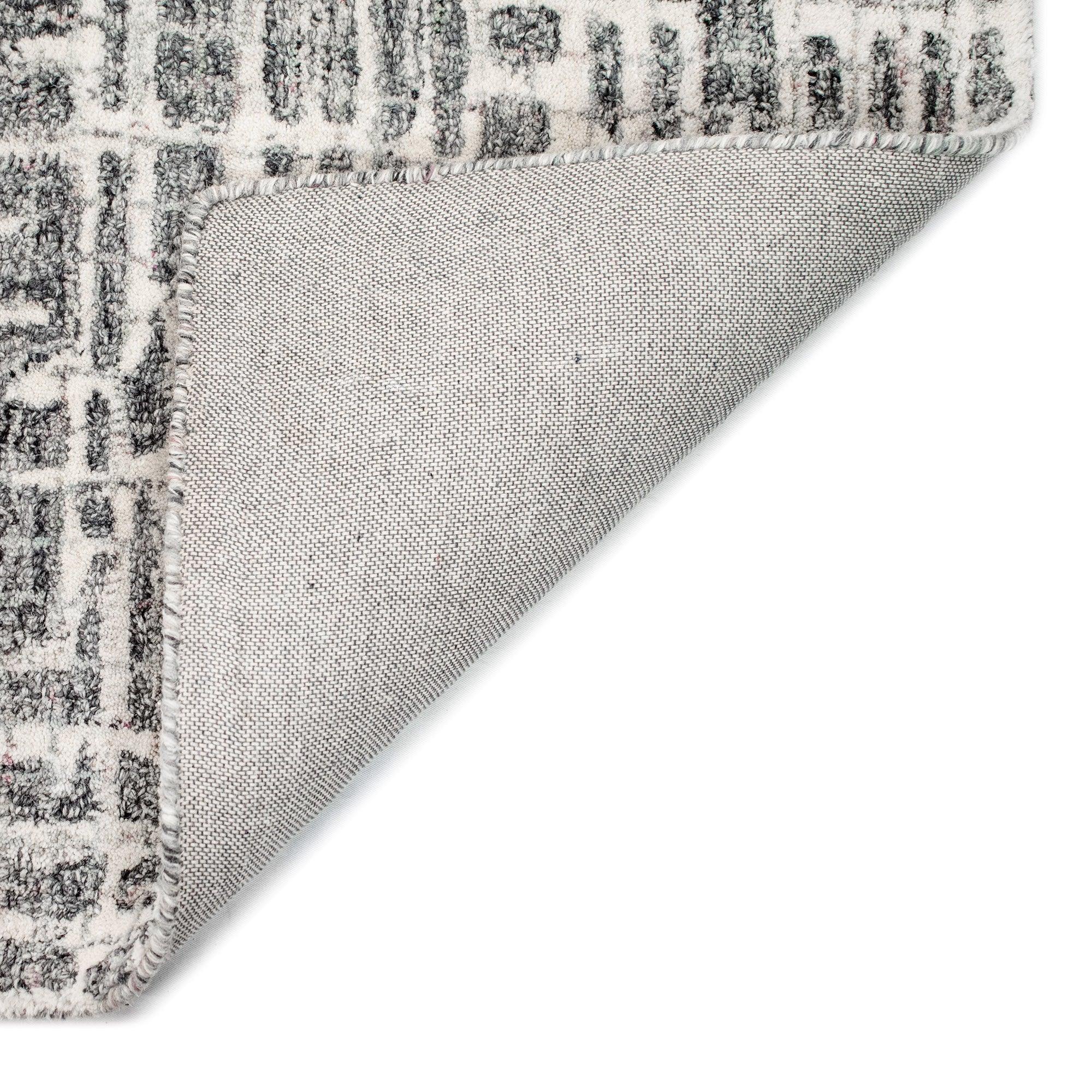 Savannah Grid Grey rug, featuring an organic geometric design inspired by a structural grid. The calming blue colorway adds a modern twist to this classic pattern, making it a versatile piece for any room in your home. Crafted from 100% luxurious wool, this collection boasts specially dyed fibers that create stunning multi-dimensional shading and tonal depth.