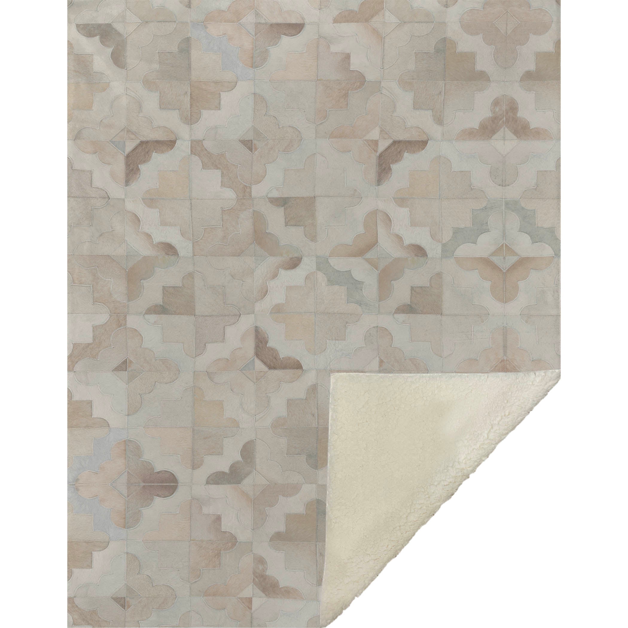 Step into a world of wild allure with a cowhide style that evokes the spirit of the great outdoors. Featuring a scallop diamond pattern, it harmonizes beautifully with your decor, creating a cozy, yet exotic sanctuary. Oversized at 50" x 70", its lush, soft-touch front paired with a warm sherpa backing delivers unmatched comfort. Built from fade-resistant polyester microfiber, it thrives both indoors and in covered outdoor spaces, and its machine-washable nature promises hassle-free care.