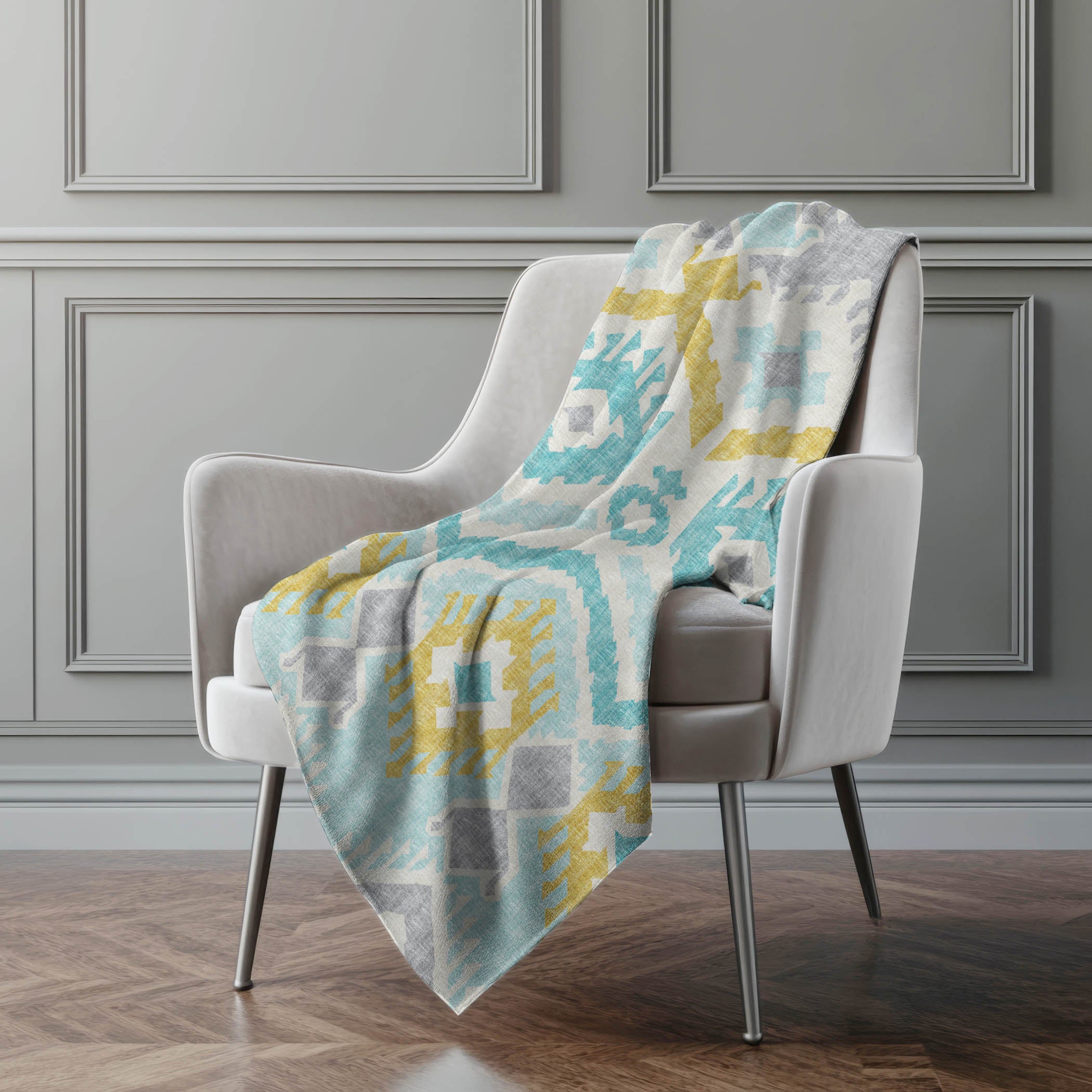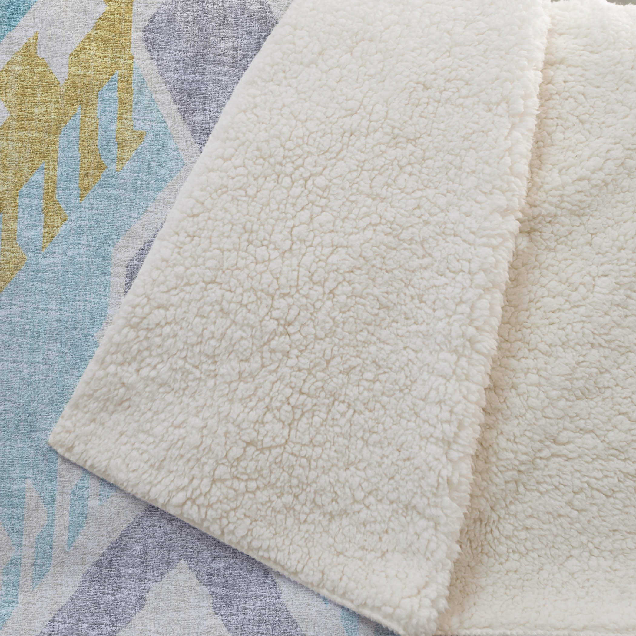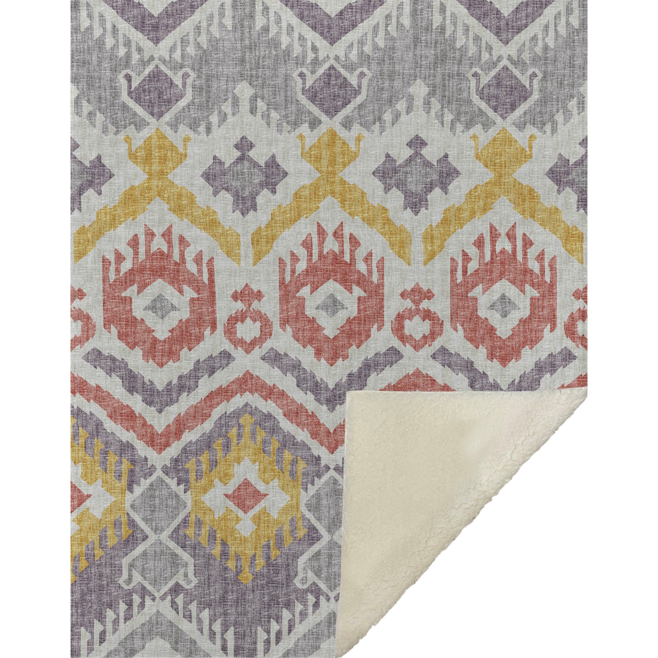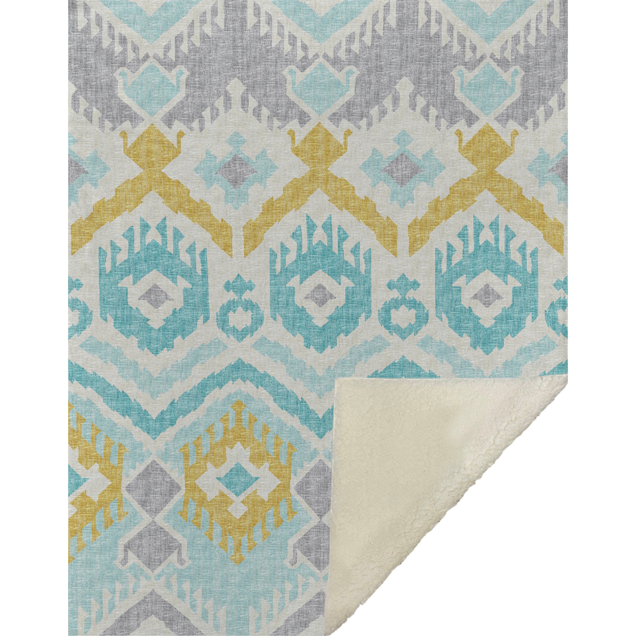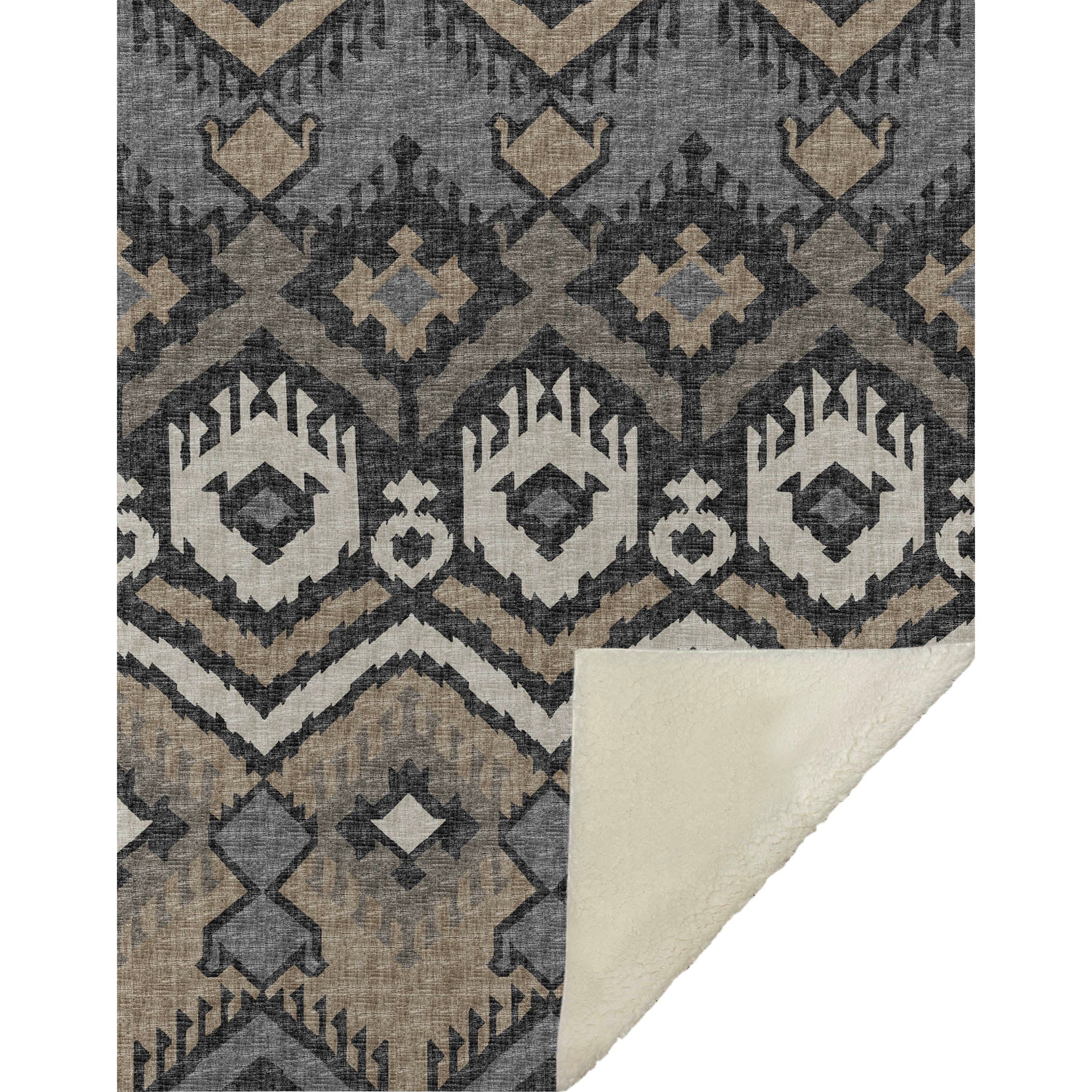 Embark on a journey of style with the captivating tribal and boho patterns, featuring bold chevron-inspired motifs that redefine transitional elegance. Delight in an oversized 50" x 70" design that combines a luxuriously soft-touch front with a cozy sherpa backing, providing a haven of warmth and comfort. Made from fade-resistant polyester microfiber, it suits both indoor charm and the allure of covered outdoor nooks, while being effortlessly machine washable for your convenience.