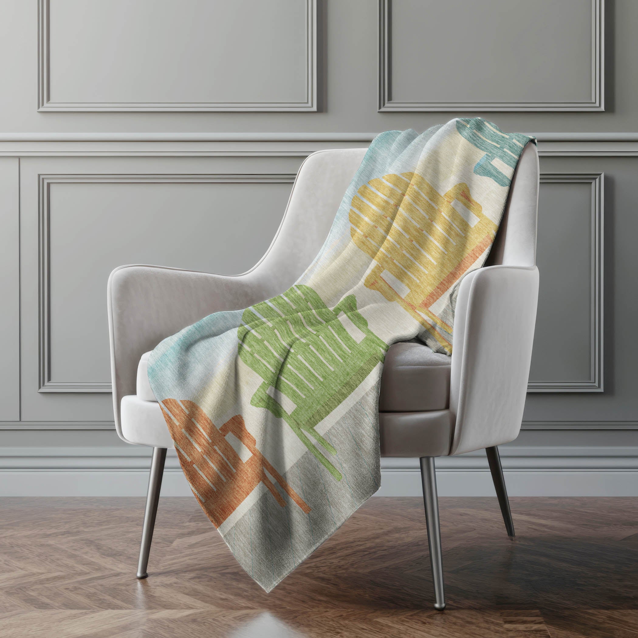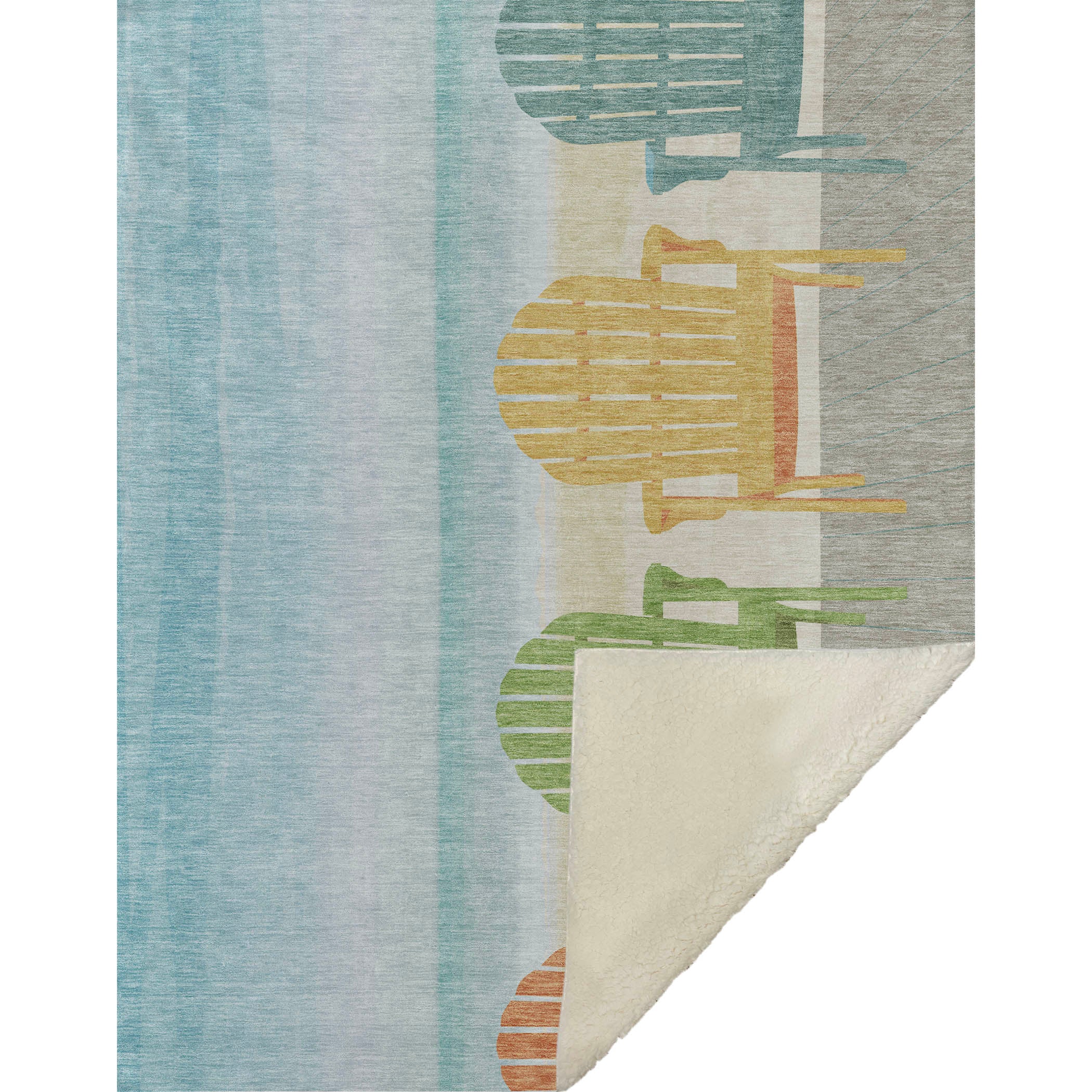 Dive into coastal serenity with a stunning design featuring Adirondack chairs along a tranquil ocean shore. The oversized 50" x 70" proportions provide generous comfort, while luxuriating in the soft-touch front and sherpa backing's warmth. Made from fade-resistant polyester microfiber, it suits both indoor and covered outdoor settings, and its machine-washable convenience offers effortless maintenance.