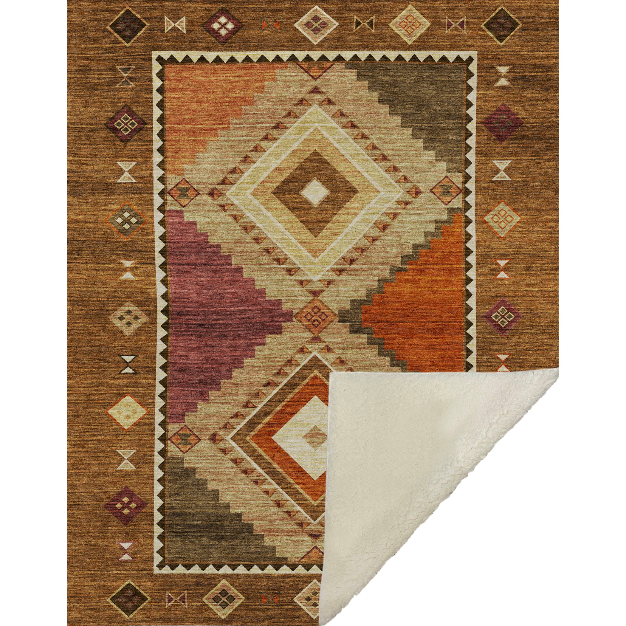 Unleash the spirit of adventure in your home with a splash of Southwest charm. This Aztec-patterned marvel weaves global vibes throughout your space with its intricate motifs. Oversized at 50" x 70", it offers luxuriously soft-touch front paired with a warm sherpa backing, ensuring top-notch comfort. Crafted from fade-resistant polyester microfiber, it's perfect for both indoor and covered outdoor settings, and is premium machine washable for effortless care.