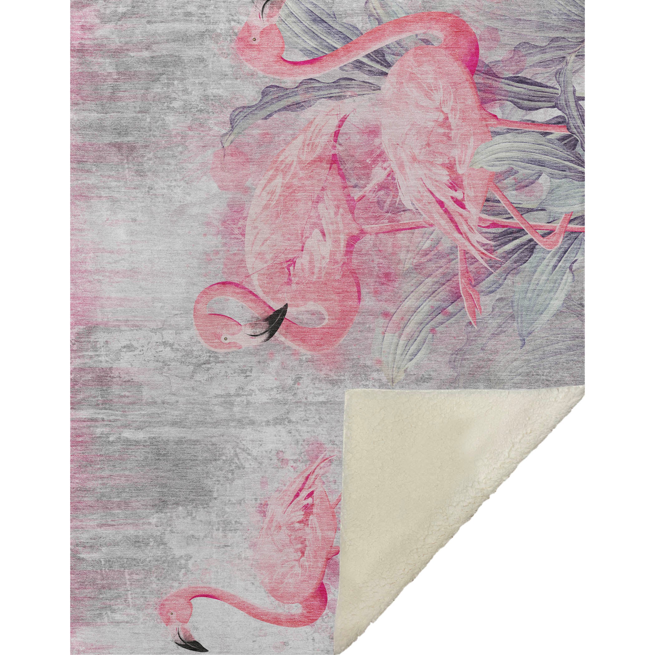 Immerse yourself in a tropical getaway with whimsical flamingos set in a soothing color palette. The oversized 50" x 70" dimensions ensure plenty of room to snuggle, featuring an ultra-soft-touch front and nurturing sherpa backing for ultimate relaxation. Made from fade-resistant polyester microfiber, it's ideal for both indoor serenity and covered outdoor leisure, while its machine-washable convenience ensures effortless care.