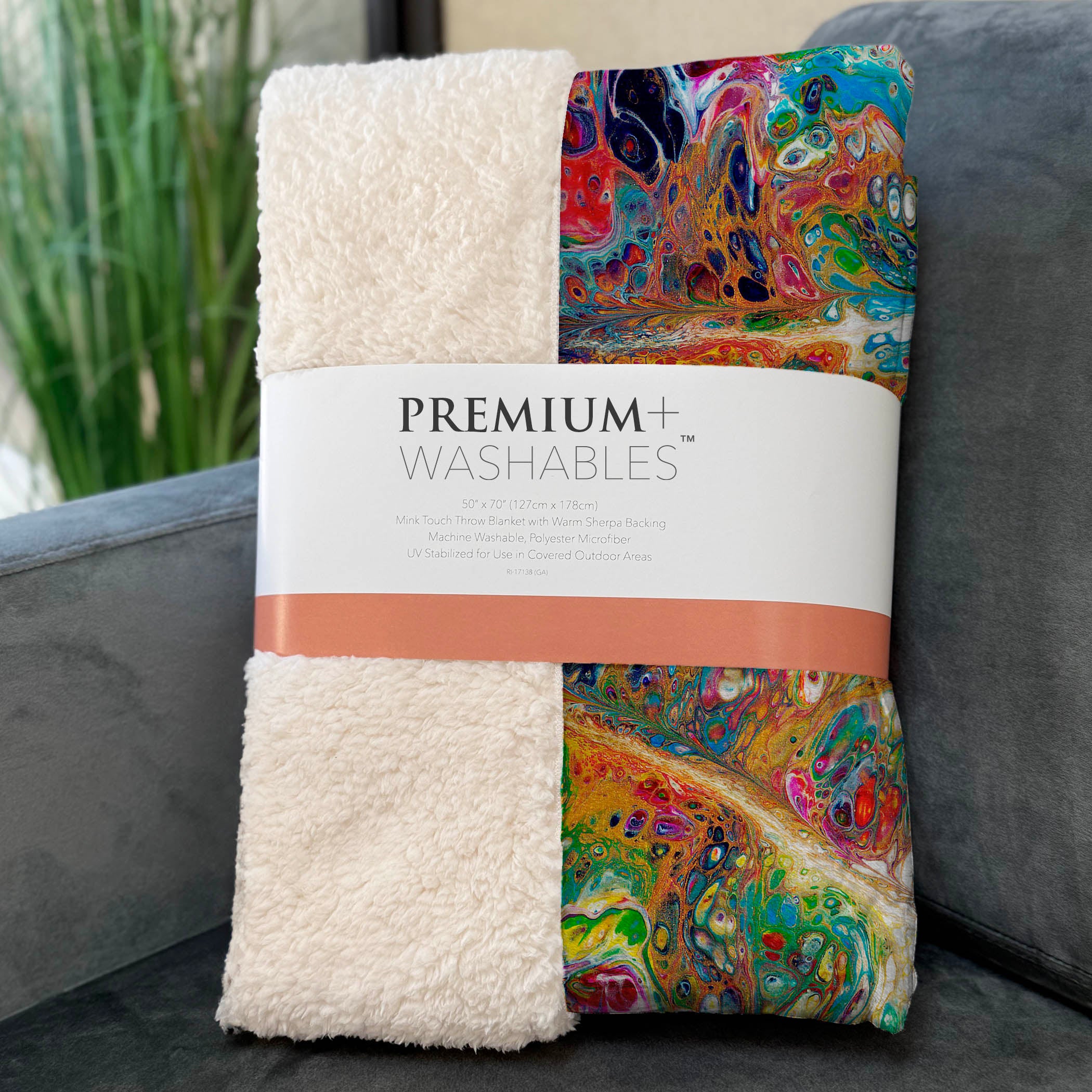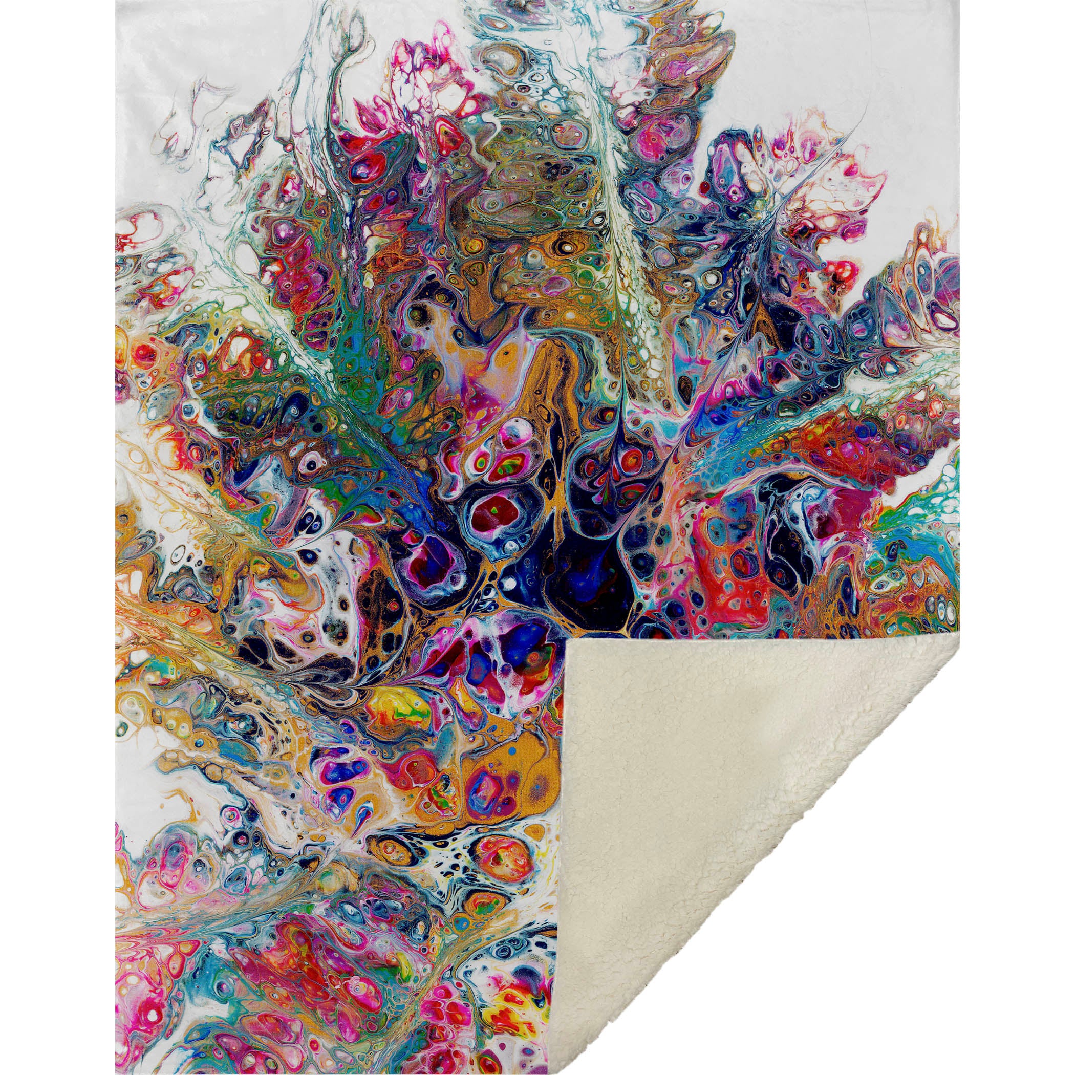 Discover the mesmerizing blend of contemporary style and abstract design with a pattern reminiscent of an acrylic paint pour, creating a captivating visual in any setting. Envelop yourself in the generous 50" x 70" oversized dimensions, where an exquisitely soft-touch front meets a cozy sherpa backing, providing warmth and comfort that beckons for relaxation. Designed with fade-resistant polyester microfiber, it’s an ideal choice for both indoor and covered outdoor spaces, complete with machine-washable convenience for easy maintenance.