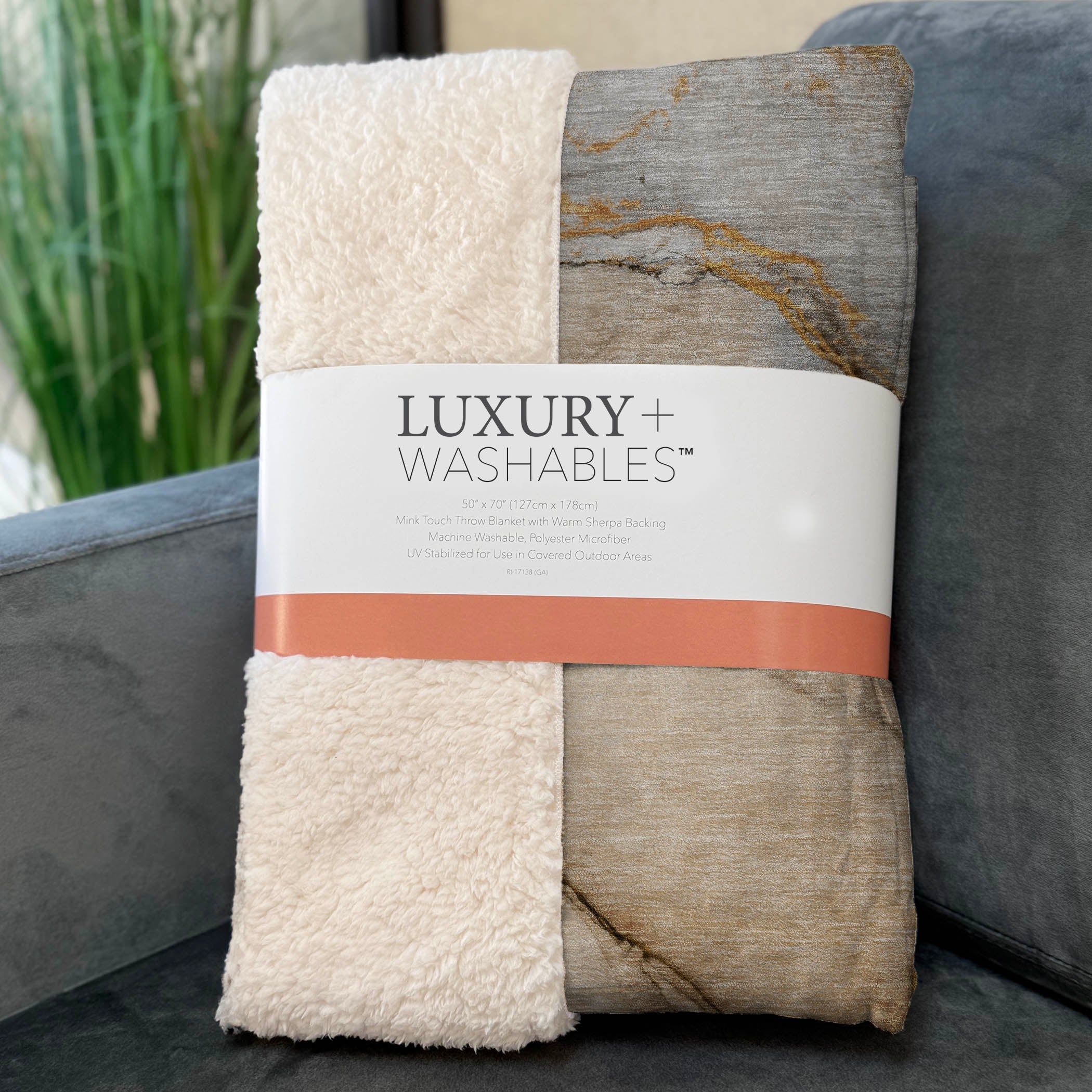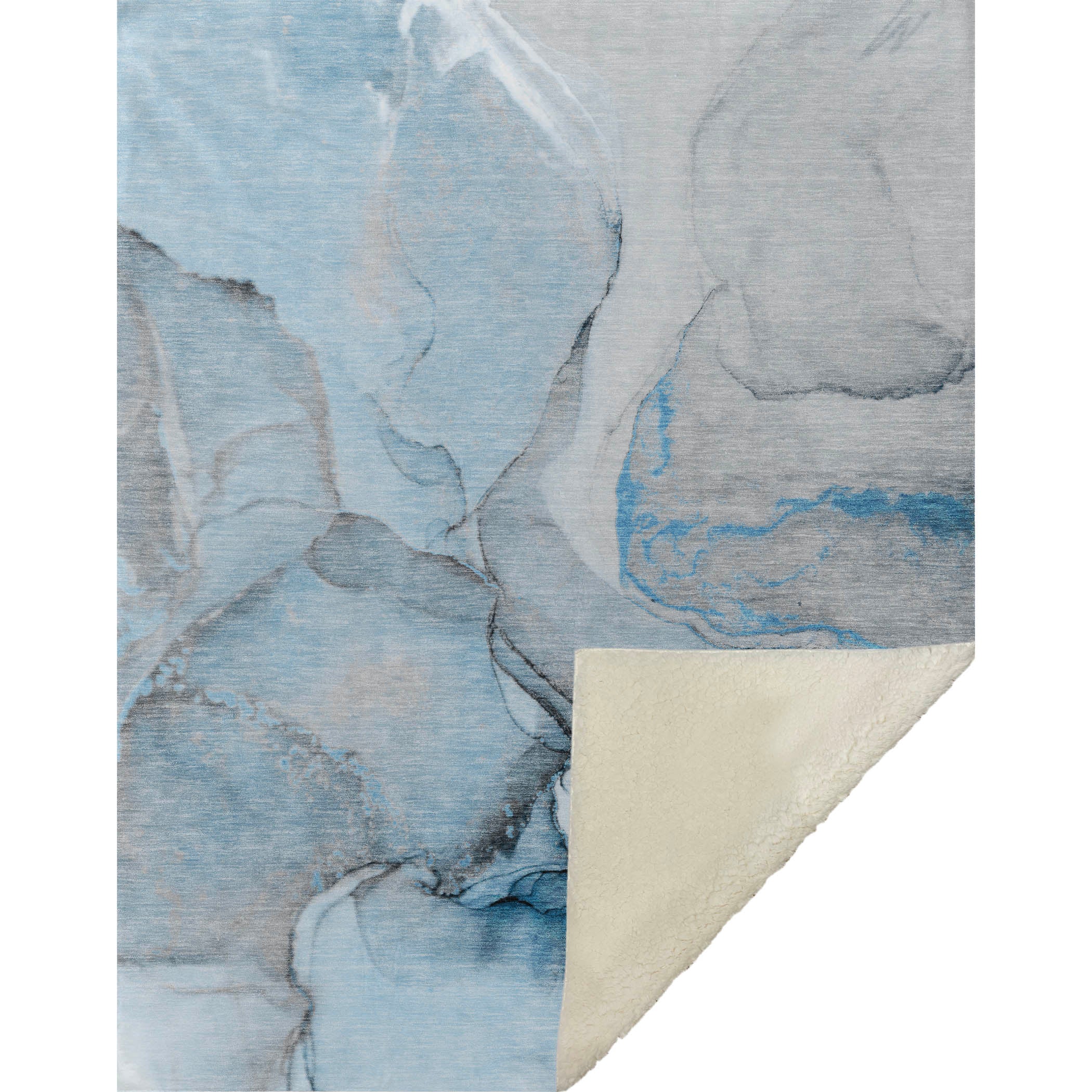 Indulge in the tranquility of a beautiful watercolor pattern, reminiscent of fluid ink explorations, perfect for transitional spaces. Oversized at 50" x 70", the luxuriously soft front and warm sherpa backing deliver unrivaled comfort for indoor and covered outdoor lounging. Crafted from fade-resistant polyester microfiber and designed for easy maintenance with its machine washable quality, it's a pivotal home essential that combines style with practicality.