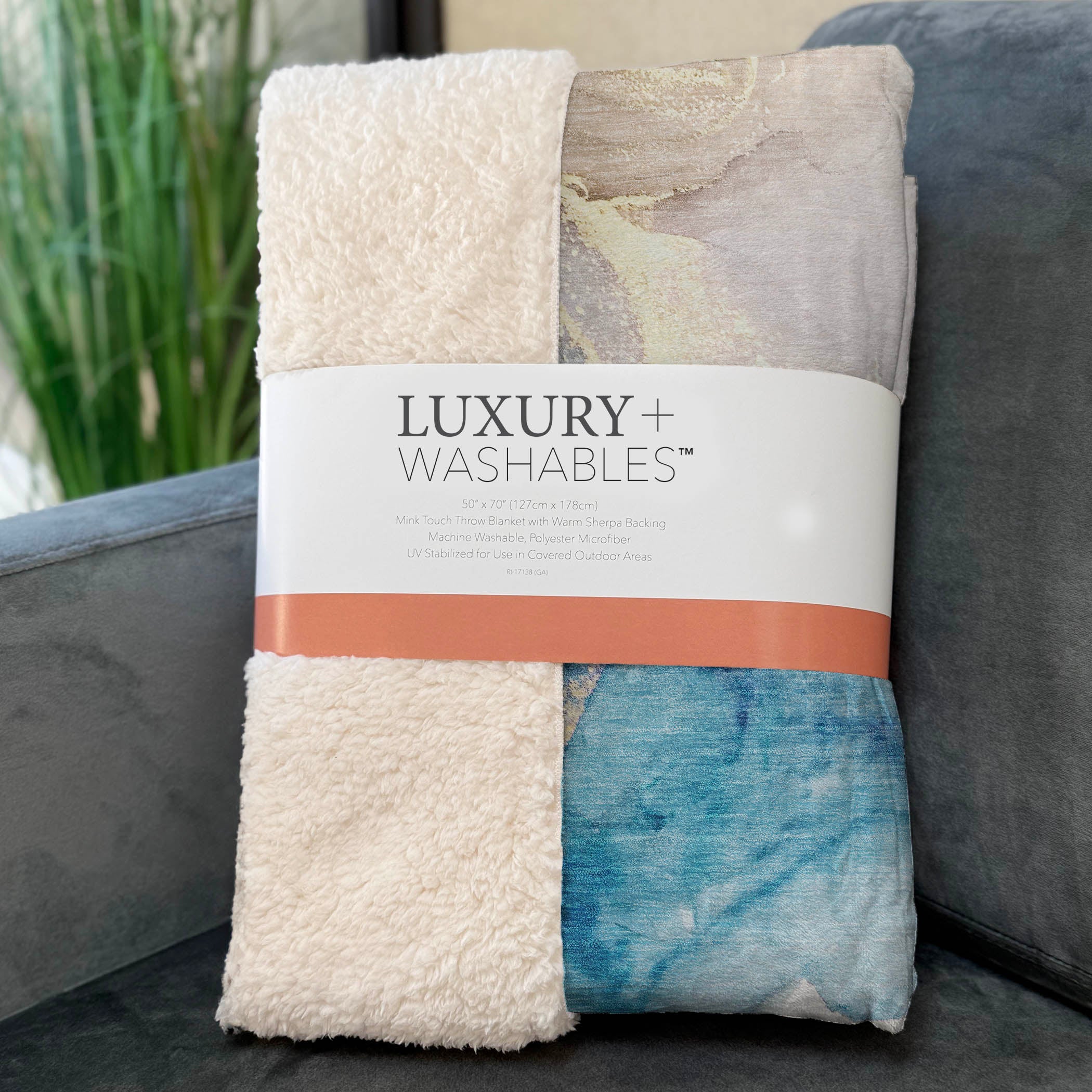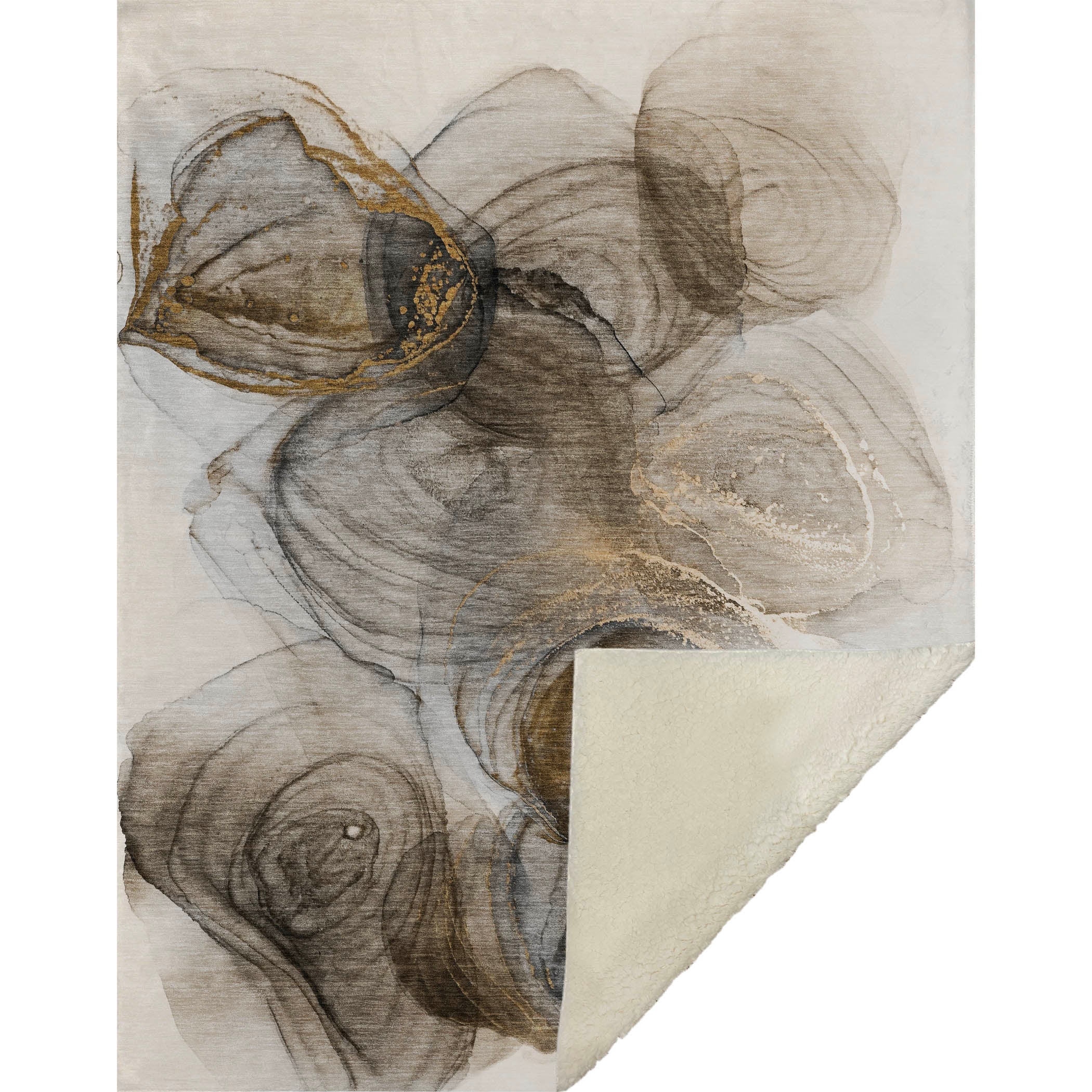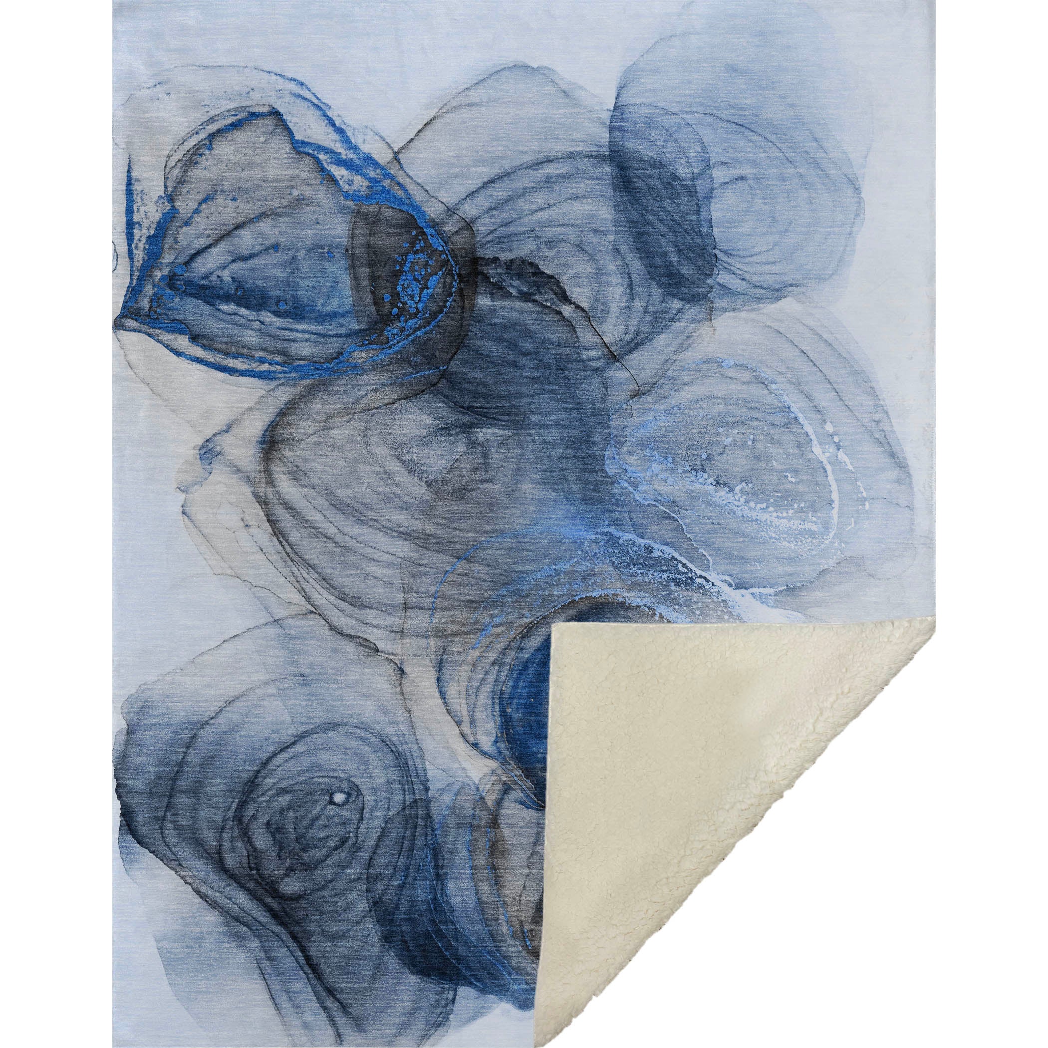 Adorn your living space with the tranquil and modern appeal of soft puddle shapes, perfect for any transitional setting. Generously sized at 50" x 70", it seamlessly combines a soft-touch front with a warm sherpa backing, offering a cocoon of comfort. Fade-resistant polyester microfiber ensures it remains vibrant for both indoors and covered outdoor spaces, while its premium machine washable feature guarantees easy upkeep.