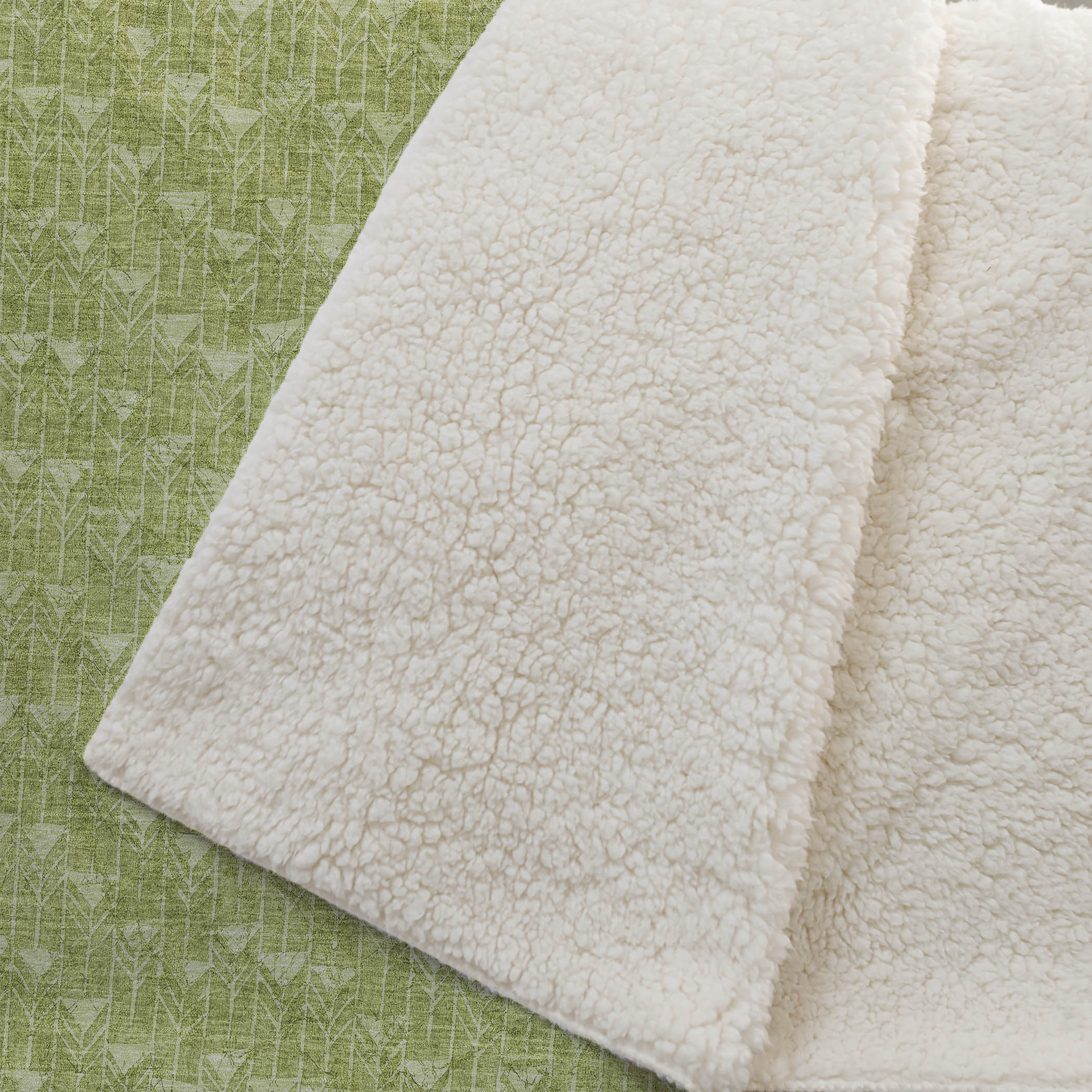 Embark on a journey of comfort and charm with the geometric arrow pattern that effortlessly guides style into your space. This transitional piece combines the luxurious softness of a plush front with the inviting warmth of a sherpa backing. Oversized at 50" x 70", it’s made from fade-resistant polyester microfiber, perfect for both indoor and covered outdoor settings, and provides hassle-free upkeep with its machine washable design.