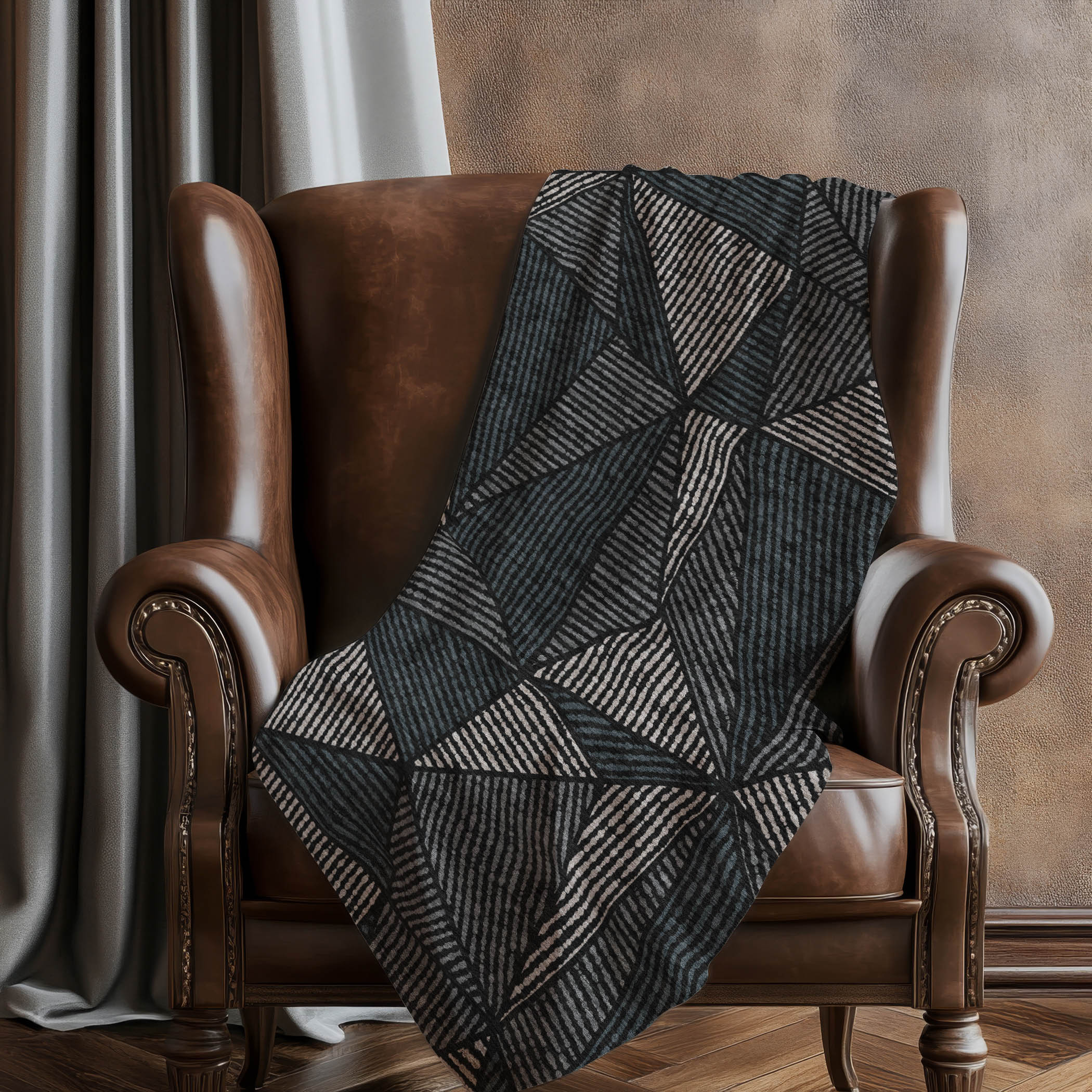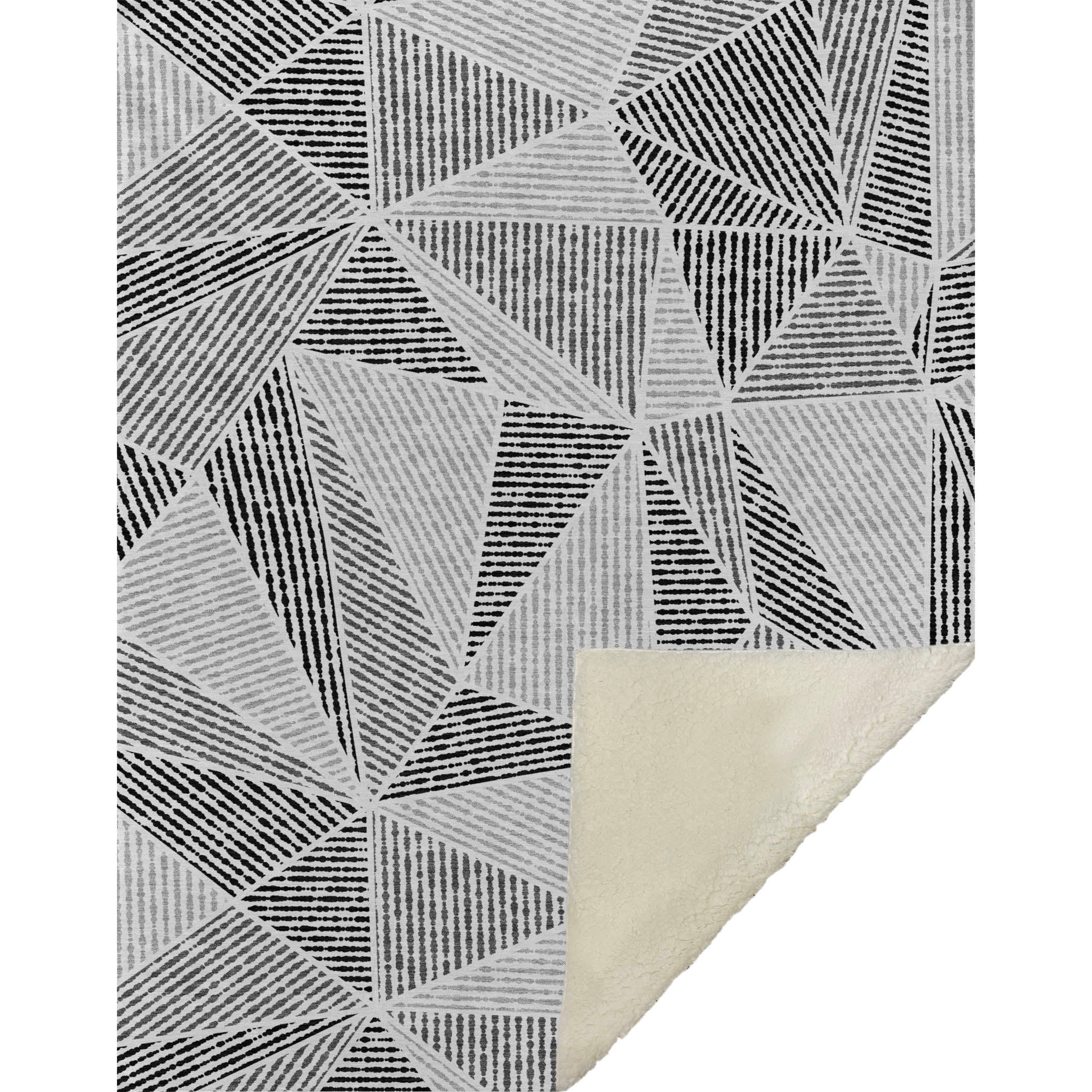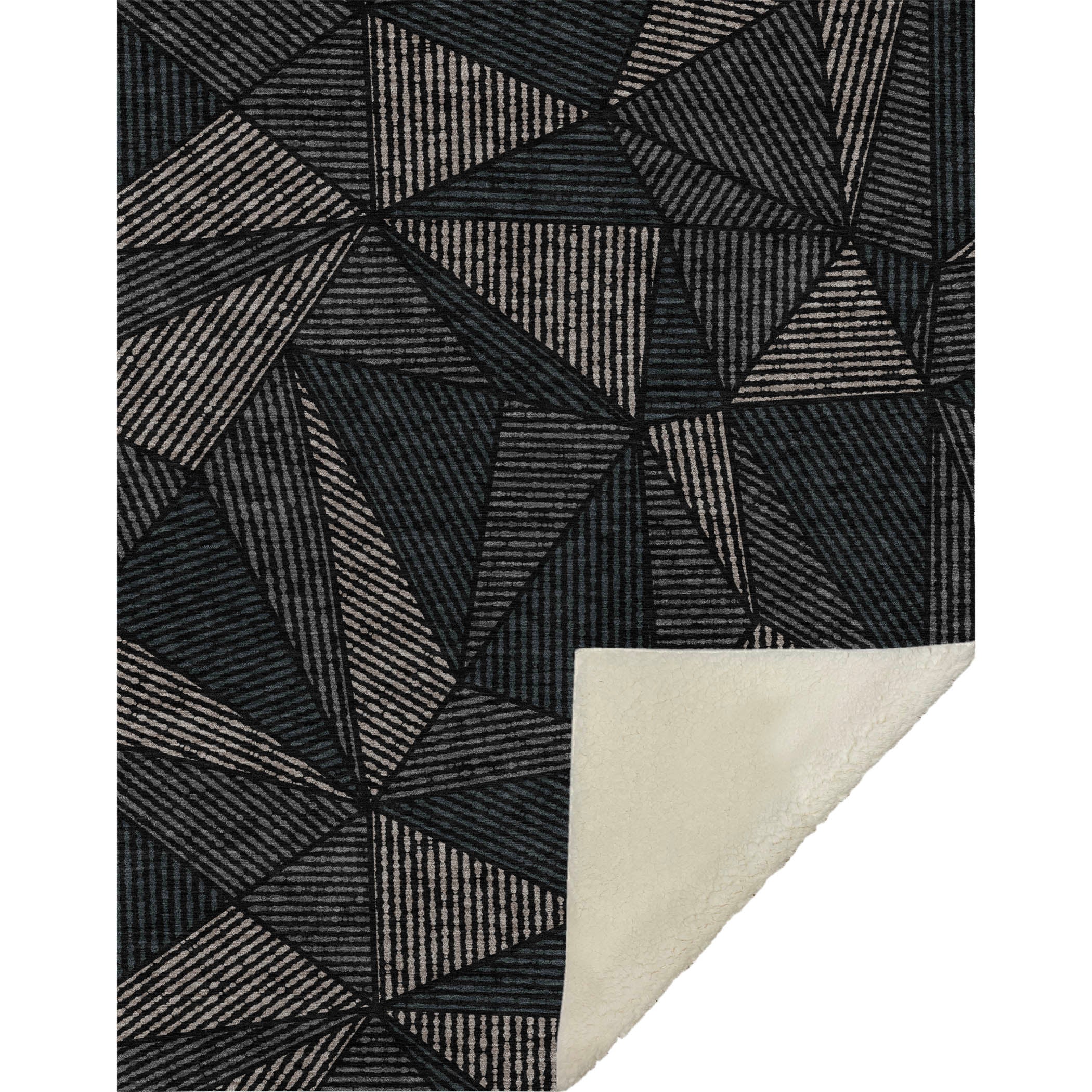 Immerse yourself in the artful connection of geometric triangles and intricate jagged lines, making a bold statement in any space. Boasting transitional style, its generous 50" x 70" size offers unparalleled solace with a blissfully soft-touch front and snug sherpa backing. Constructed from fade-resistant polyester microfiber, it’s perfect for indoor and covered outdoor settings, and promises hassle-free maintenance with its premium machine washable quality.