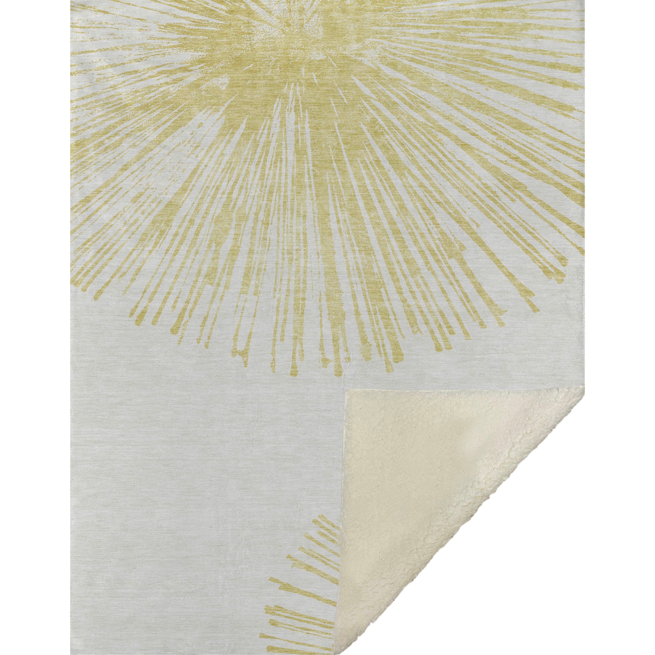 Breathe life into your decor with an oversized spoke pattern that adds a burst of energy through dynamic circles. Crafted in a transitional style, its lively design seamlessly complements various aesthetics while offering luxurious softness with a sherpa backing in its 50" x 70" expanse. Resistant to fading with polyester microfiber construction, it's perfect for both indoor and covered outdoor areas, and its premium machine washable nature ensures easy care, making it a stylish yet practical addition to any space.