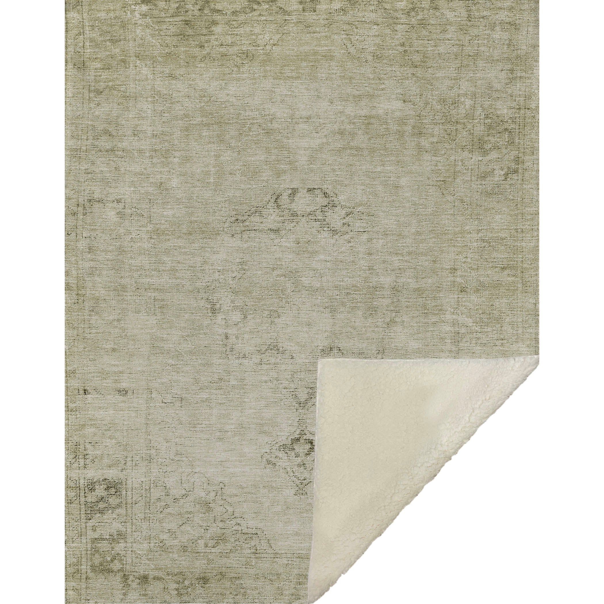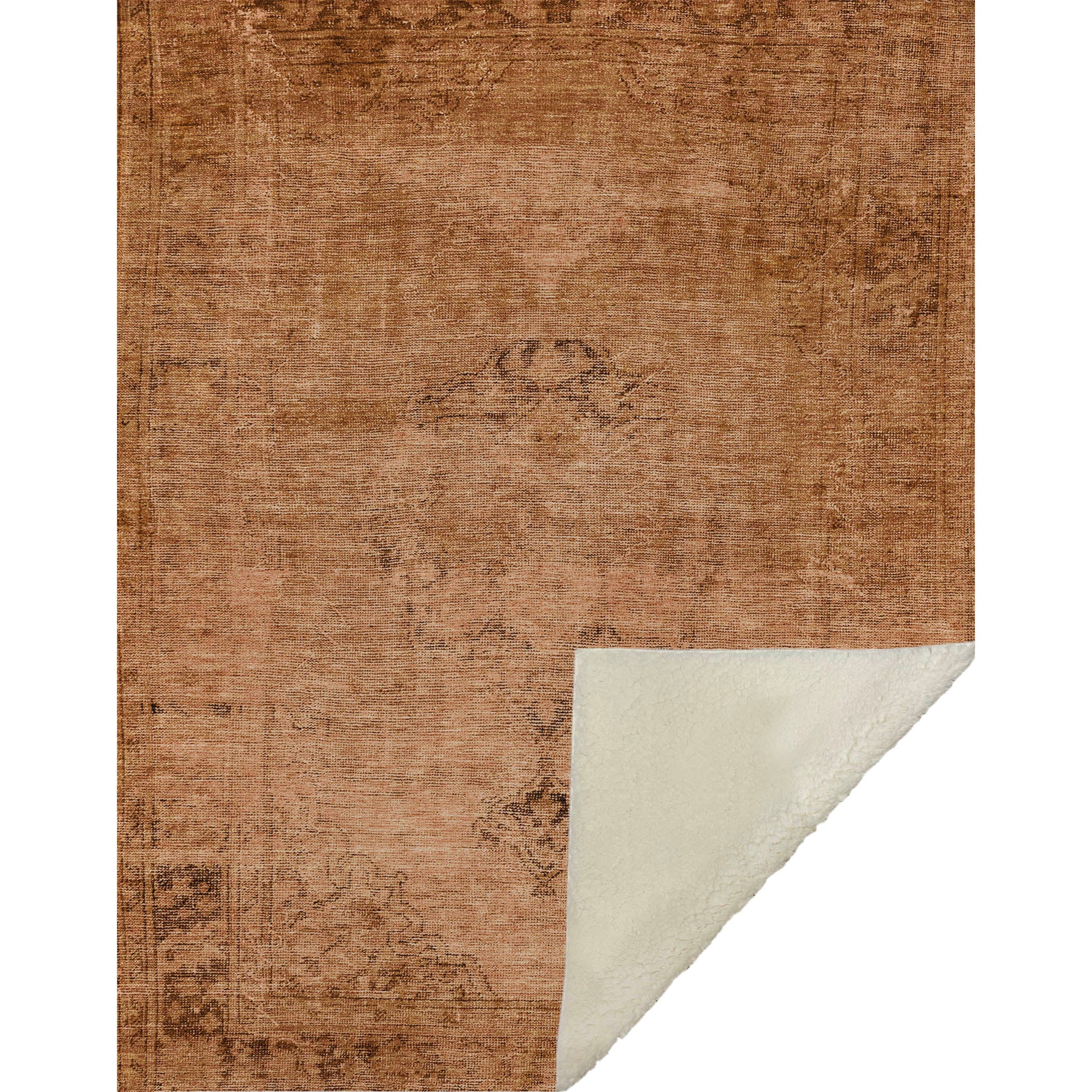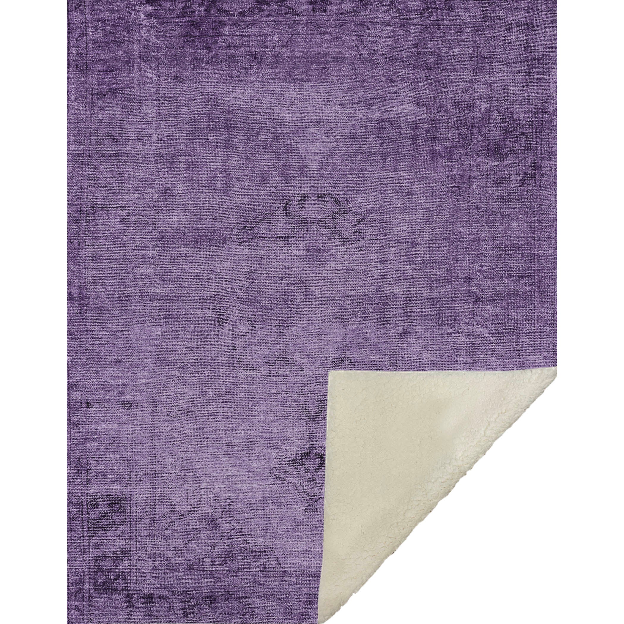 Embrace the charm of yesteryears with a stunning Oriental piece showcasing a beautifully faded centered medallion and intriguingly distressed borders. At an oversized 50" x 70", its luxuriously soft-touch front combined with the warm sherpa backing offers an inviting cocoon of comfort. Designed with fade-resistant polyester microfiber, it's suitable for indoor and covered outdoor areas, featuring a premium machine washable design for unmatched convenience.