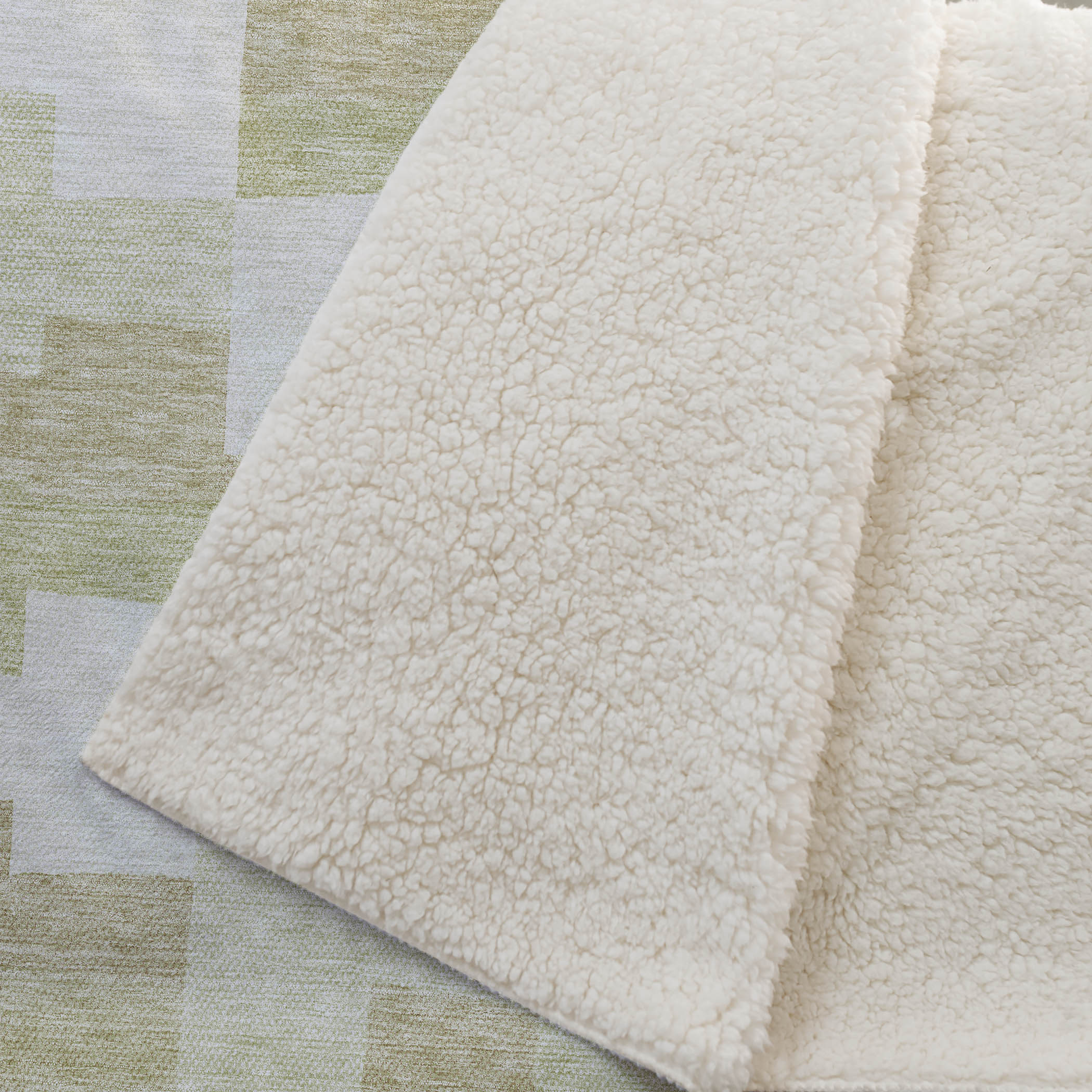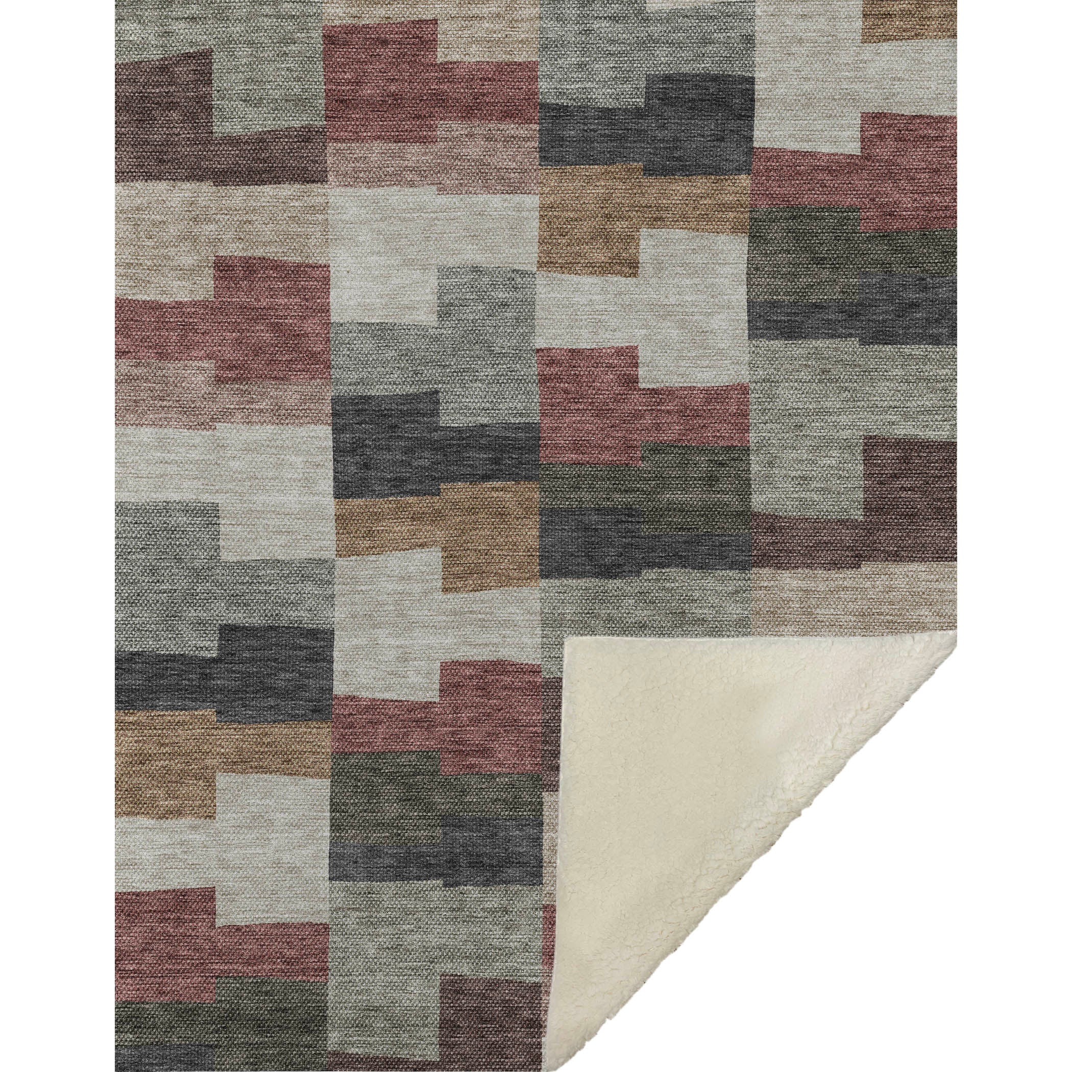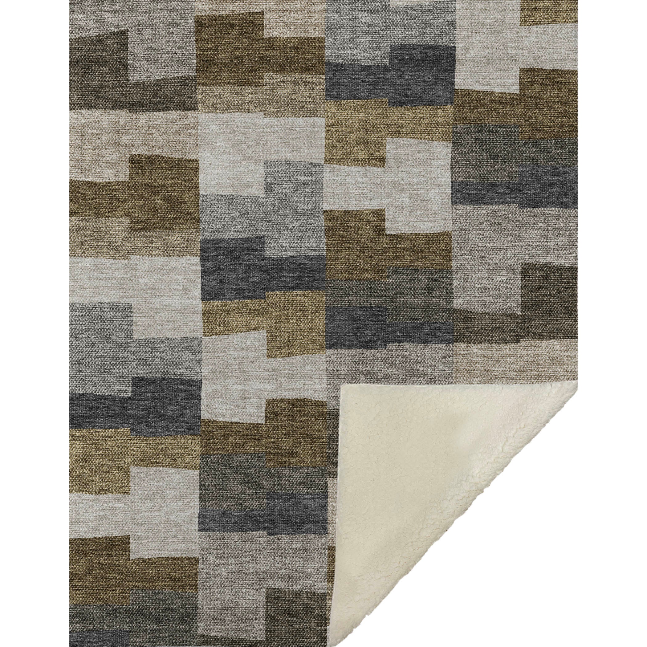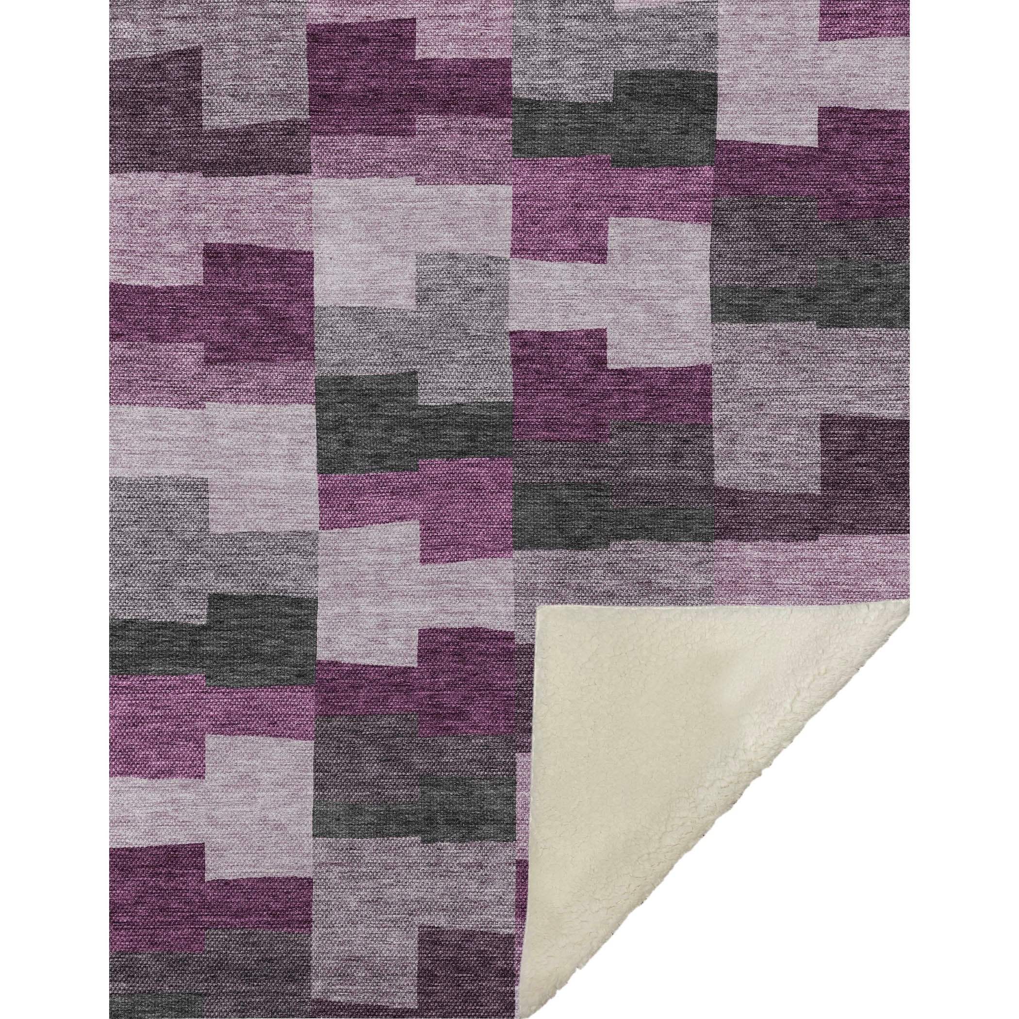 Discover the geometric allure with beautifully arranged irregular block shapes in horizontal lines. This transitional piece, boasting oversized dimensions of 50" x 70", features an incredibly soft-touch front coupled with a warm sherpa backing for superior relaxation. Crafted from fade-resistant polyester microfiber, it suits both indoor and covered outdoor locales, and its premium machine washable construction allows for easy maintenance.