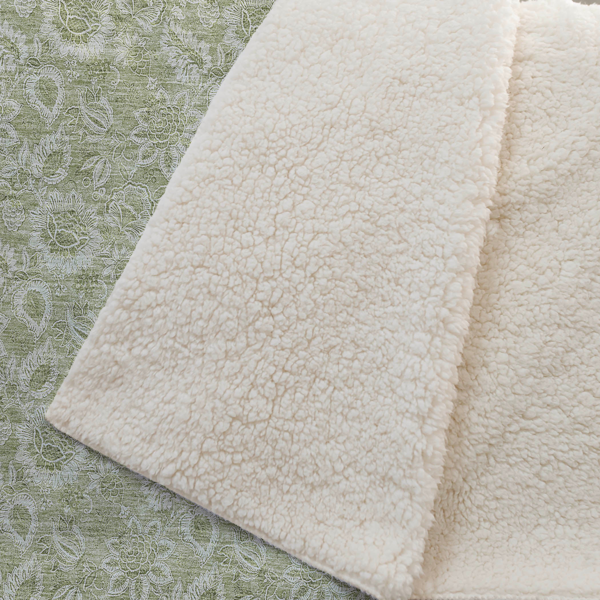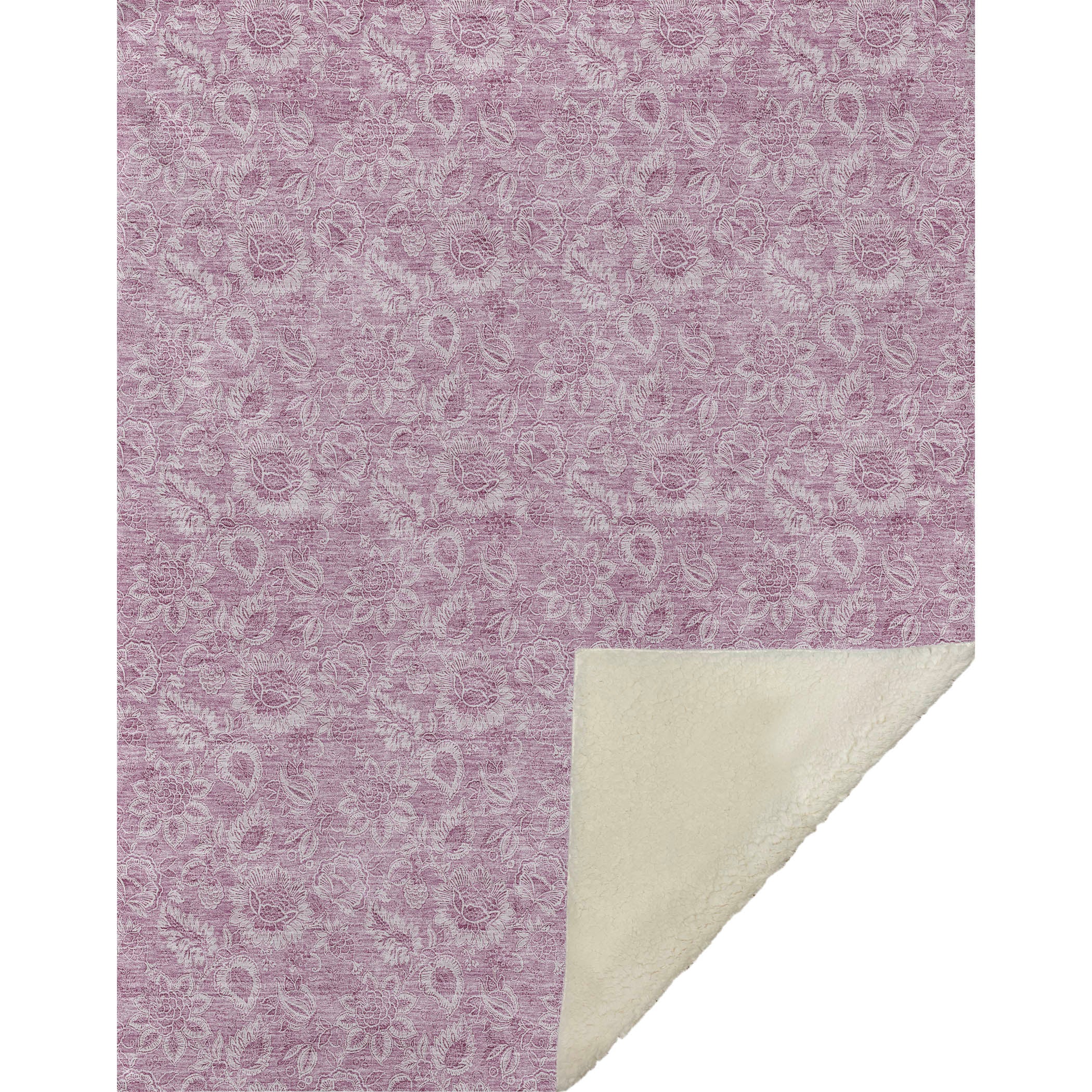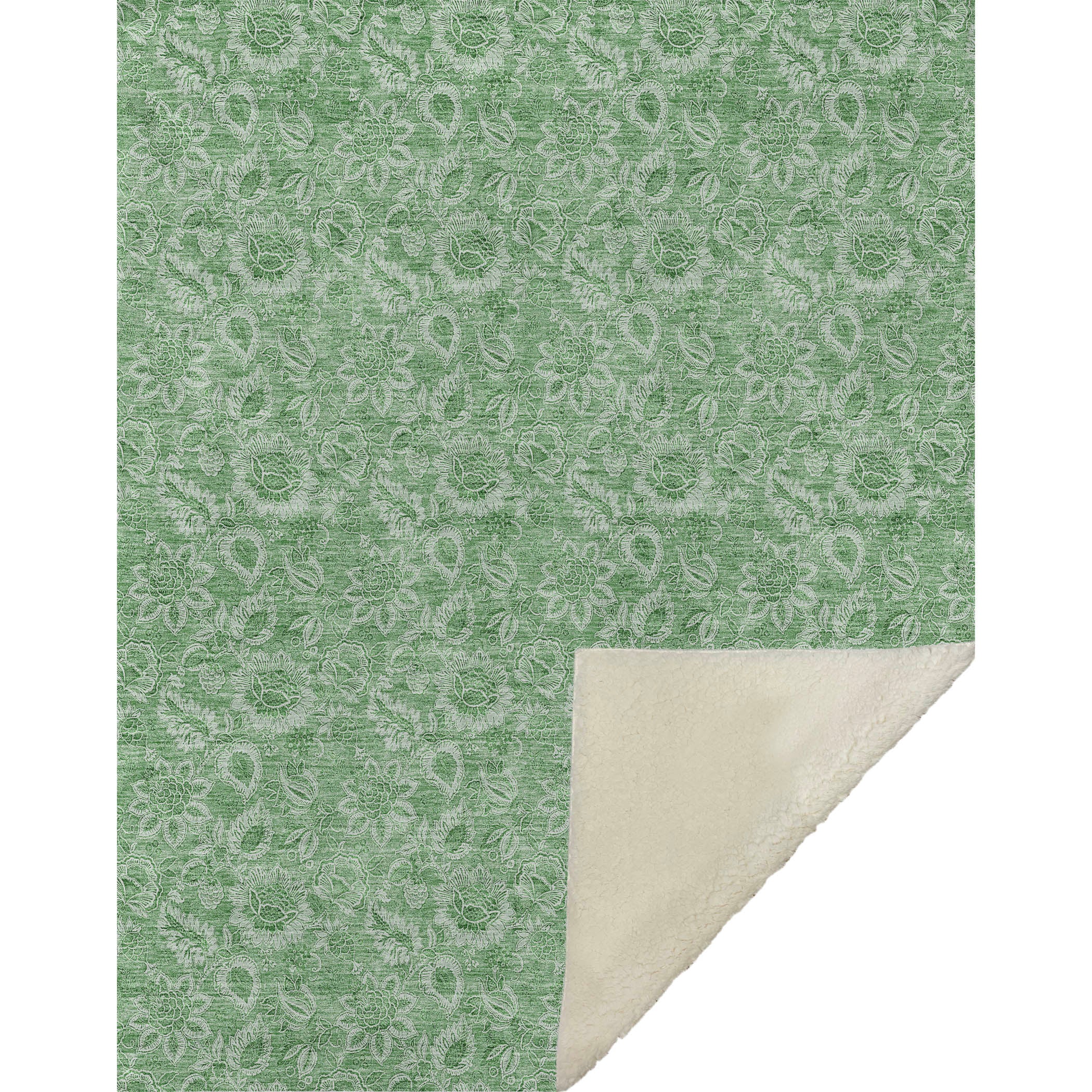 Immerse yourself in the charming embrace of soft floral bouquets and leafy accents that breathe life into any room. This transitional piece harmonizes with various decors, merging a soothing floral pattern with versatile style. Measuring a generous 50" x 70" inches, it boasts a luxuriously soft-touch front and cozy sherpa backing, ensuring warmth and comfort. Crafted from fade-resistant polyester microfiber, suitable for indoor and covered outdoor spaces, it offers the practicality of premium machine washable care.