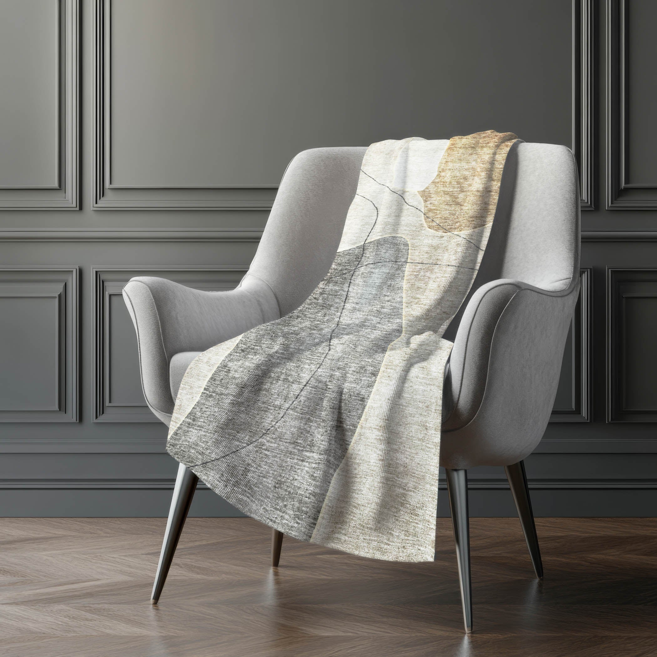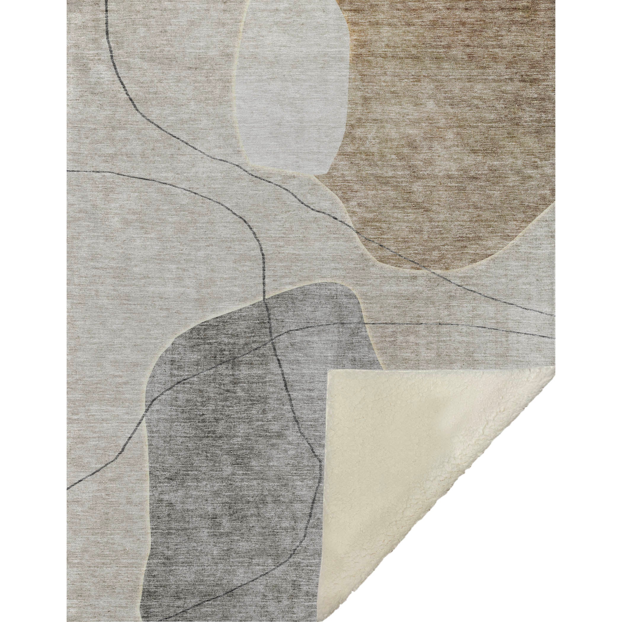 Immerse yourself in the charm of transitional style with an abstract design that features stone-like shapes intersected by delicate, thin lines, capturing an artistic essence. Experience unmatched comfort with its luxuriously soft-touch front and warm sherpa backing, perfect for enveloping yourself in coziness. With generous oversized dimensions of 50" x 70", it boasts fade-resistant polyester microfiber, making it ideal for both indoor retreats and covered outdoor escapes, while the premium machine washable feature ensures easy maintenance.