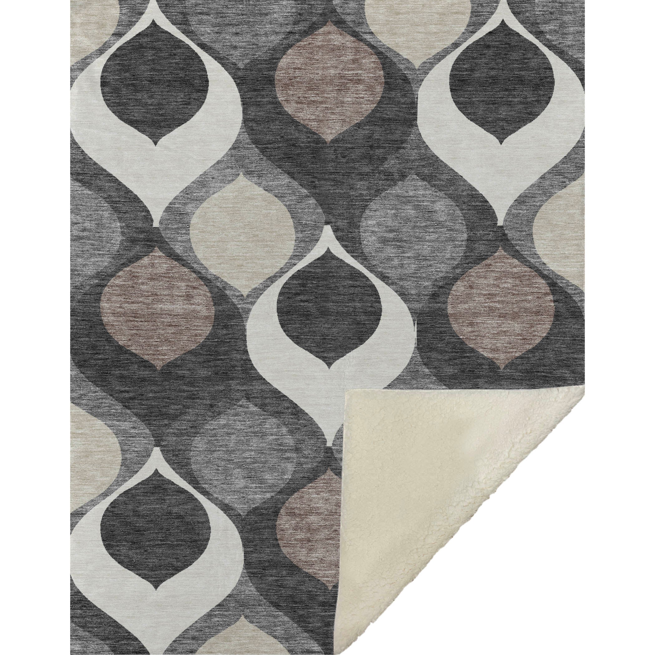 Immerse yourself in the charm of mid-century modern design with enchanting tear-dropped motifs that gracefully float, blending seamlessly into your transitional decor. Measuring a generous 50" x 70", it combines a luxuriously soft-touch front with a warm sherpa backing, offering unparalleled comfort. Fade-resistant polyester microfiber construction makes it ideal for indoor and covered outdoor use, and its Premium Machine Washable feature ensures easy maintenance.