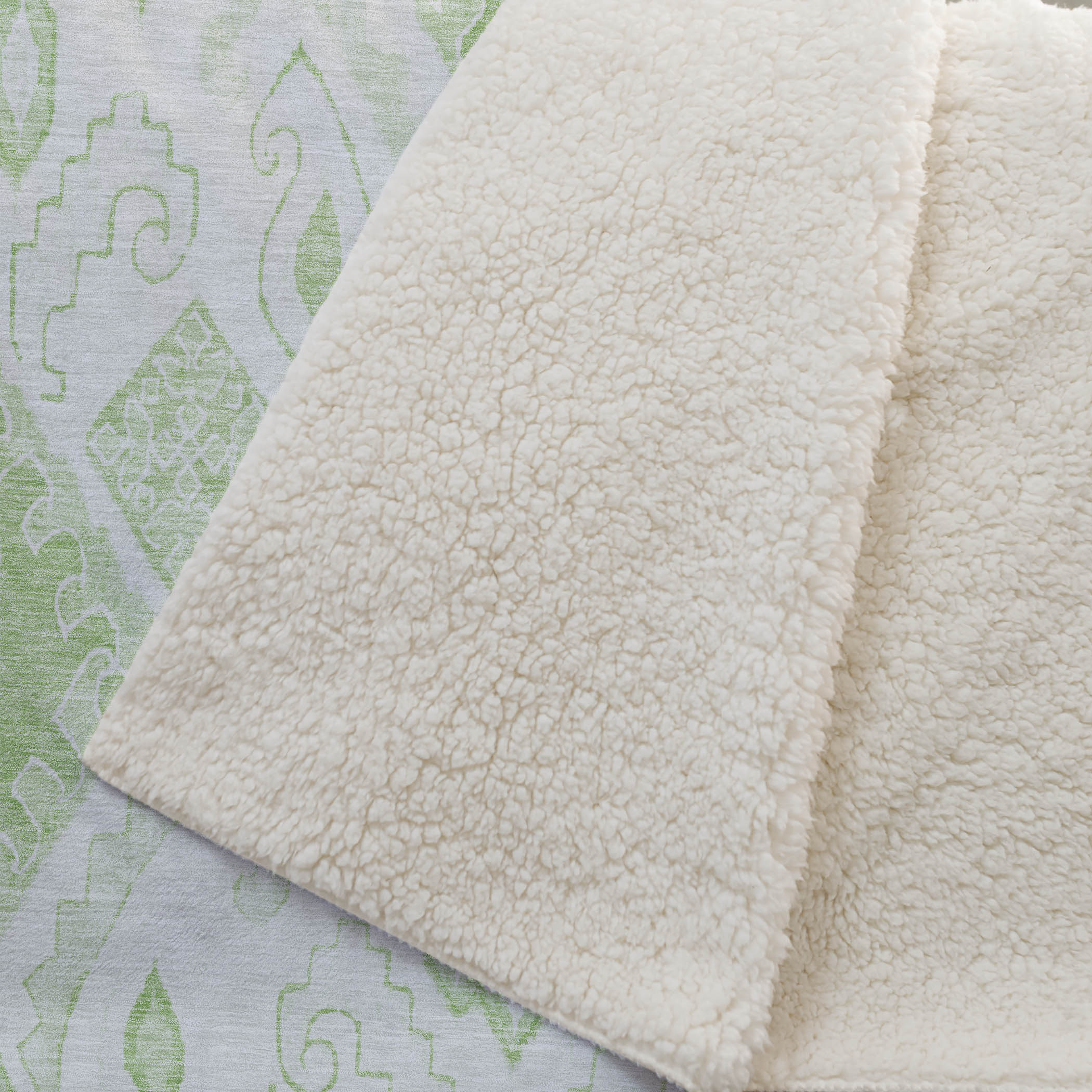 Embrace the enchanting allure of Moroccan motifs merging with timeless details, translating into a throw that encapsulates transitional style. Oversized at 50" x 70", it promises ample coverage, featuring a luxuriously soft-touch front and warm sherpa backing for ultimate comfort. Crafted from fade-resistant polyester microfiber, it's perfect for indoor and covered outdoor use, and its Premium Machine Washable design ensures easy care and maintenance.