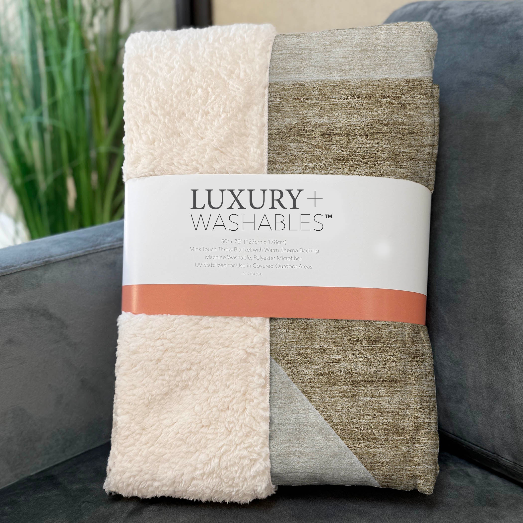 Embrace the allure of modern design with straight angle shapes that seamlessly blend into your transitional decor. Oversized at 50" x 70", it boasts a luxuriously soft-touch front and warm sherpa backing for ultimate comfort. Crafted from fade-resistant polyester microfiber, it's perfect for indoor and covered outdoor use, while its Premium Machine Washable quality ensures effortless upkeep.