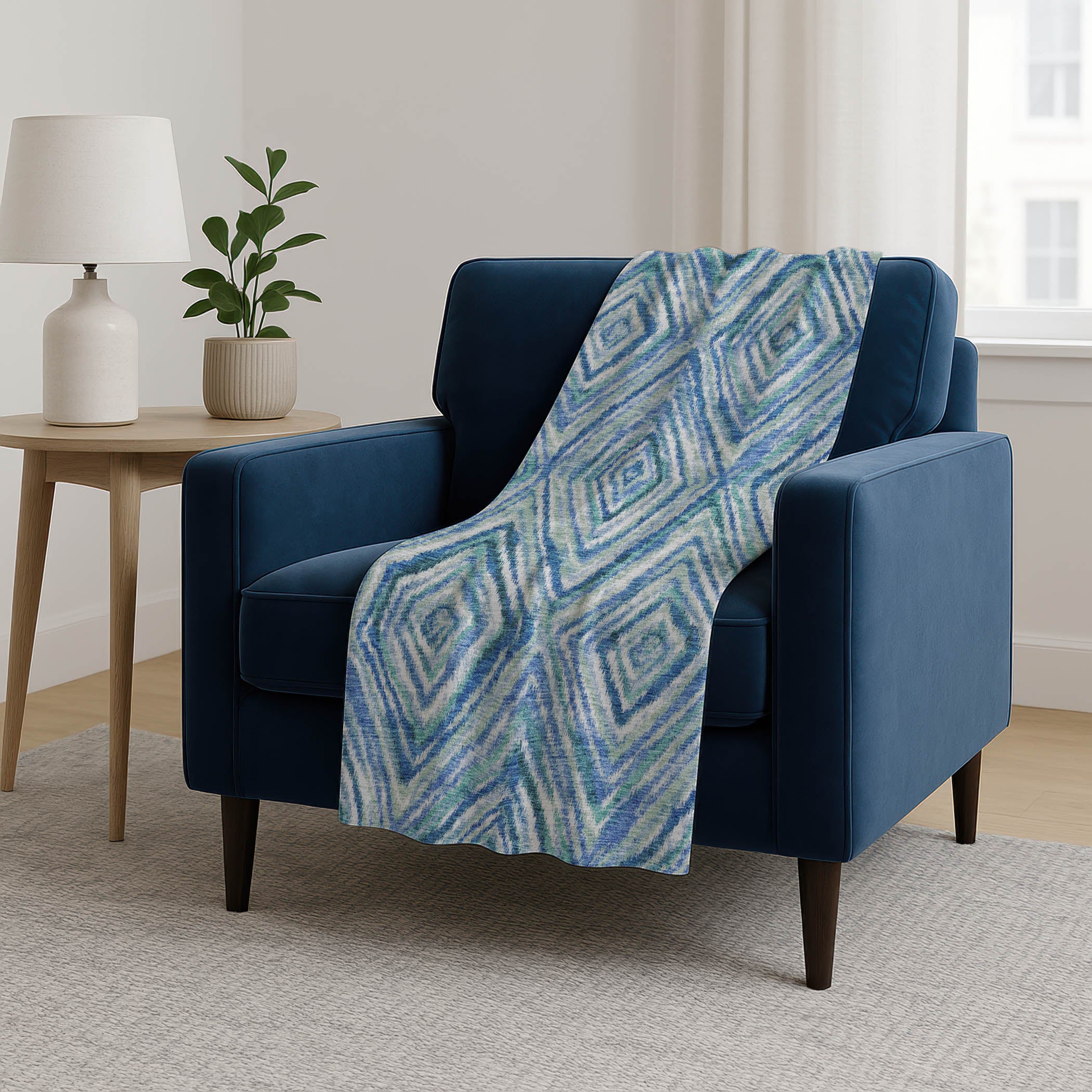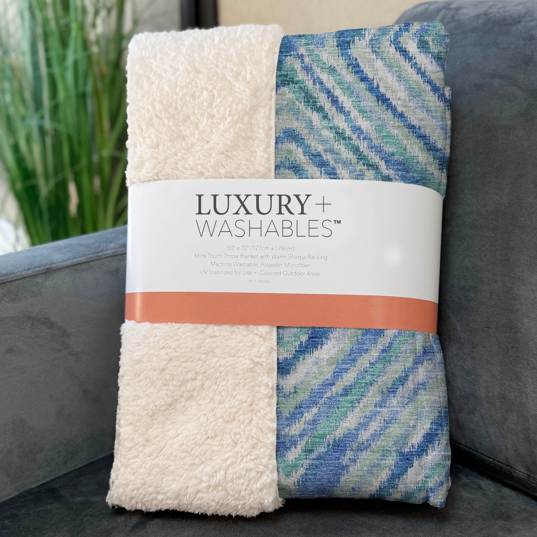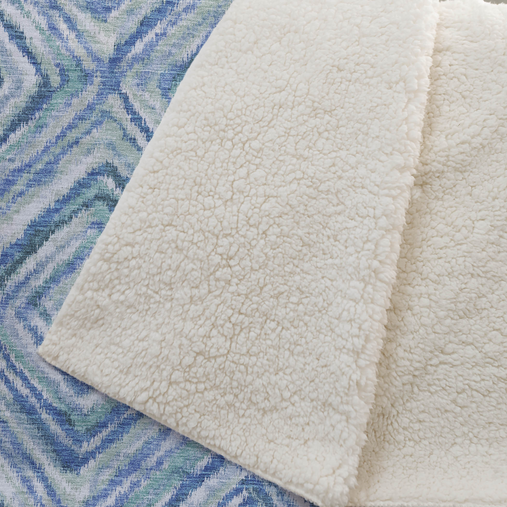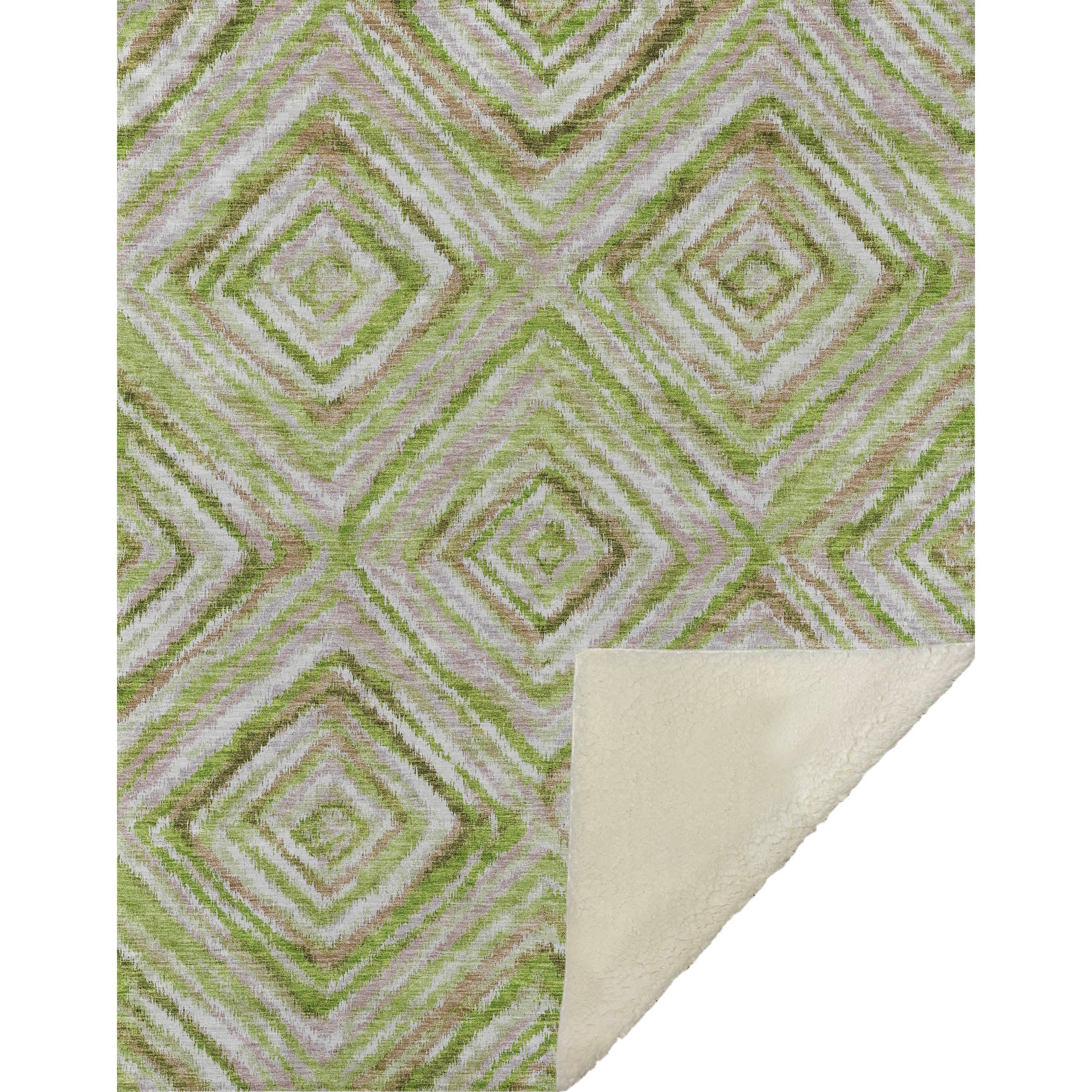 The intricate rhythm of small lines weaving into diamonds brings a subtle yet captivating charm that complements the transitional style effortlessly. Offering an oversized coziness at 50" x 70", it pampers you with a luxuriously soft-touch front and warm sherpa backing. Constructed from fade-resistant polyester microfiber, it's perfect for both indoor and covered outdoor areas, and its Premium Machine Washable nature guarantees easy care.