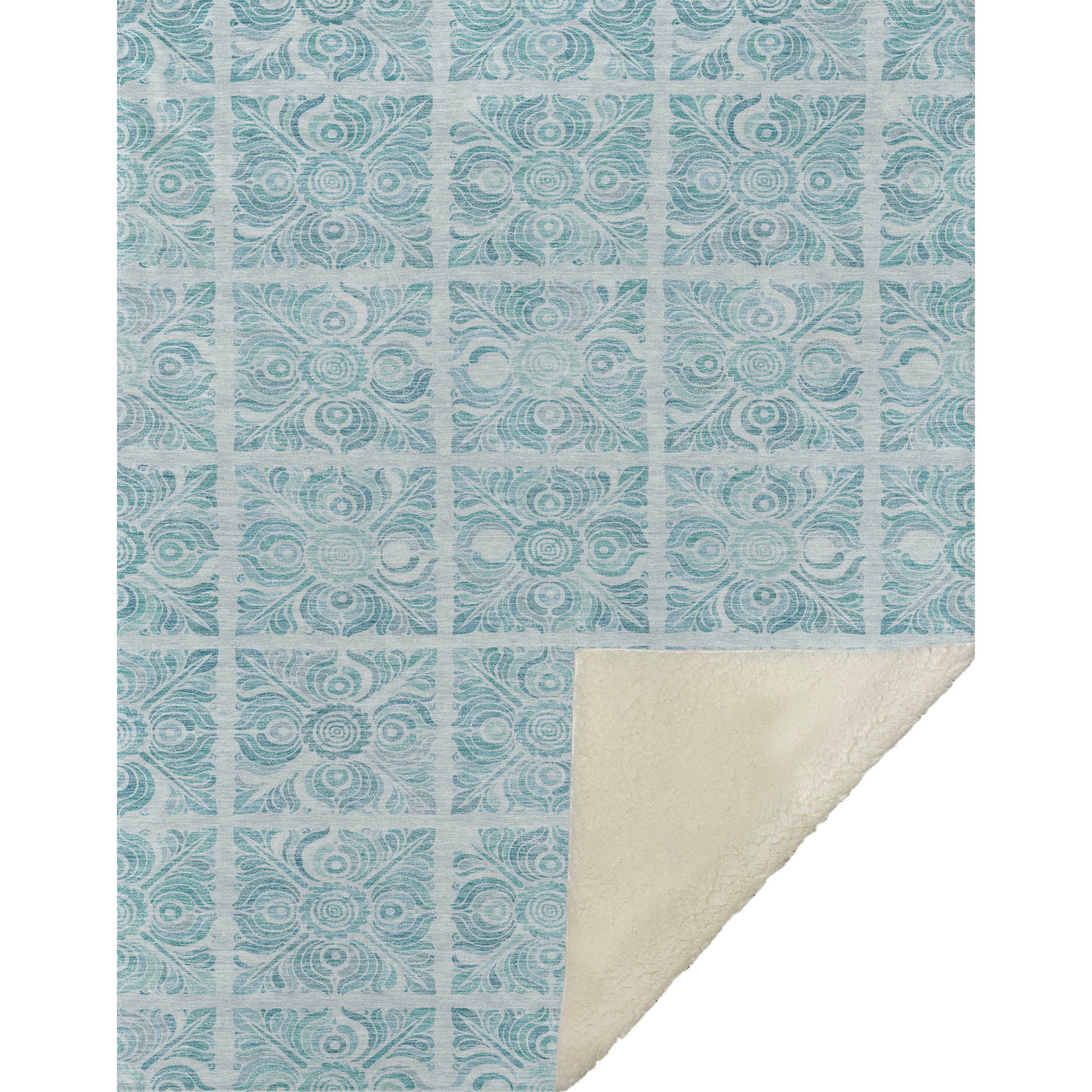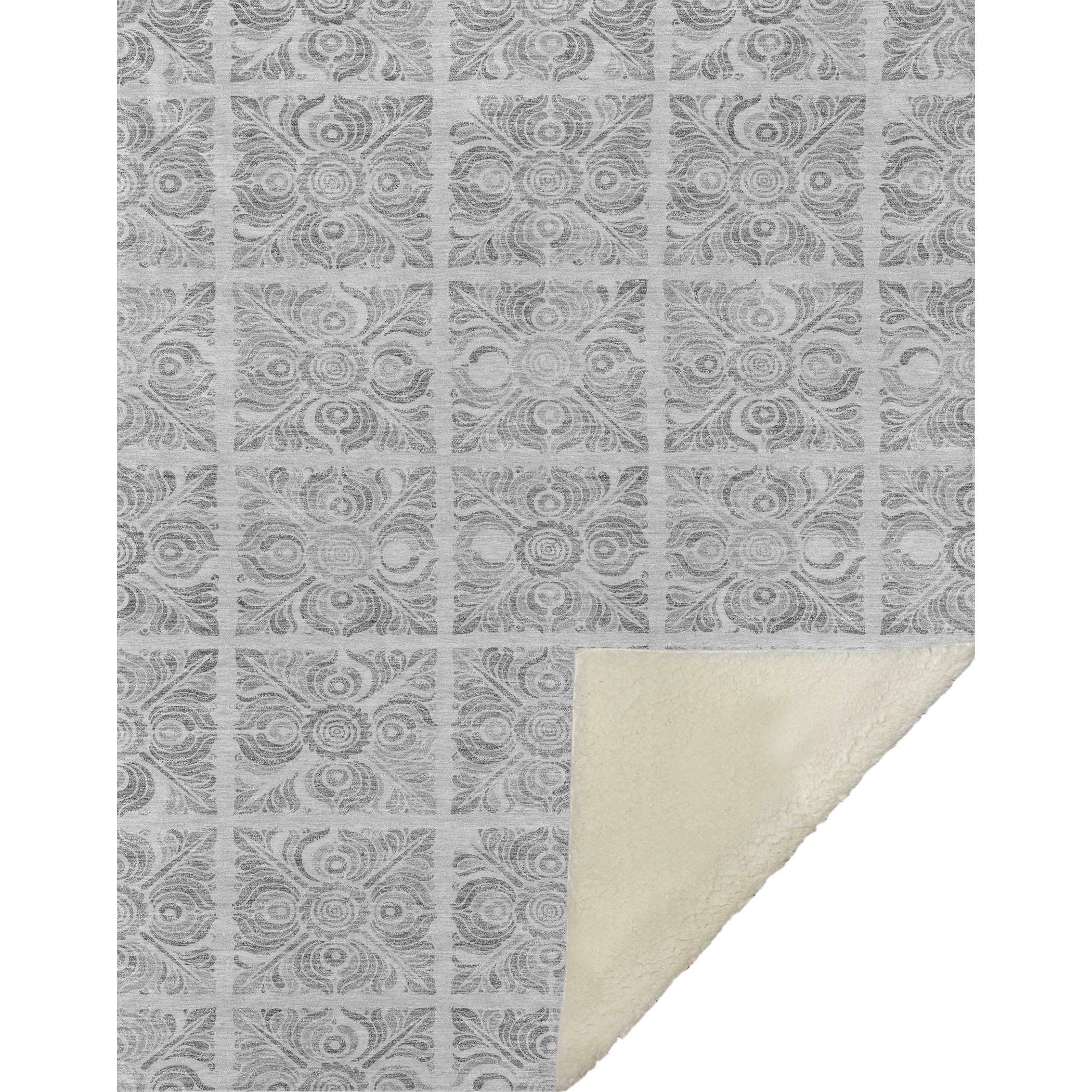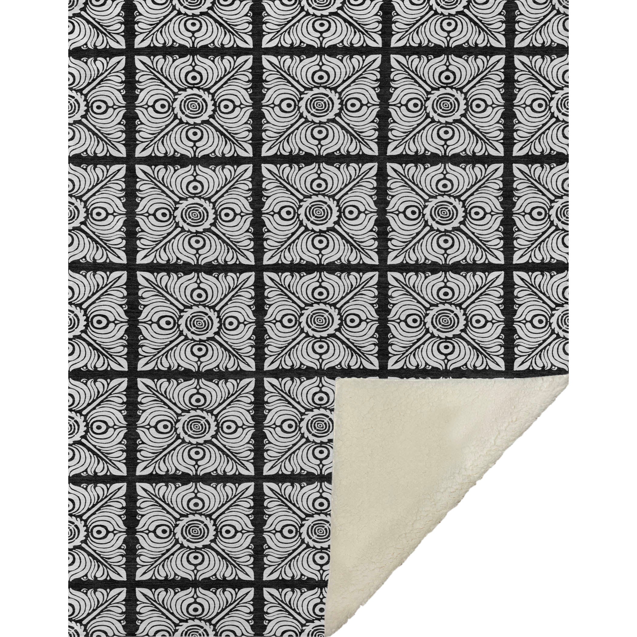 Immerse yourself in the enchanting pattern of stained glass squares and medallions, drawing you into a world of visual intrigue. The transitional style, combined with oversized 50" x 70" dimensions, cocoons you in a luxuriously soft-touch front and cozy sherpa backing. Made from fade-resistant polyester microfiber, it graces both indoor and covered outdoor settings, while its Premium Machine Washable feature guarantees hassle-free care.