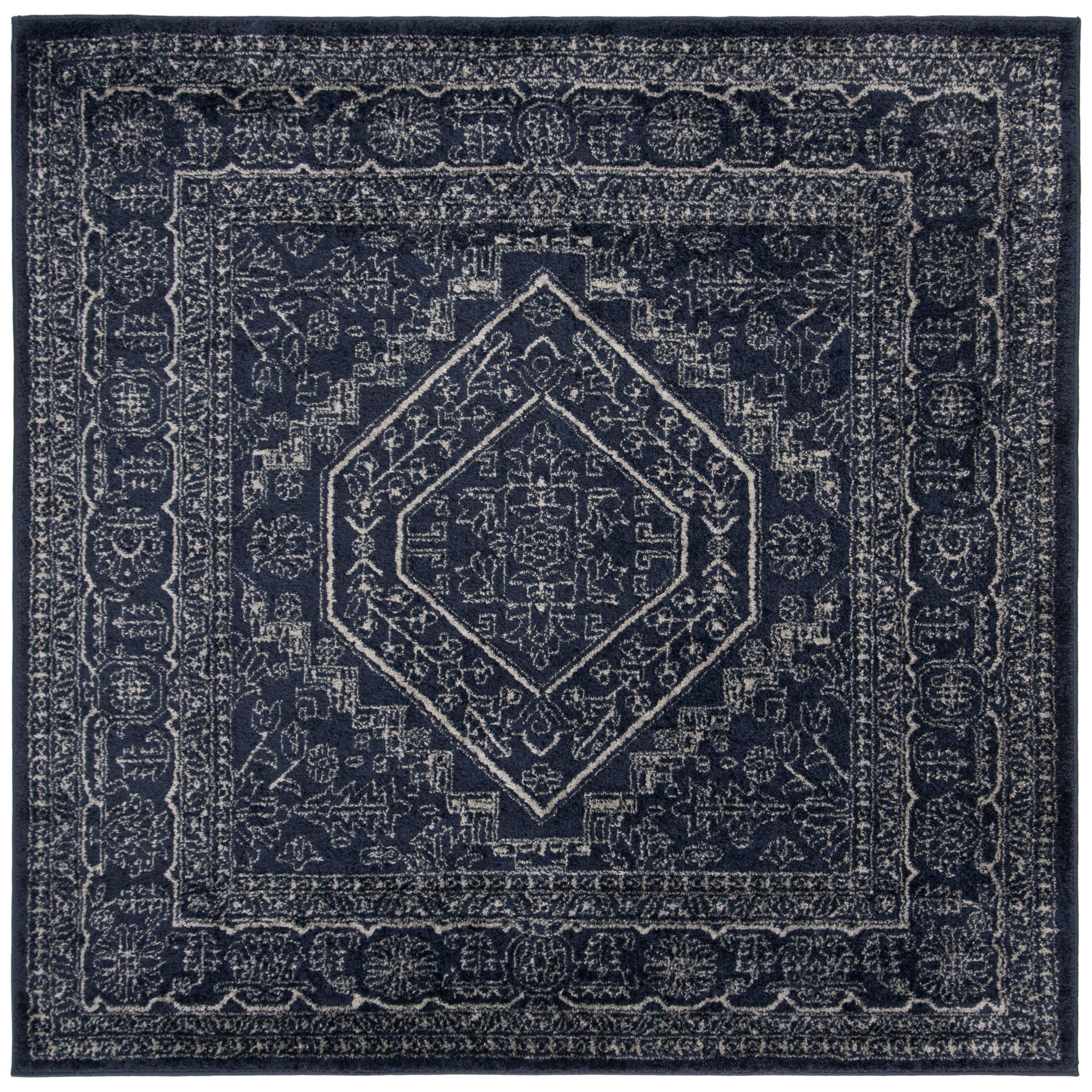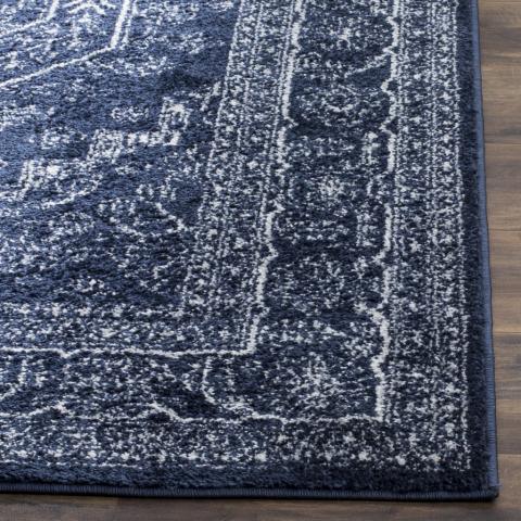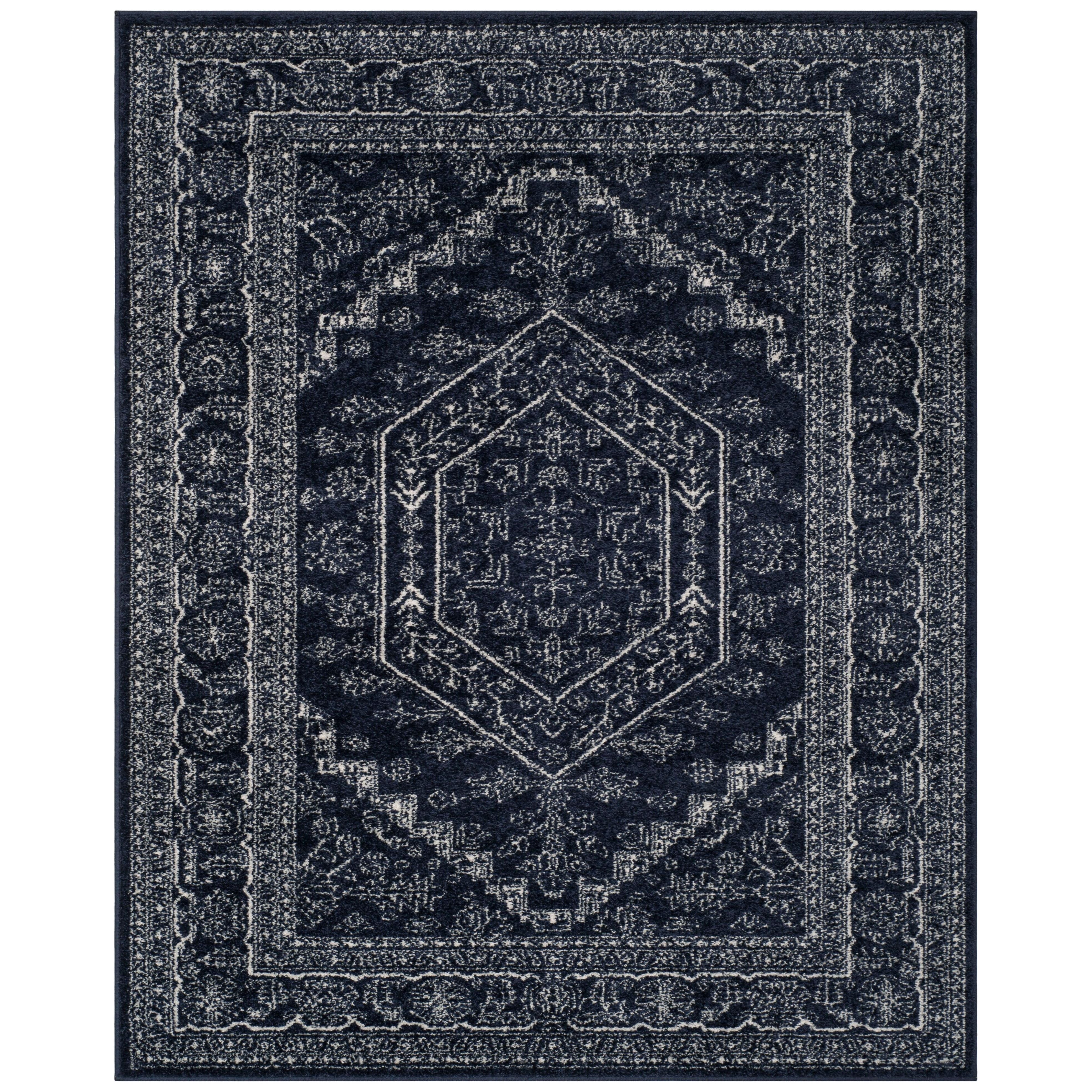 Elevate your home decor with the Adirondack ADR108N Navy Ivory rug from SAFAVIEH's renowned collection. This rug effortlessly blends rustic lodge charm with shabby chic vintage vibes, making it a standout piece in any room. The oriental-inspired pattern adds a touch of trendiness, while the non-shedding fibers and sleek pile height ensure easy maintenance and long-lasting beauty.