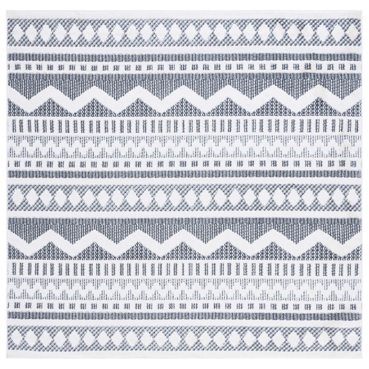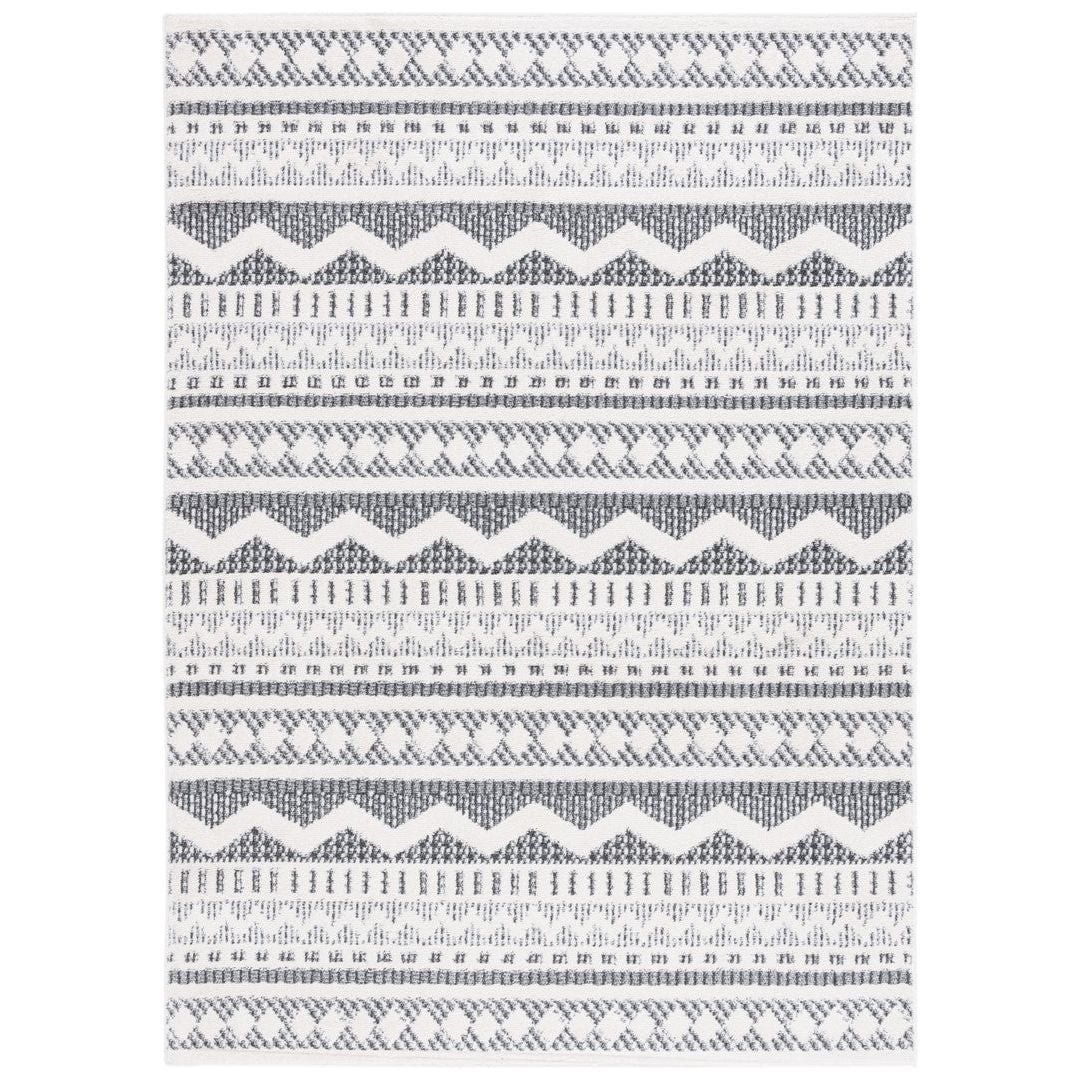 Alamo ALM716H Charcoal Ivory rug, a stunning piece that effortlessly blends boho-modern style with timeless elegance. The Alamo Rug Collection showcases expressive designs and captivating colors, perfect for adding a touch of personality to your space. Crafted from durable synthetic yarns, these flat weave rugs are not only charming but also built to last in any room of your home.