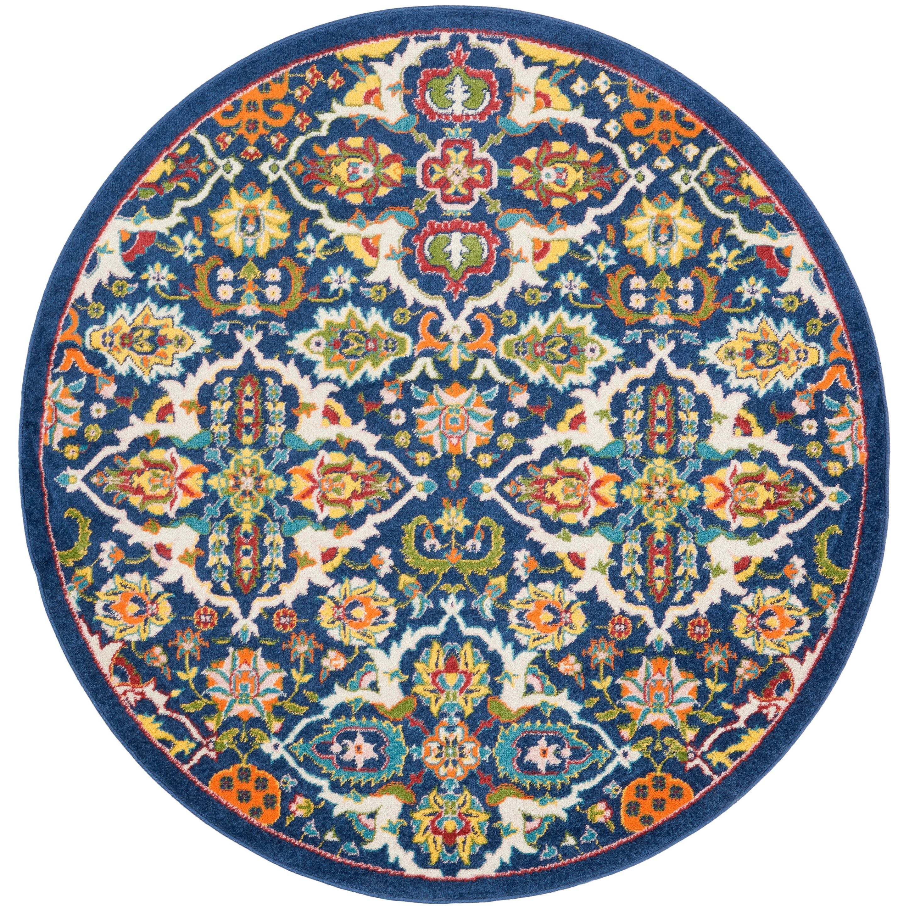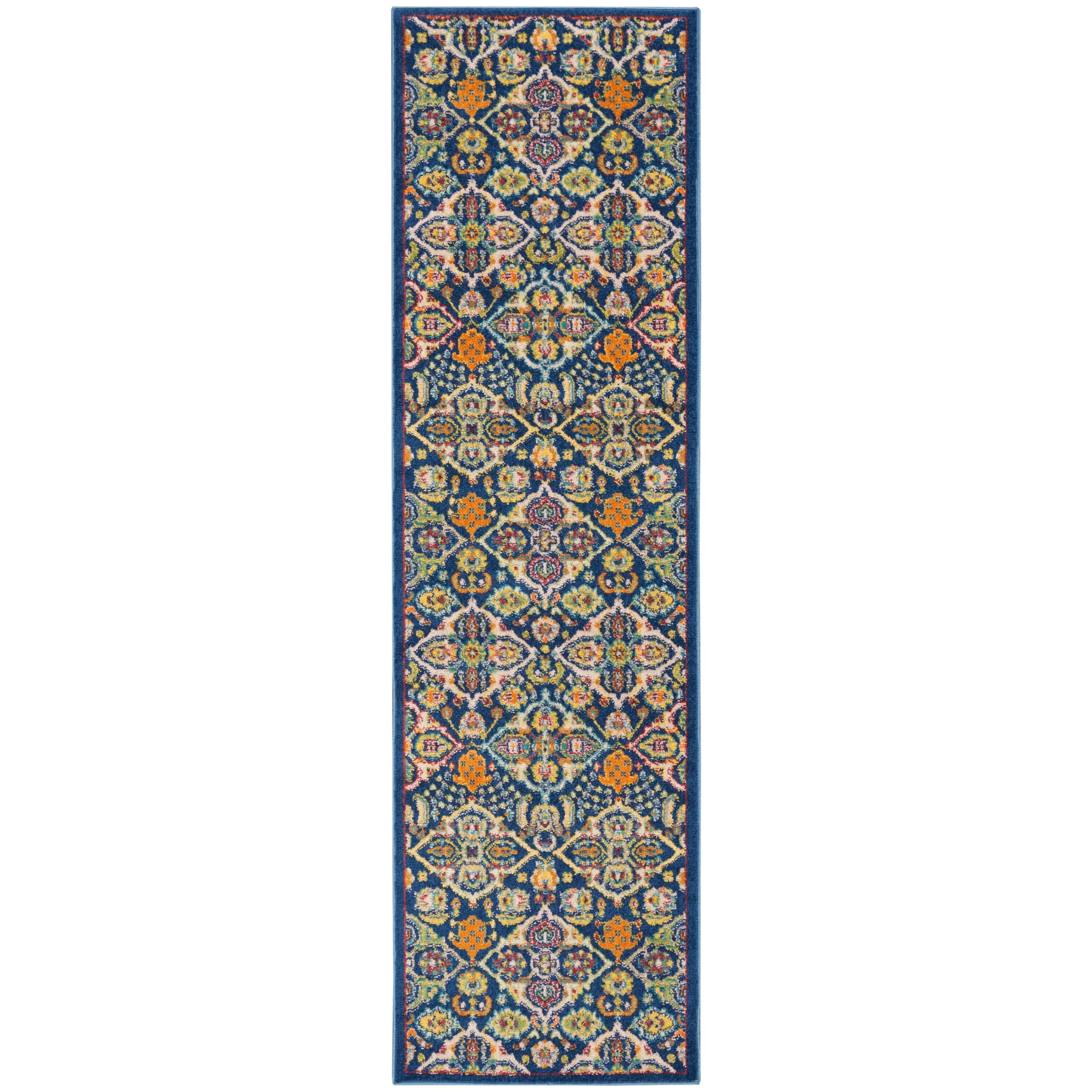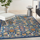 Elevate the ambiance of your room with the Allur ALR03 Navy Multicolor rug from our exclusive collection. Embrace the cozy vibes and eclectic charm that this rug brings to your space. Featuring a delightful fusion of contemporary florals, Persian-inspired medallions, and tribal patterns in rich jewel tones, each Allur rug exudes a bohemian appeal that effortlessly enhances any room's decor.