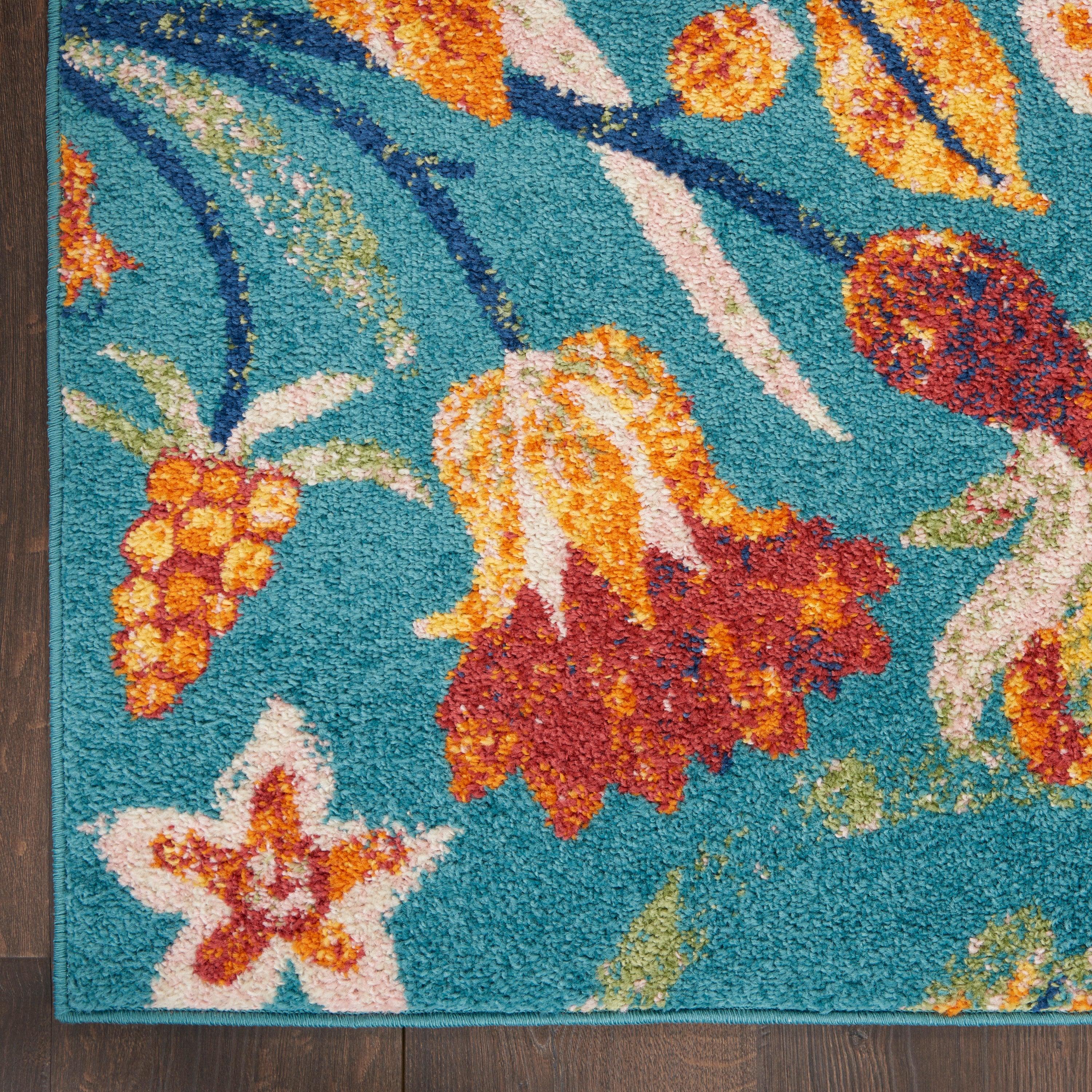 Allur ALR09 Turquoise Multicolor area rug from the Allur Collection. This rug adds warmth and comfort to any space with its eclectic mix of contemporary florals, Persian-inspired medallions, and tribal patterns in vibrant jewel tones. Perfect for adding a touch of boho charm to your living room, bedroom, or home office.