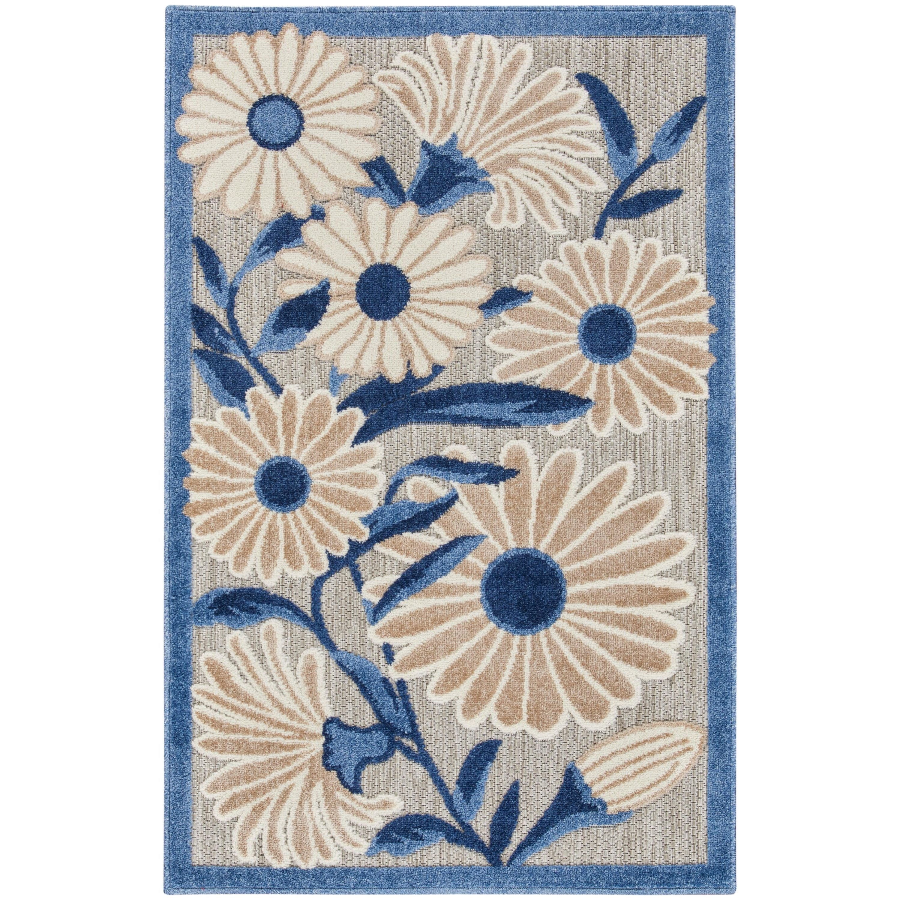 Elevate your space with the Aloha ALH33 Blue Grey outdoor rug from the vibrant Aloha Collection. Its stunning blue and grey floral design brings a breath of fresh air to any room or patio. The oversized daisy pattern stands out with a subtly raised finish, creating a cozy texture on the flatwoven surface. Crafted from tough polypropylene yarns, this rug is built to last and resist stains with ease. Effortlessly maintain its beauty by simply cleaning it whenever needed.