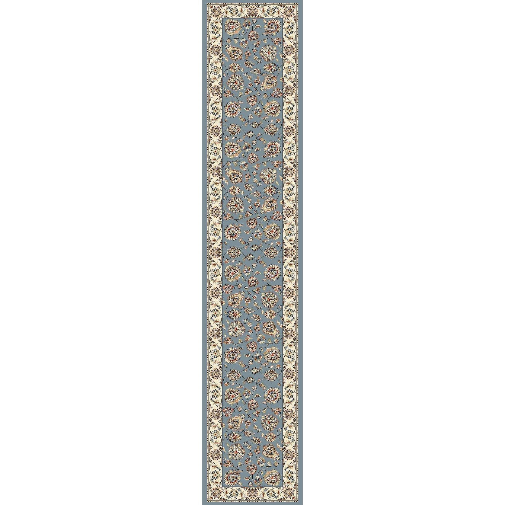 Ancient Garden 57365 Lt Blue Ivory rug, a fusion of timeless Persian patterns with a contemporary twist. This exquisite piece boasts a refreshing modern aesthetic while staying true to its traditional roots. The color palette is rich in antique hues, accentuating the intricate design elements that define Ancient Garden. Crafted with precision using Decolan, a premium heat-set polypropylene material that mimics the luxurious feel of wool, this rug exudes a hand-knotted elegance that sets it apart from other machine-made rugs.