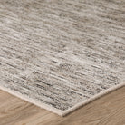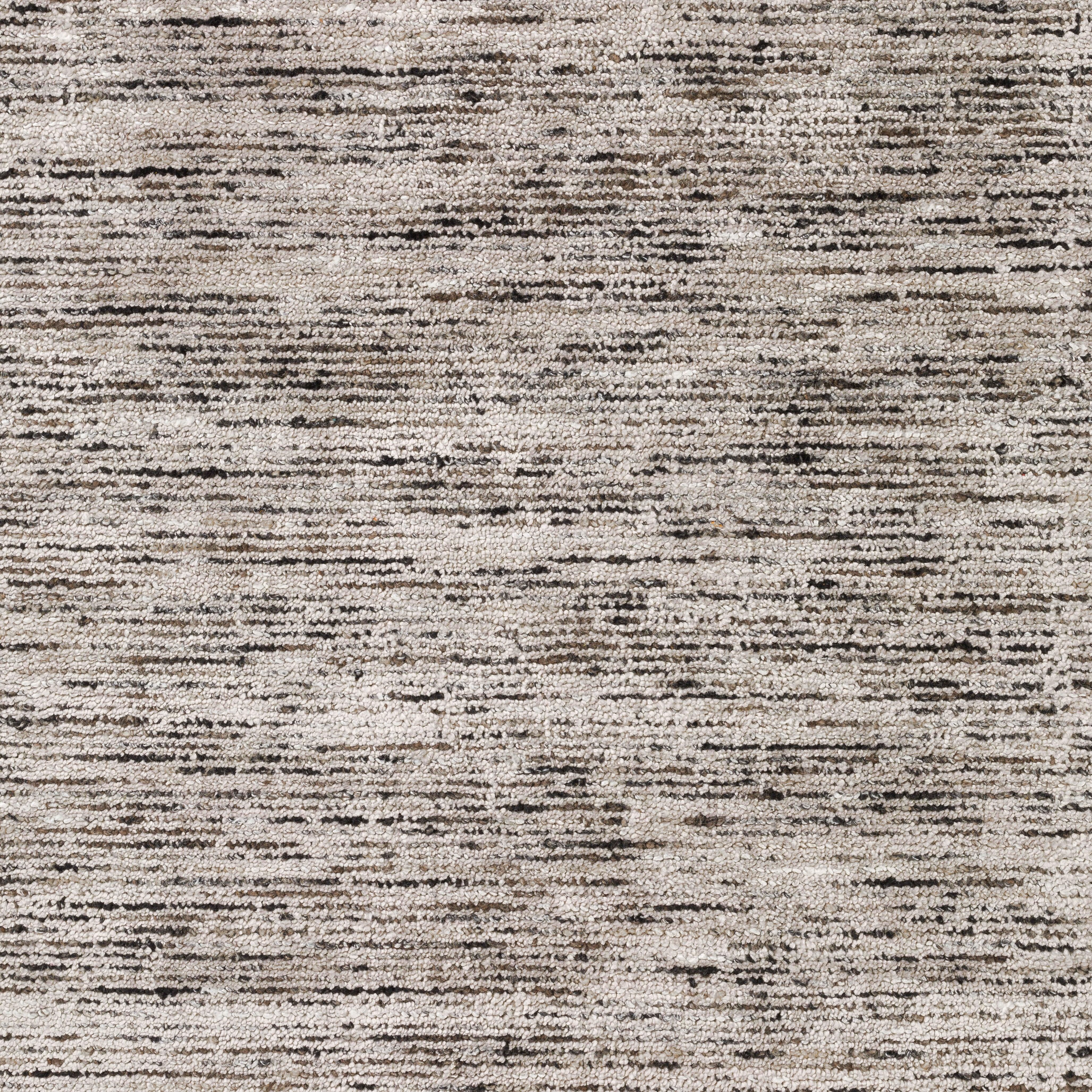 stylish and elegant Arcata AC1 Ebony rug from the Arcata Collection. This rug exudes subtle sophistication, featuring multi-tonal broken horizontal stripes on a neutral field. Crafted from a blend of hand-spun wool and viscose accents, it offers both durability and a luxuriously soft feel underfoot.