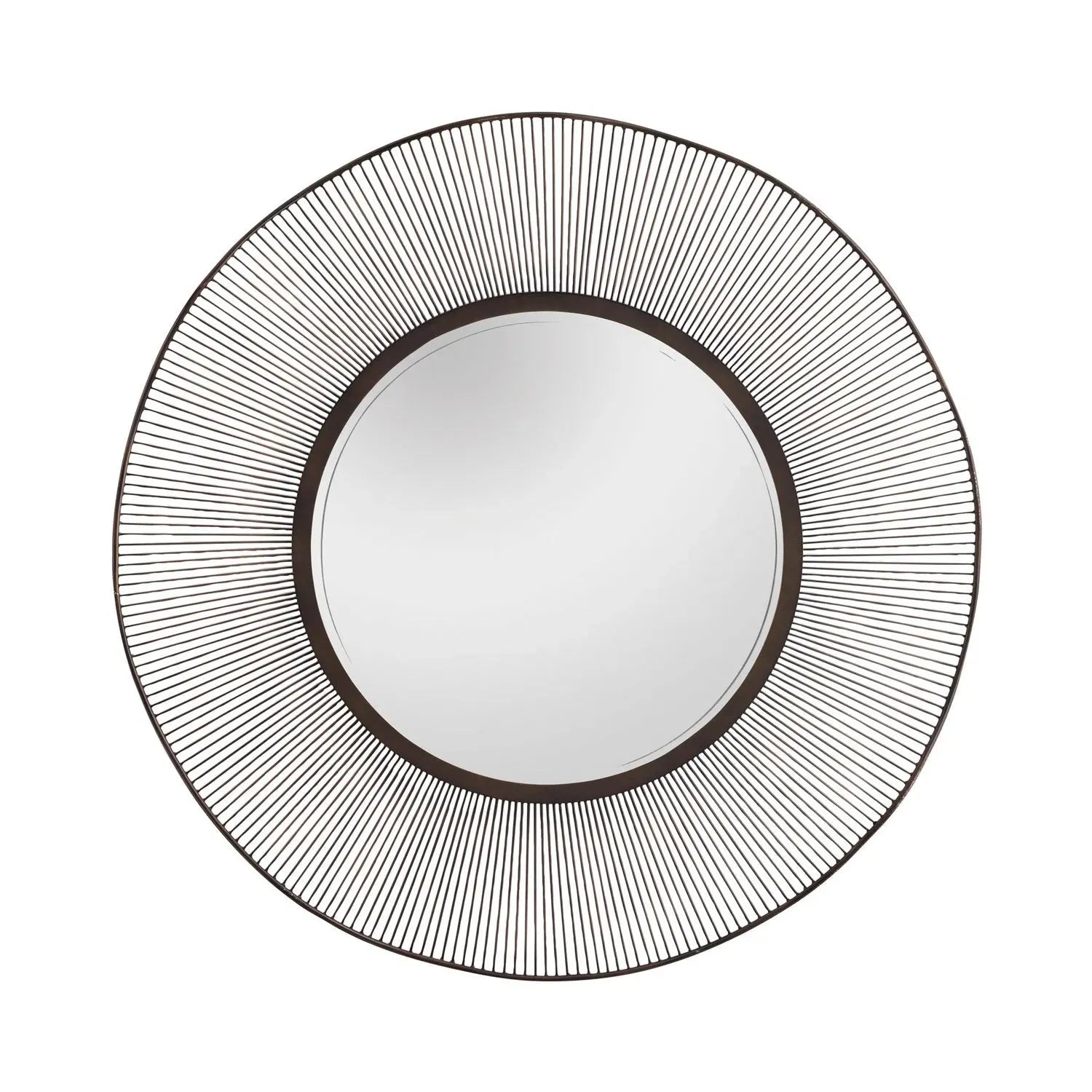 This softly shaped antique brass wire mirror has an elegant yet organic feel making it the perfect wall piece to hang over our Gunther Credenza (5359). The delicate undulating frame surrounds a beveled mirror. Features a security cleat attachment.