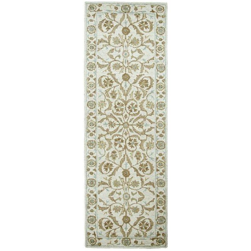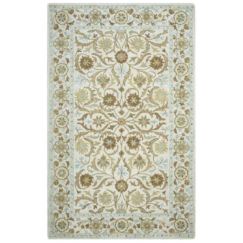 "First off, I love this rug .. the colours and the texture of the rug turned out to be exactly what I was hoping for - a very neutral-looking moss green and ivory background with a few tiny pale blue accents. Love the look!"