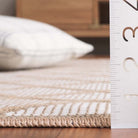 Aspect APE460A Ivory Natural area rug, a perfect blend of country-cottage charm and modern style. Elevate your home décor with its engaging designs and warm tonal hues that create a cozy atmosphere in any room. Crafted using a mix of soft cotton and natural jute, these versatile rugs are power loomed to perfection, offering a soothing feel underfoot. The flat weave finish adds a touch of homespun elegance, making it a seamless addition to your living space.