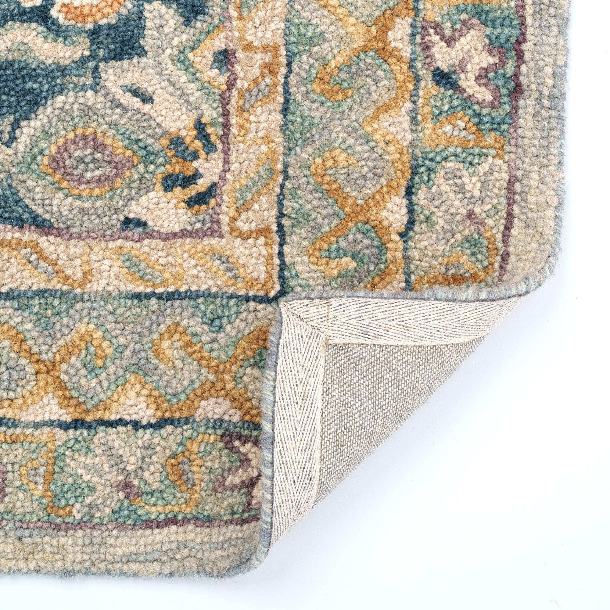 A robust blend of tones emboldens our Skakta with colorful character. Stylized mosaic patterning and traditional motifs heralds it eclectic roots, crafted in 100% wool with hand-worked accents.
