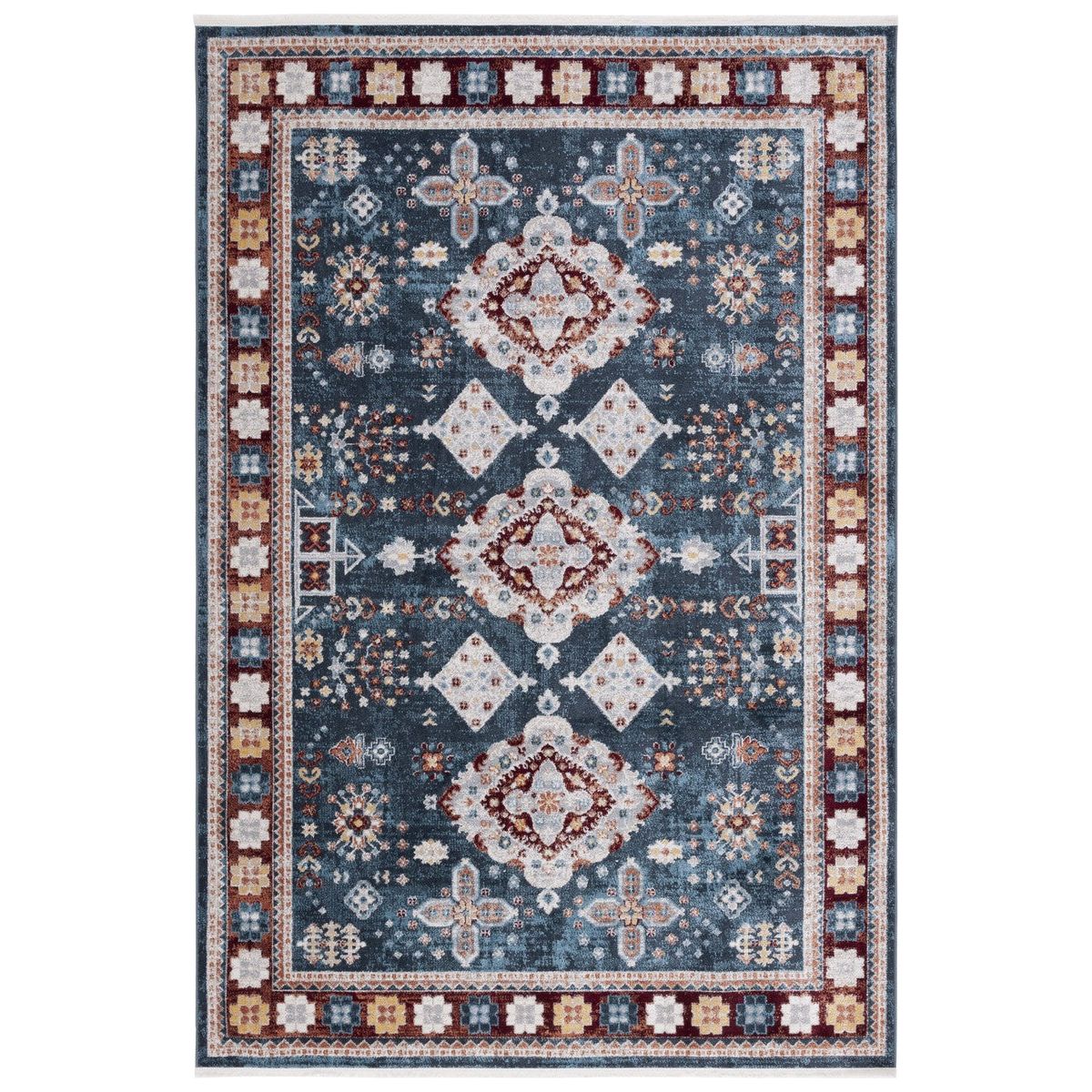 Bayside BAY106M Blue Red rug, a perfect blend of chic style and durability. The Bayside Rug Collection offers a diverse range of colors and patterns to enhance any room's aesthetic. Crafted with soft synthetic yarns, these machine-made rugs are not only stylish but also built to withstand everyday wear and tear.
