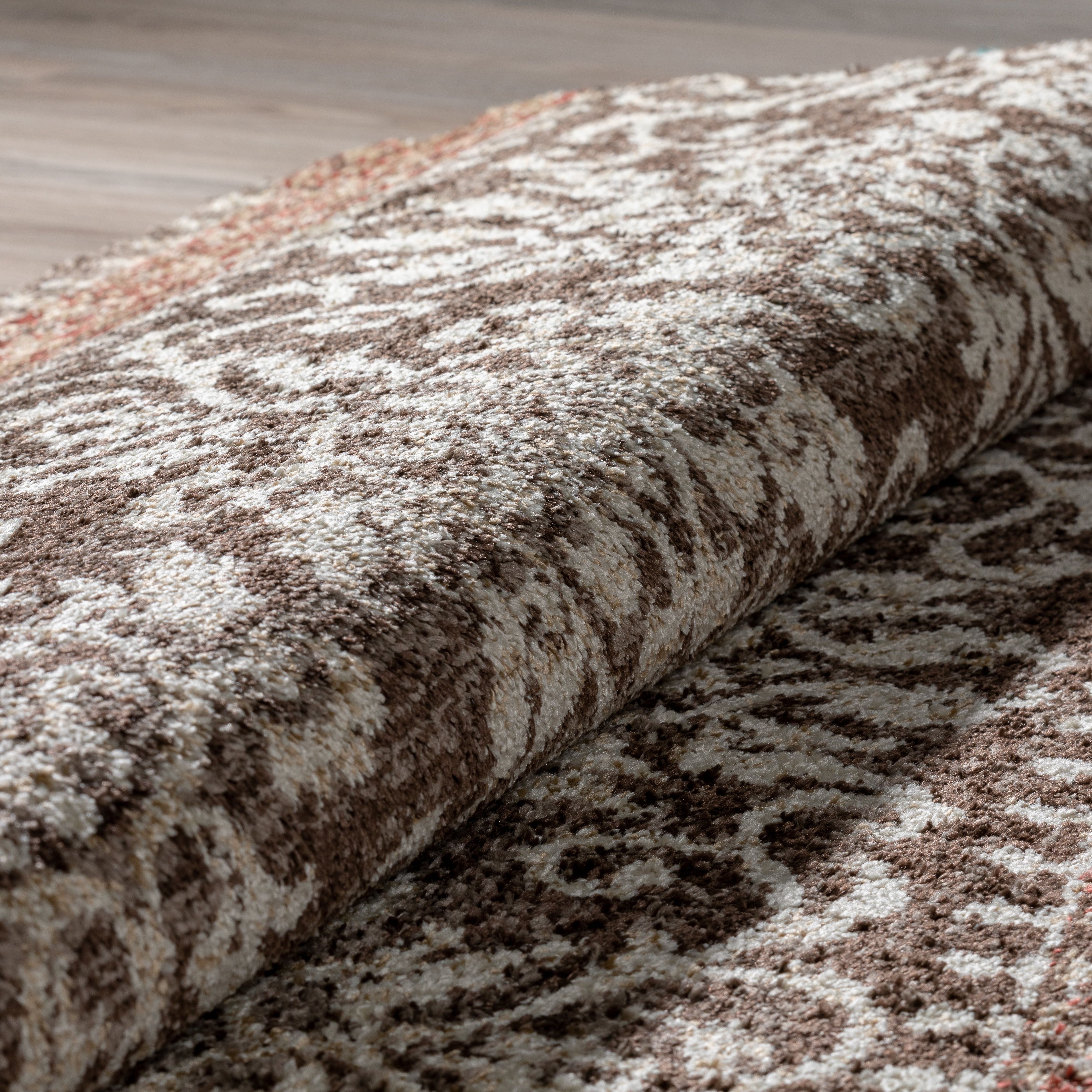 Blair Bohemian Striped Brown Spice area rug from our Blair collection. This rug features 10 traditional designs with a modern twist, offered in various tone-on-tone color palettes. Add a touch of sophistication to your living space with this eye-catching patterned rug that is designed for the modern home. Crafted from durable polypropylene, this rug is non-shedding and perfect for households with pets and children.