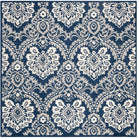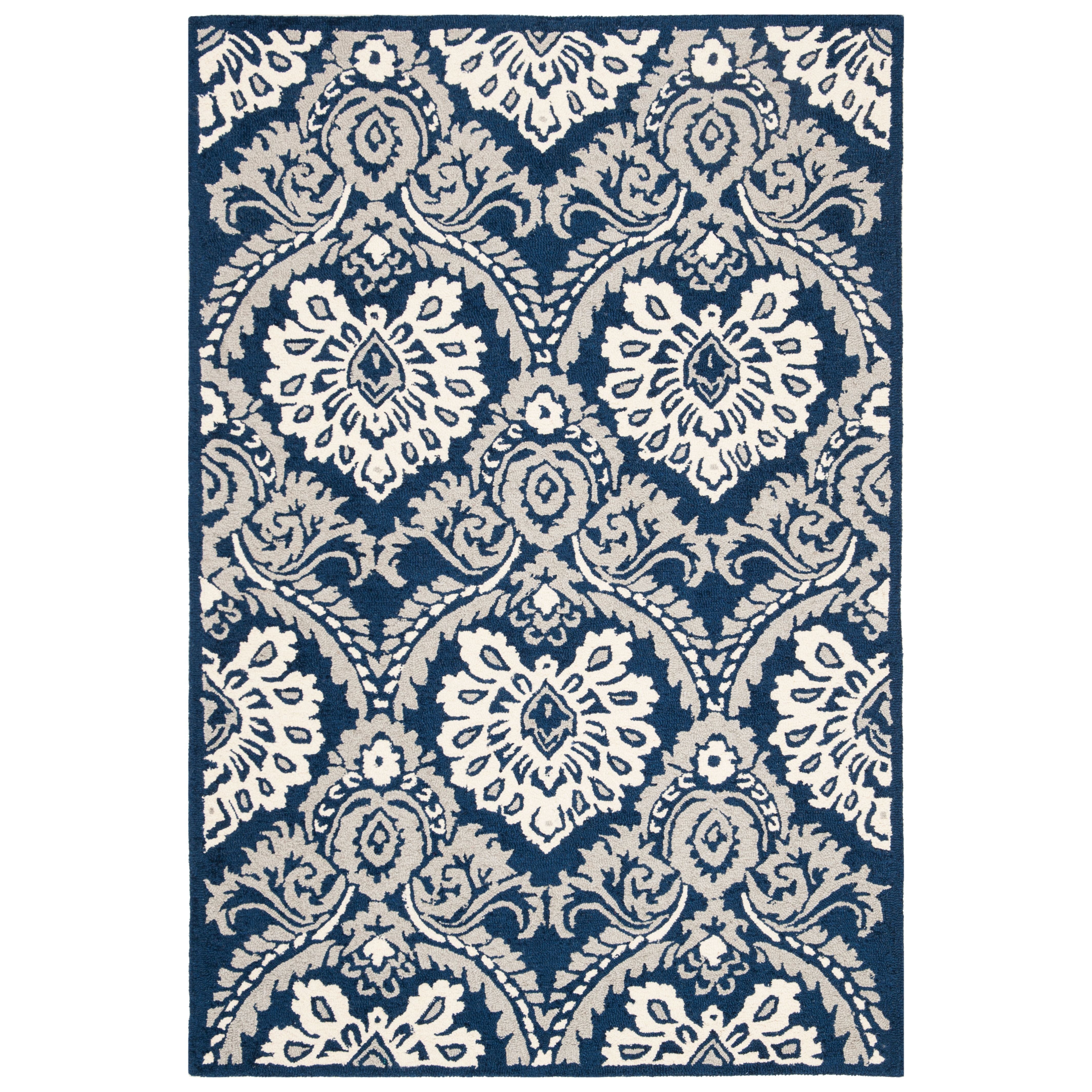 Blossom BLM106B Navy Ivory rug, a vibrant and modern twist on classic hooked rugs. Hand-woven with large loops, these rugs bring a fresh and colorful vibe to any country casual space. Crafted from 100% premium wool, Blossom rugs feature traditional English chintz and block print patterns for a touch of timeless elegance. With an approximate thickness of 0.5 inches, this rug adds both style and comfort to your home.