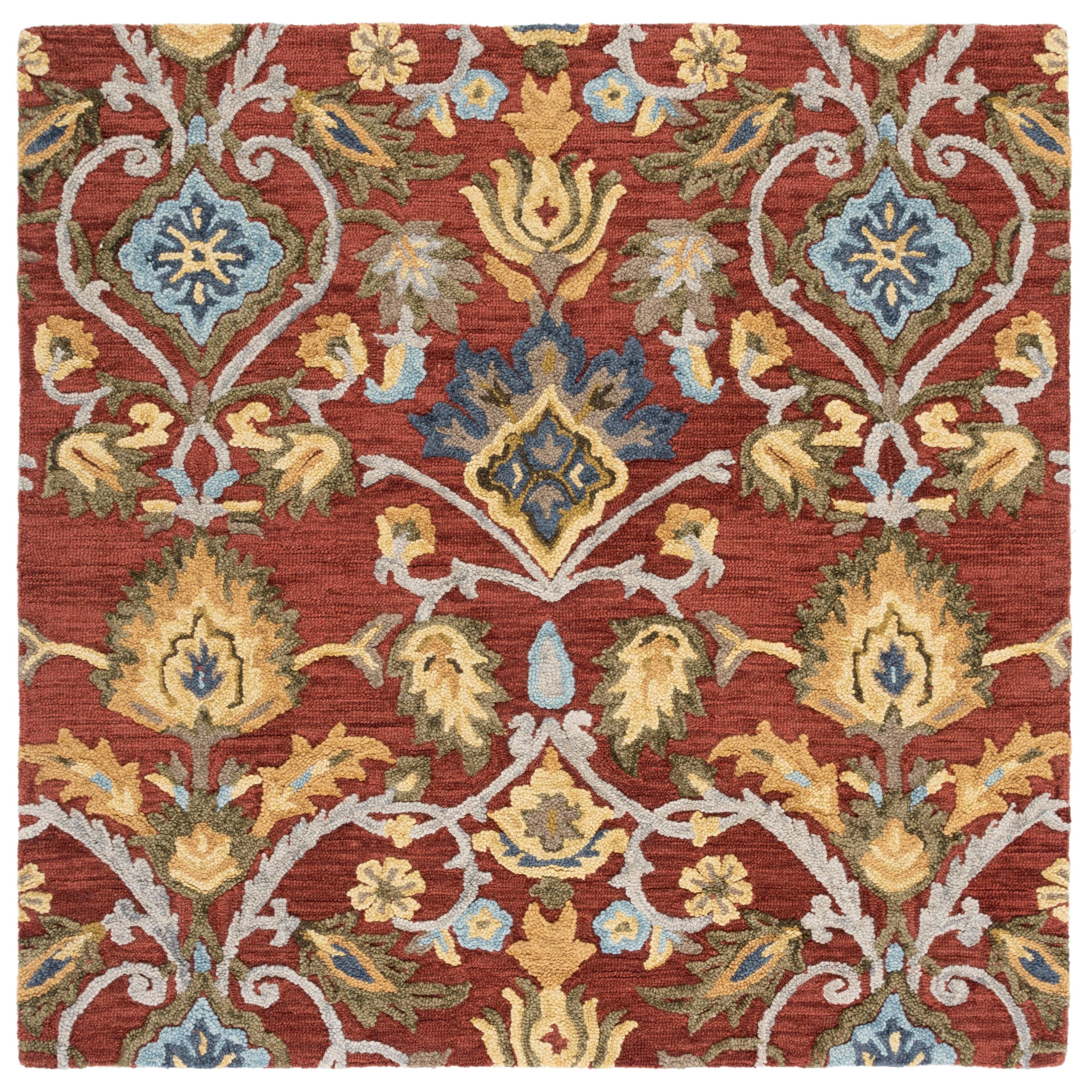 Blossom BLM402Q rug from the Blossom Collection, a vibrant and modern take on traditional hooked rugs. Crafted with large hand woven loops, these rugs offer a unique texture that revitalizes country casual interiors. Made of 100% premium wool, Blossom area rugs showcase classic English chintz and block print motifs for a touch of timeless elegance in contemporary home decor. With an approximate thickness of 0.5 inches, this rug is both luxurious and durable.